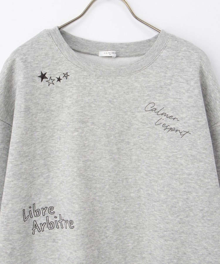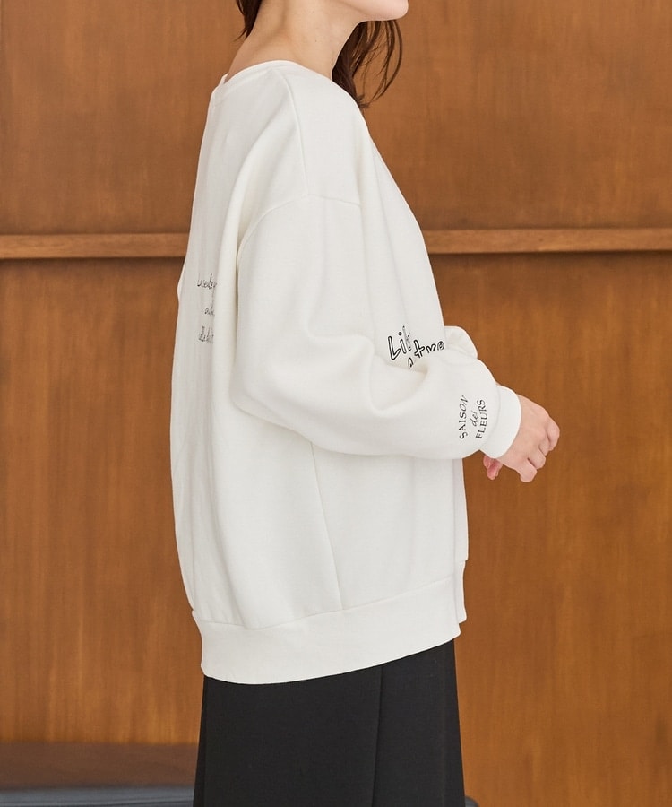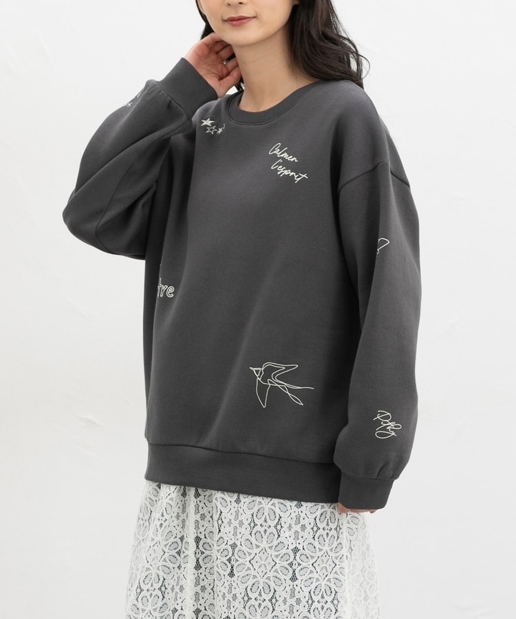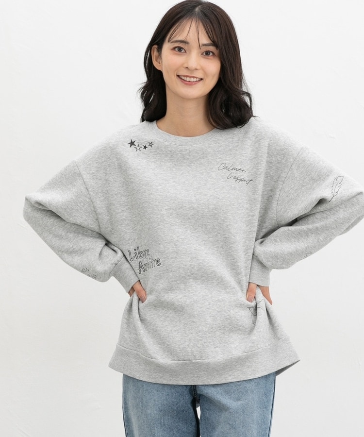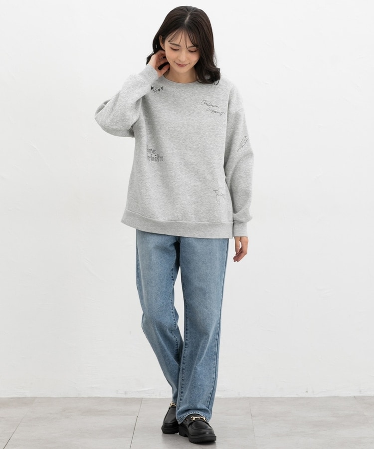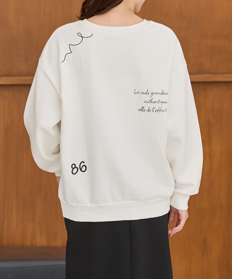 遊び心あふれる落書き風のロゴ刺繍やプリントを全体にちりばめた、今年らしいお洒落なデザイン。