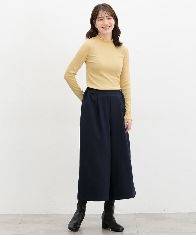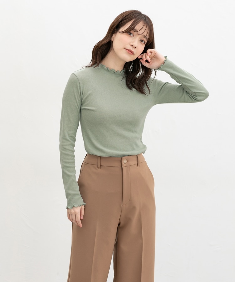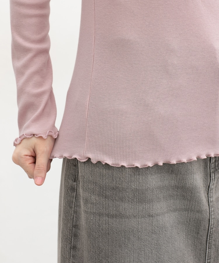 ストレッチの利いた、柔らかな綿混リブ素材。
