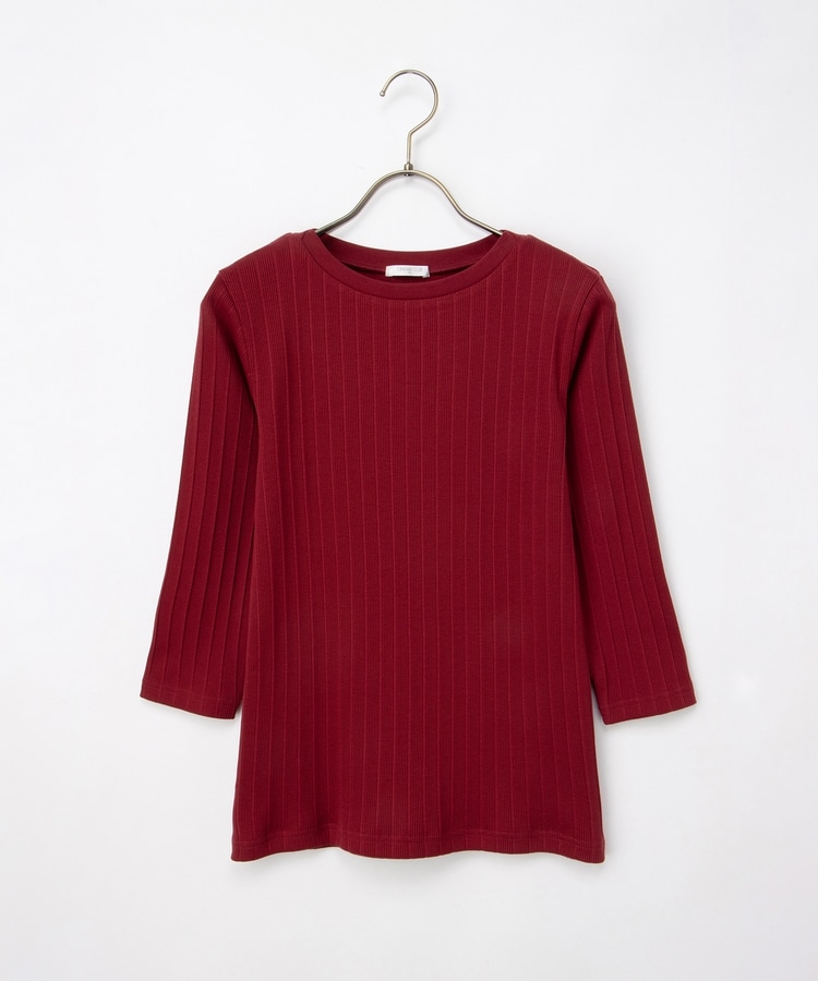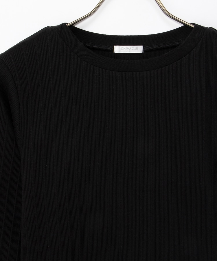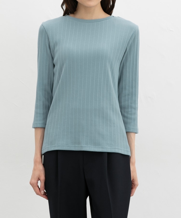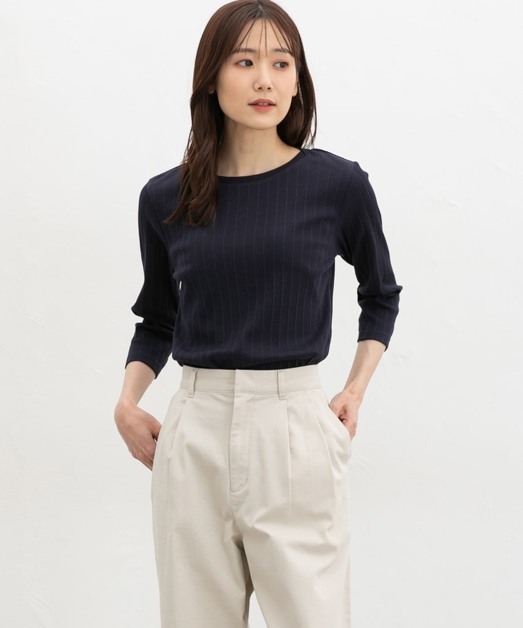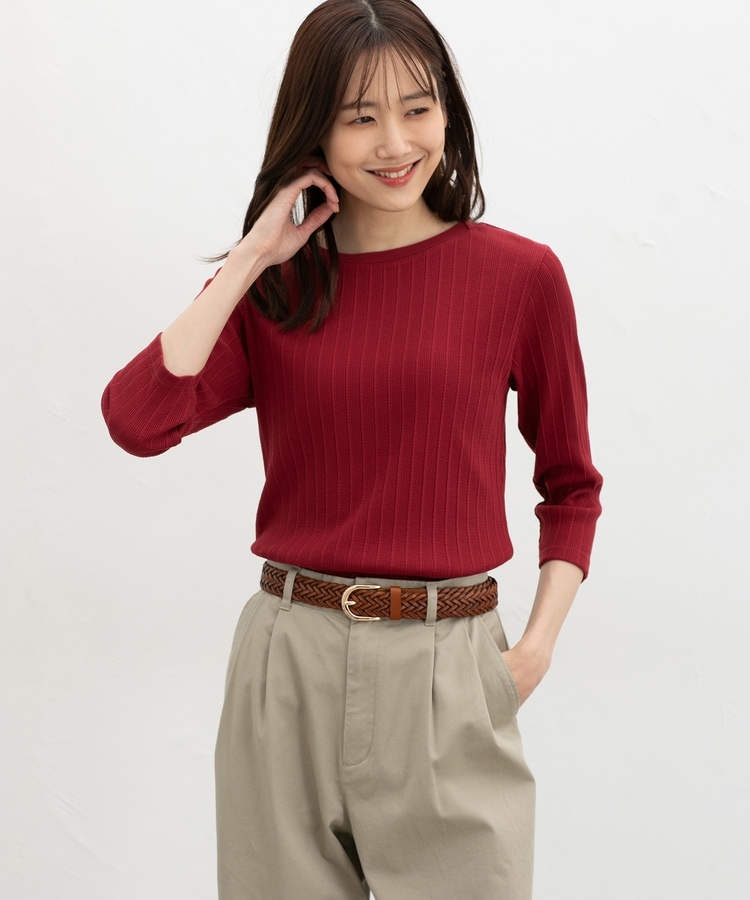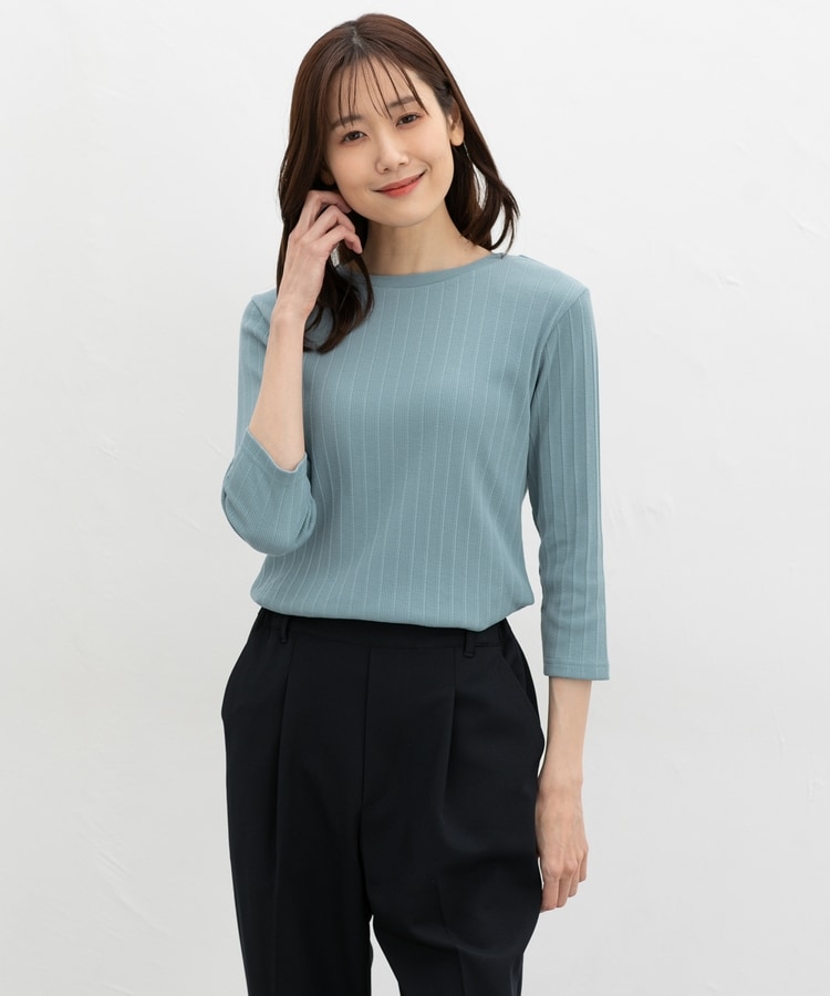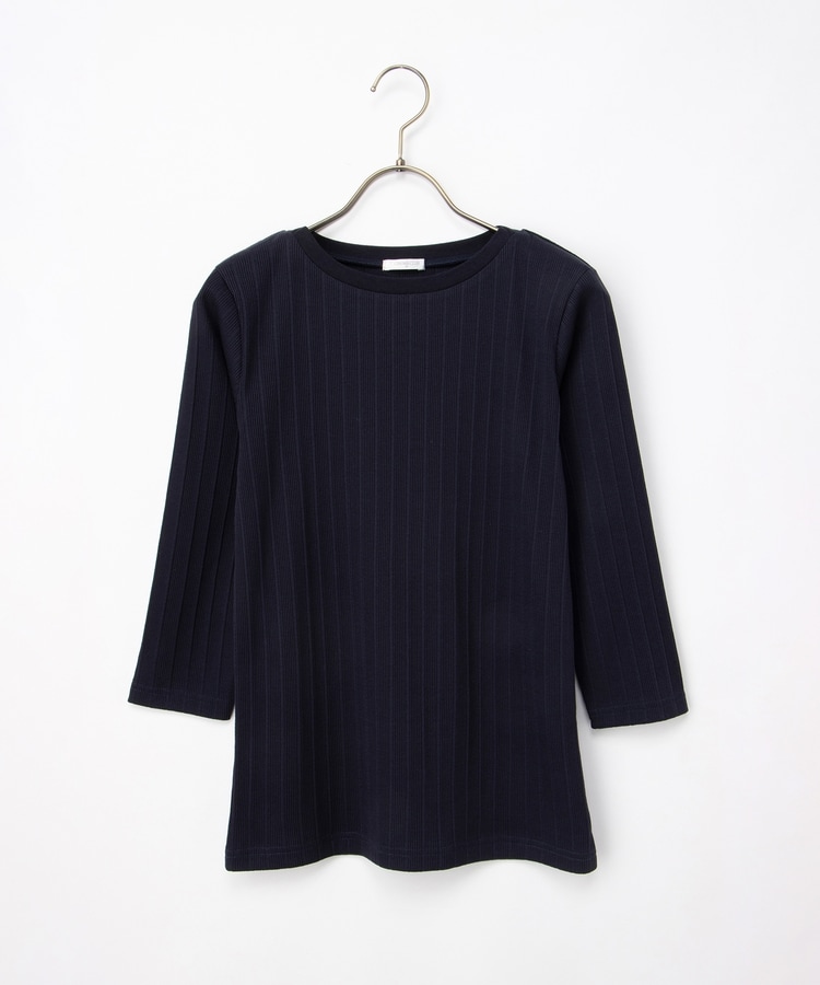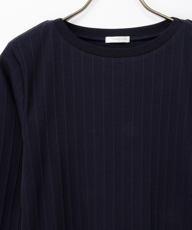 デコルテをきれいに見せるボートネックのシンプルデザイン。