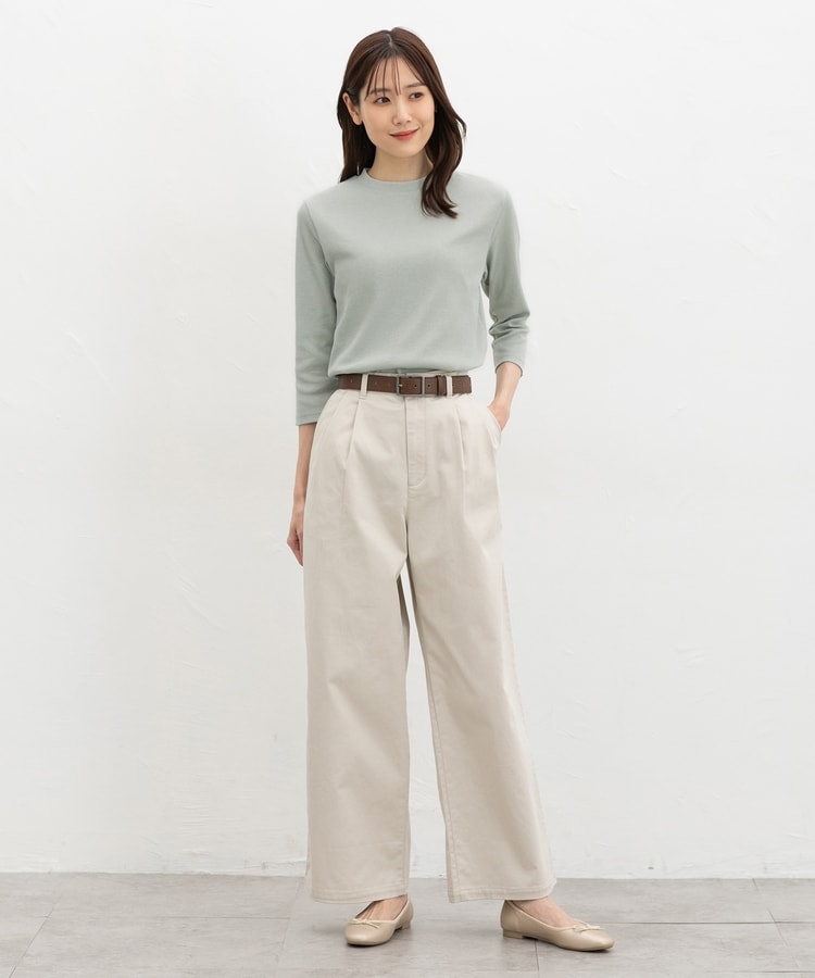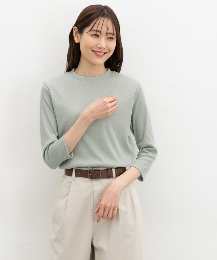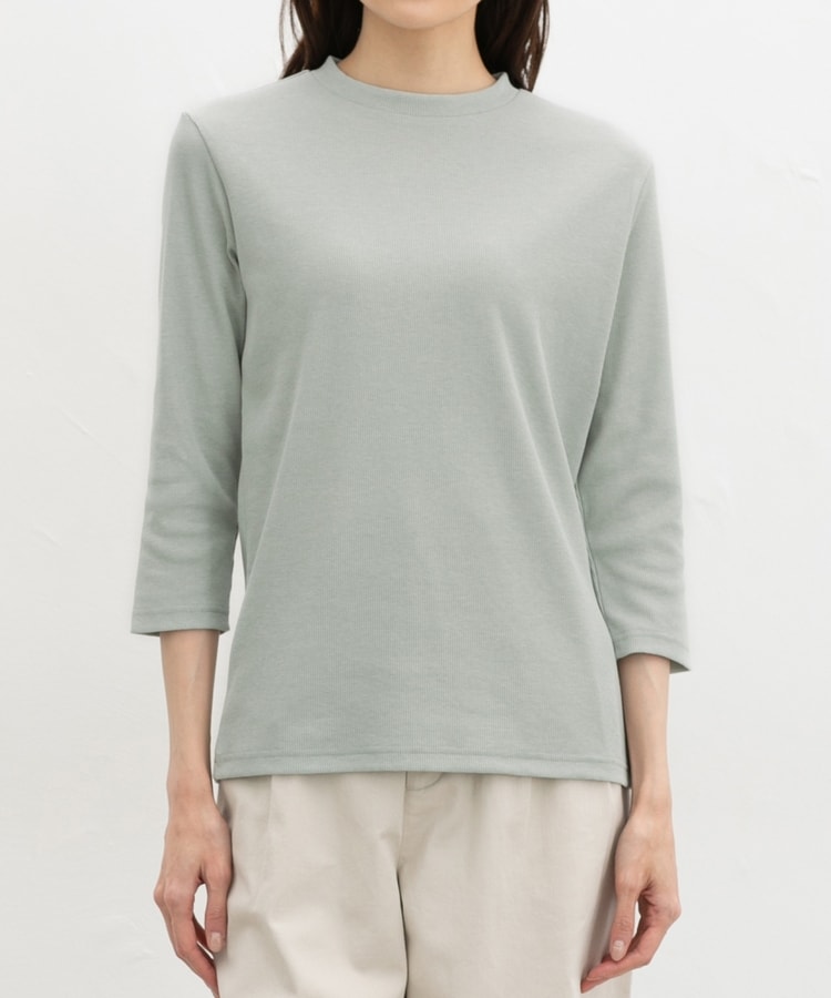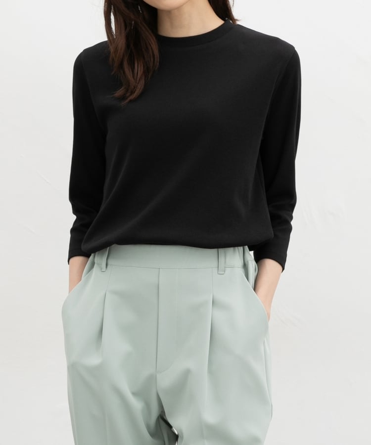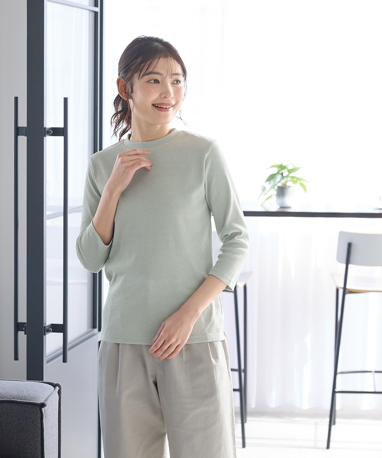 ストレッチが利いて着心地のよい綿混テレコ素材。