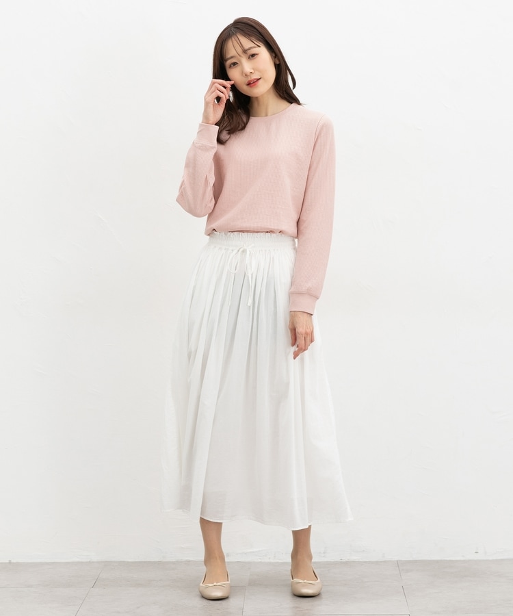 パンツ合わせのカジュアルスタイルはもちろん、ロングスカートと合わせたフェミニンスタイルにも好相性。