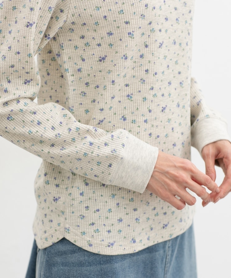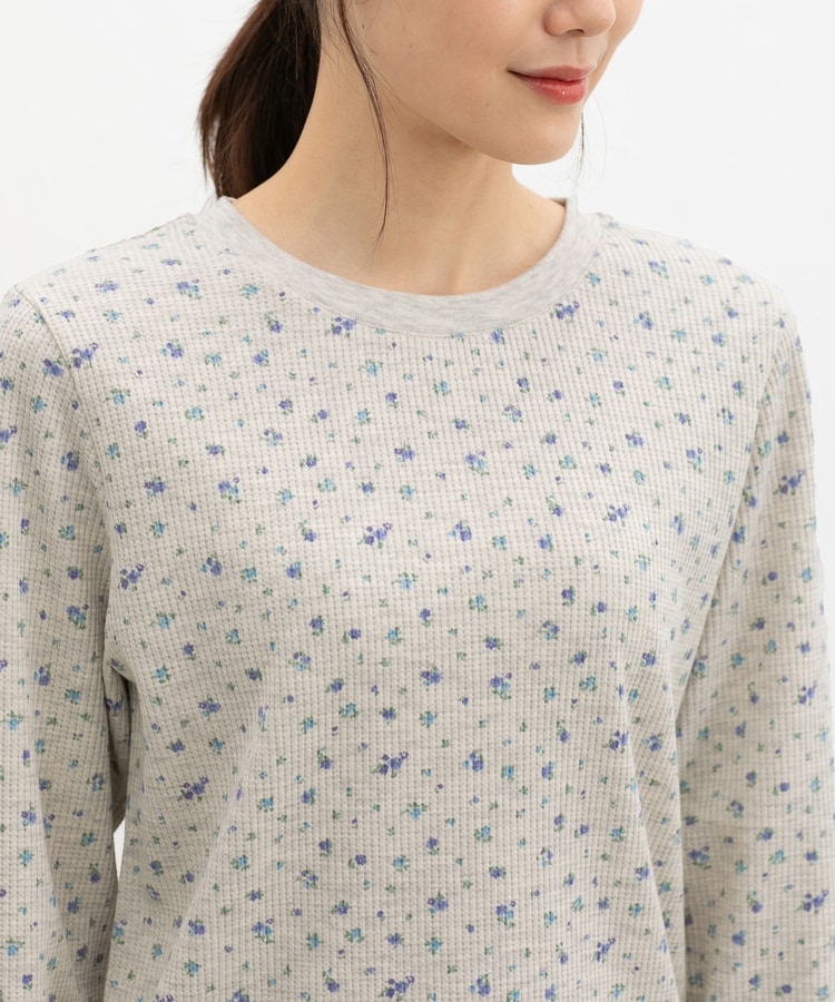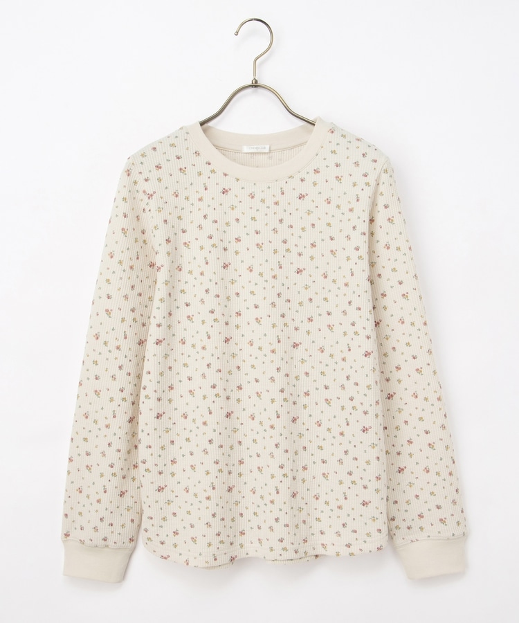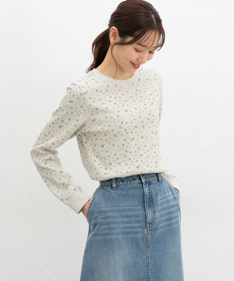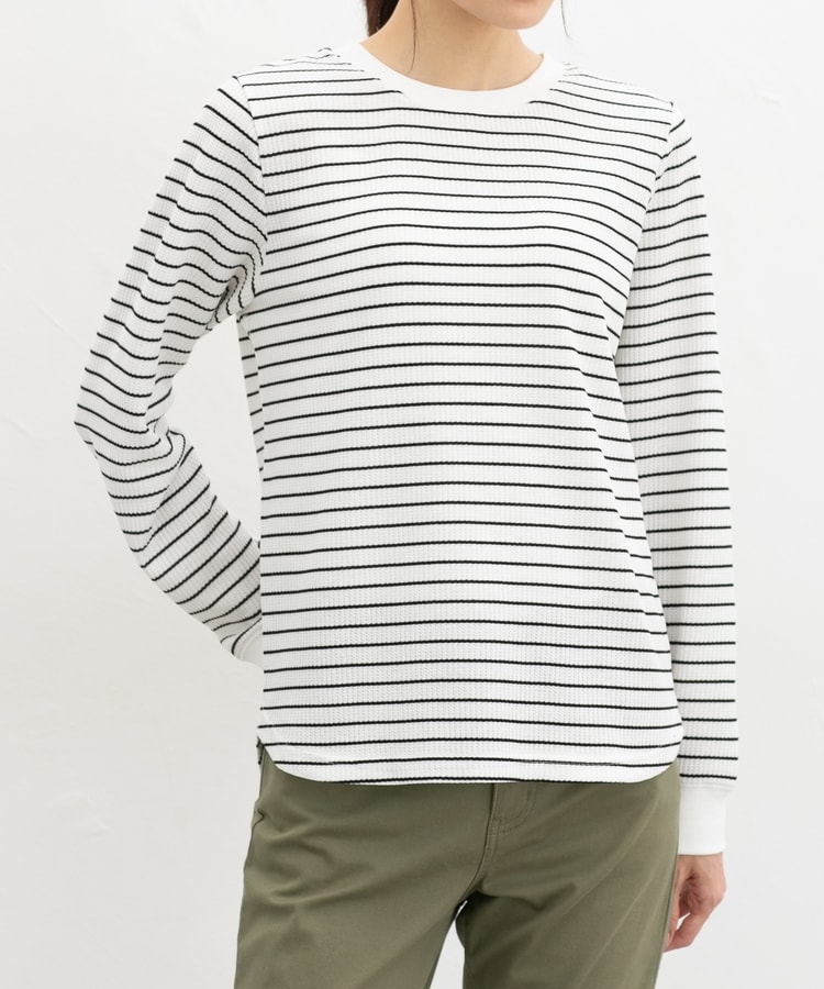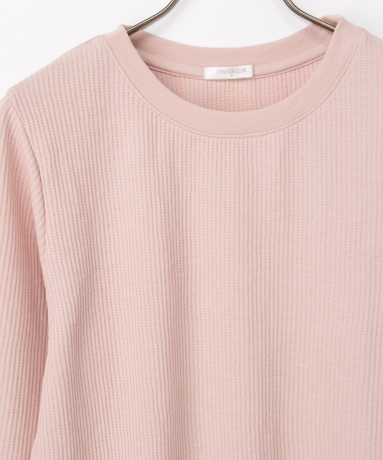 優しげなクルーネックと控えめなラウンド裾がフェミニンなデザイン。