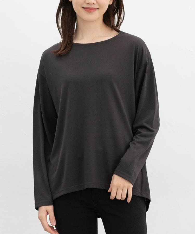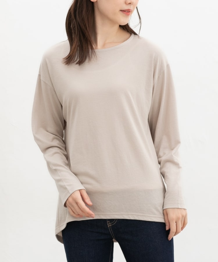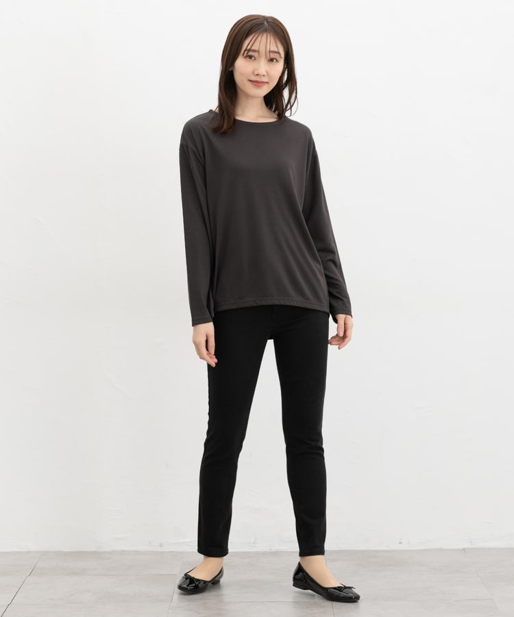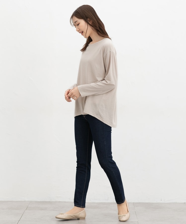ゆったりめの幅とヒップまですっぽり隠れる丈感で気になる体型もカバー。