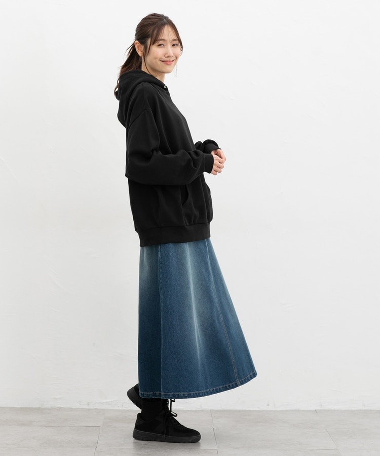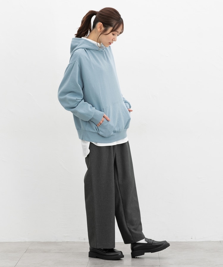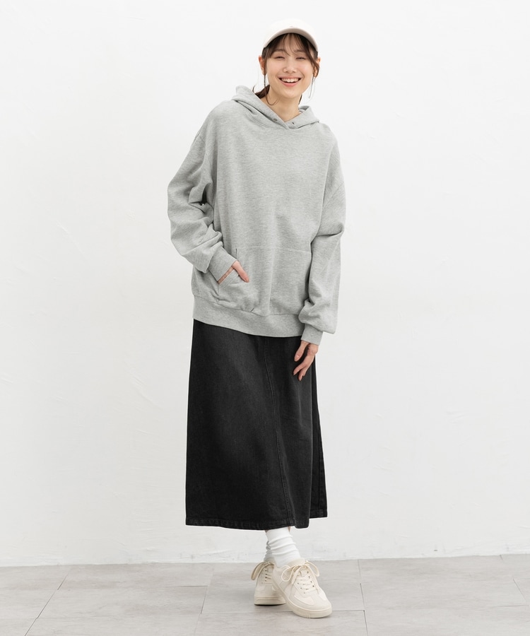 腰回りが隠れる丈感のゆったりシルエットでこなれた印象に。