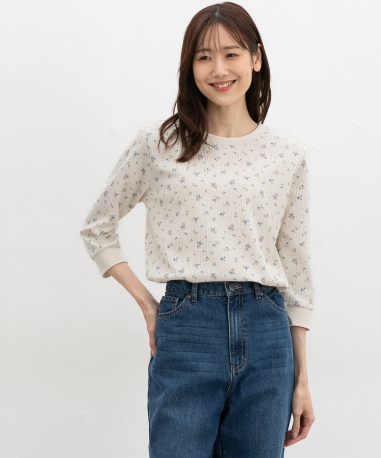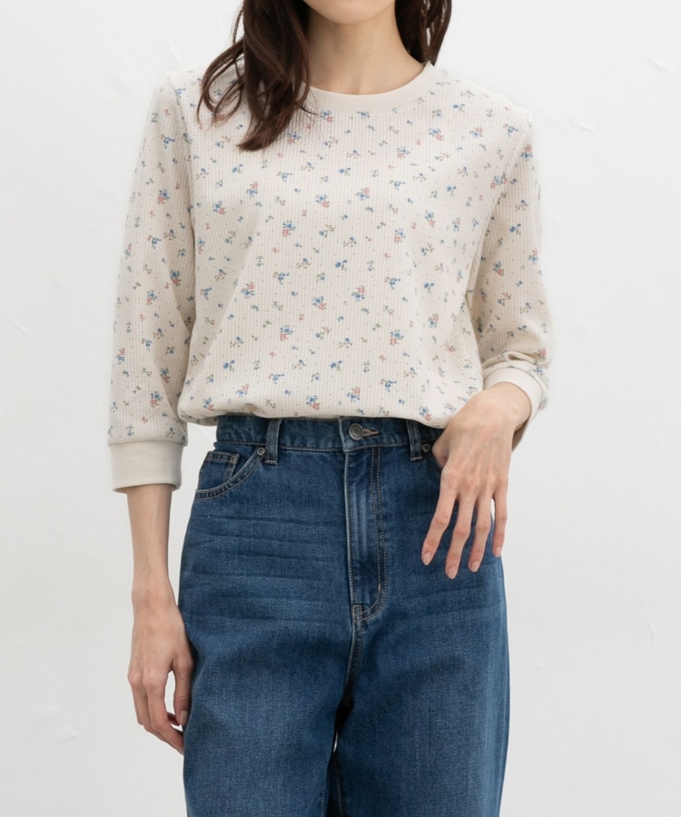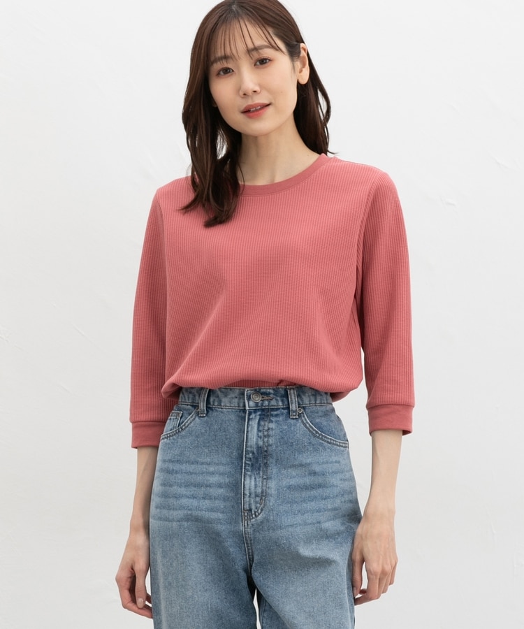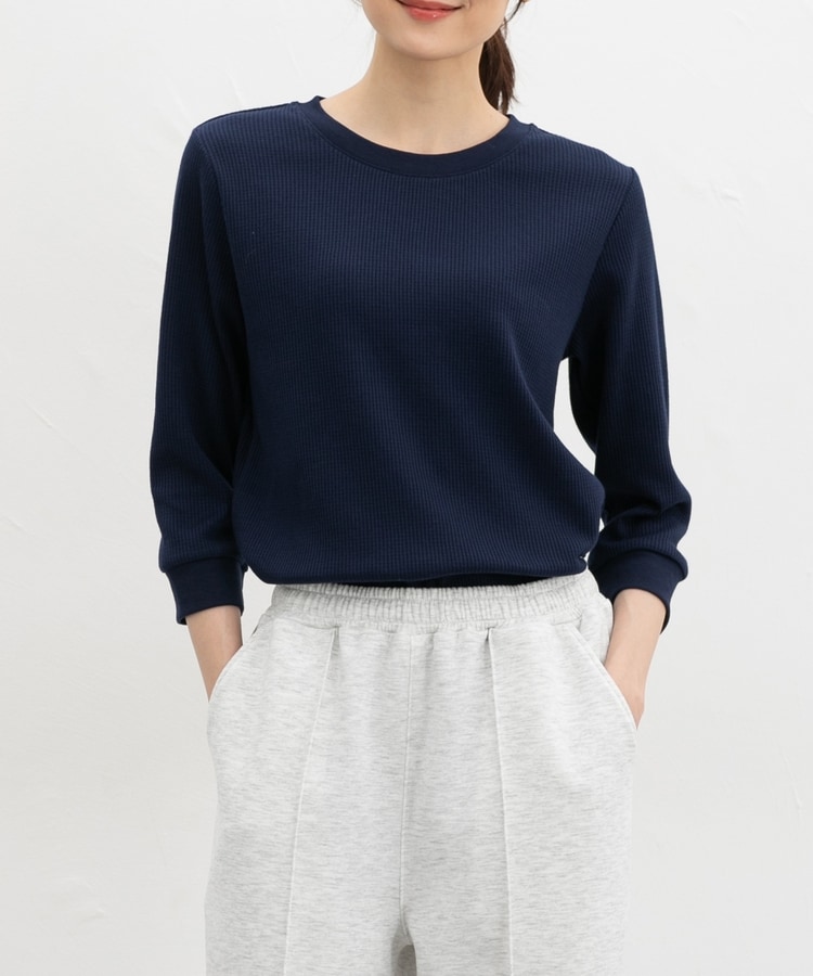 表面に立体感がある、着心地のよい綿混ワッフル素材。