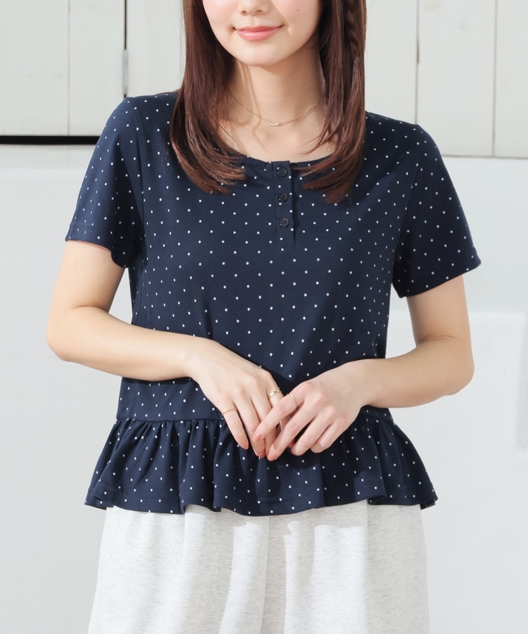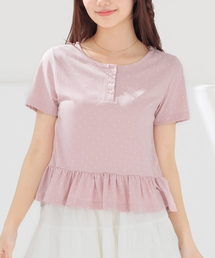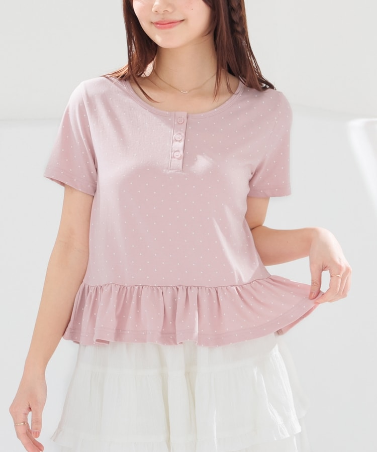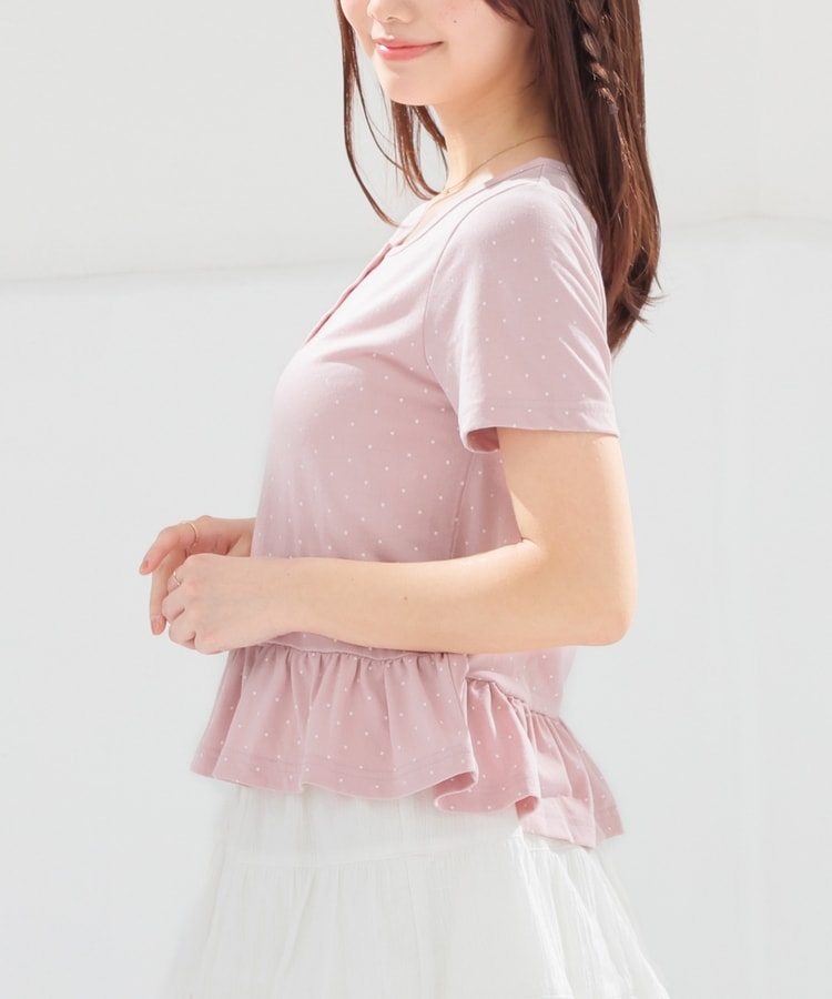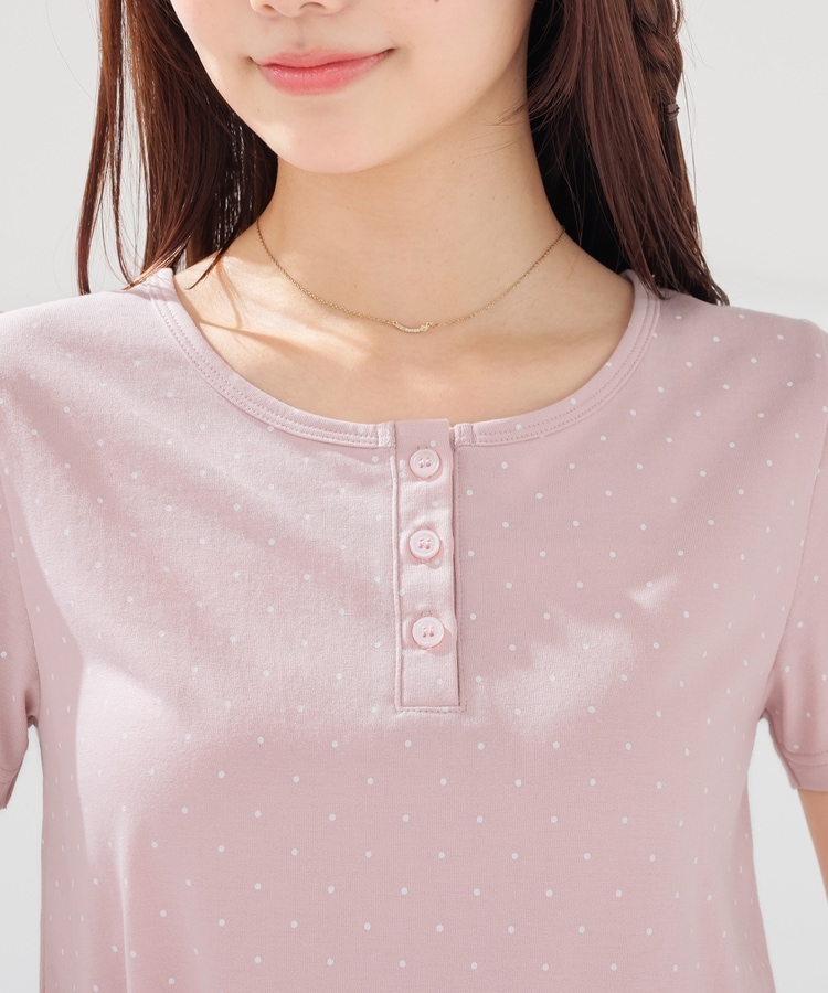 ピンク水玉 / モデル:162cm / 着用サイズM