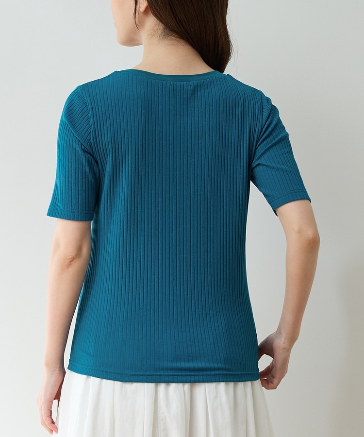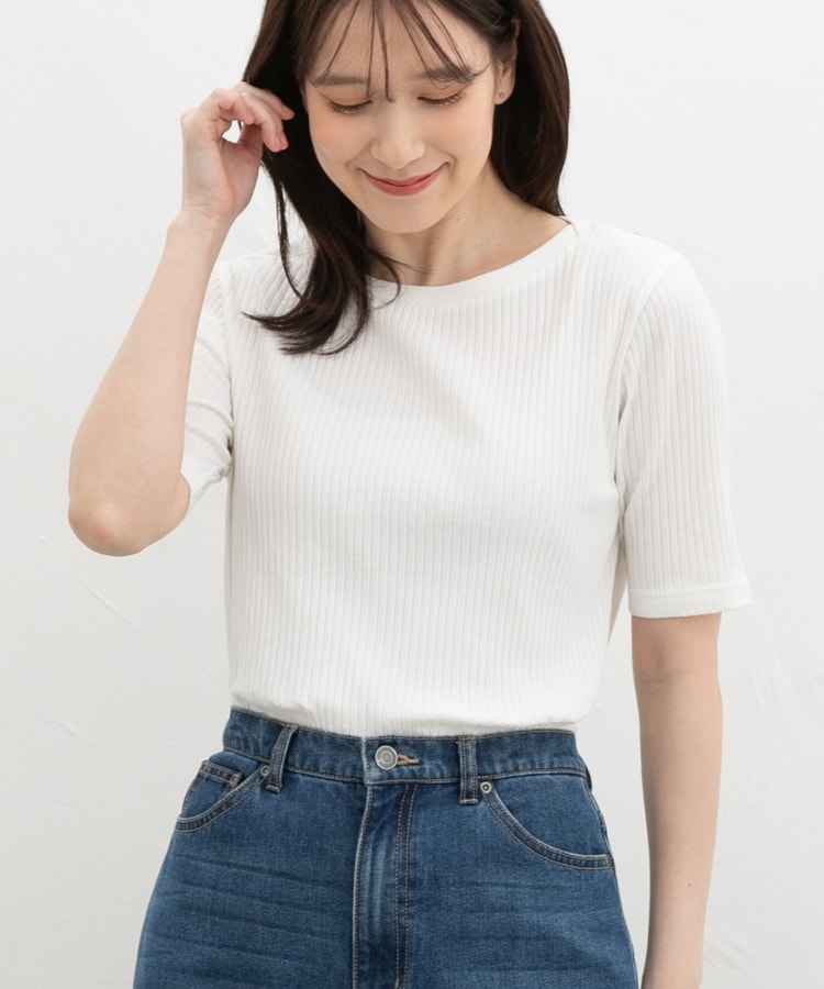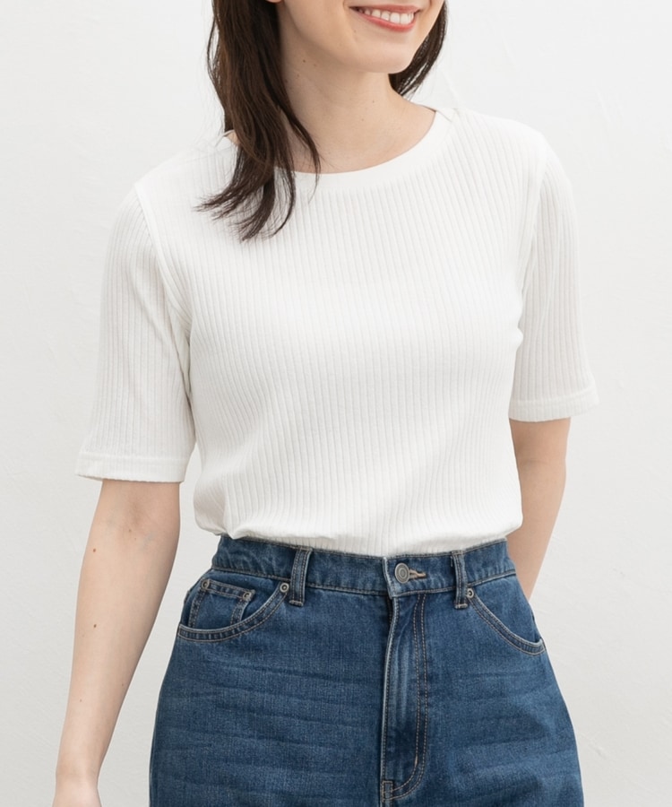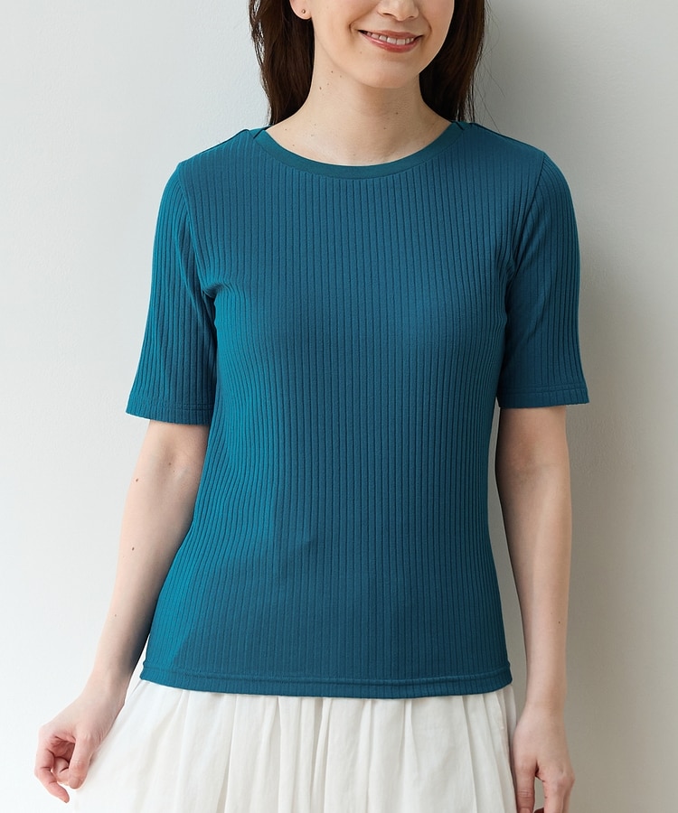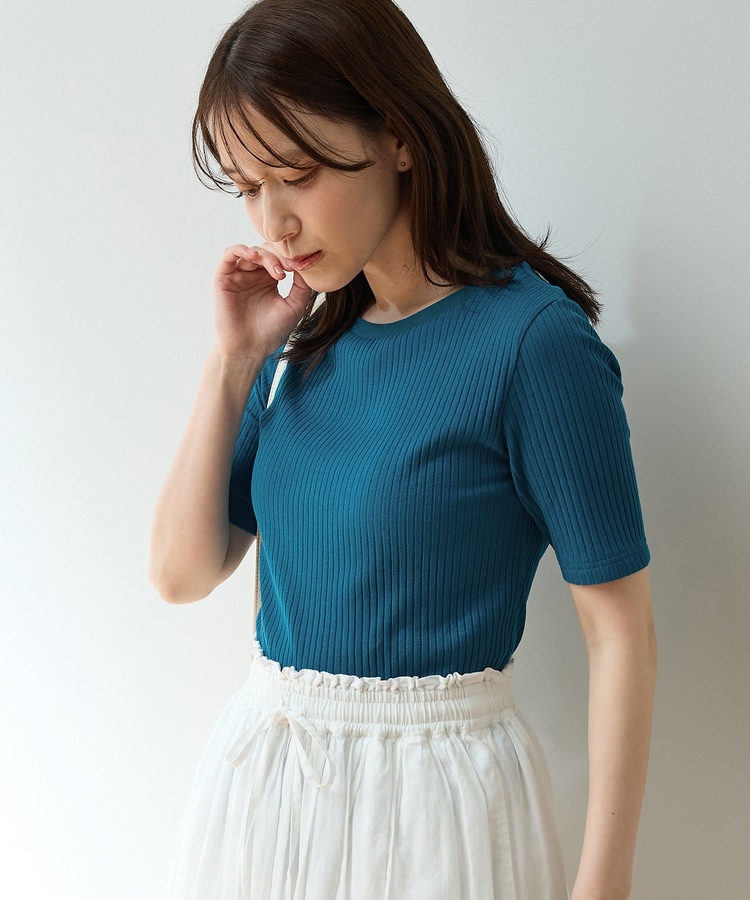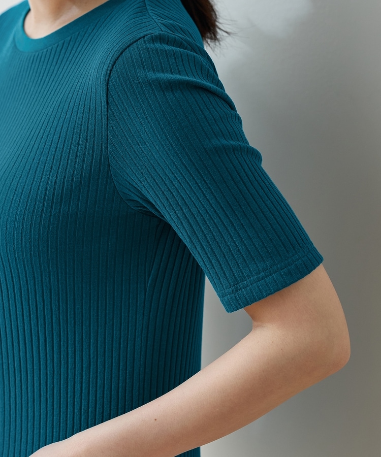 ストレッチの利いた、柔らかで着心地抜群の綿混テレコ素材。