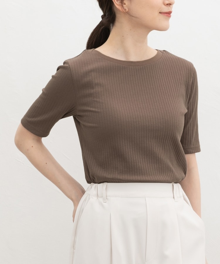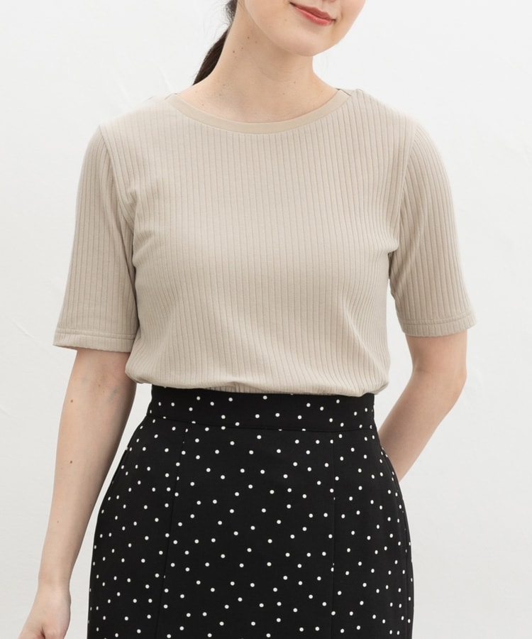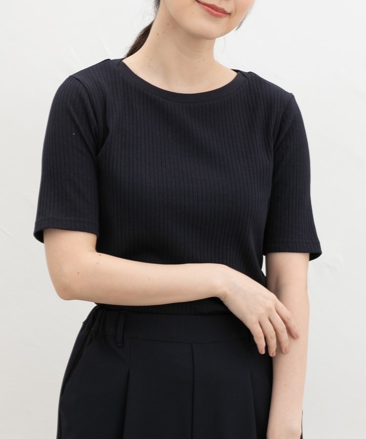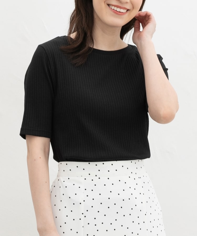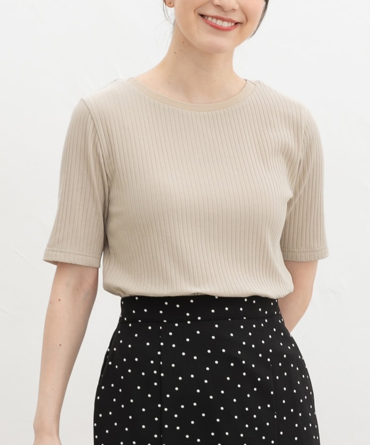 デコルテがきれいに見えるボートネックのシンプルデザイン。