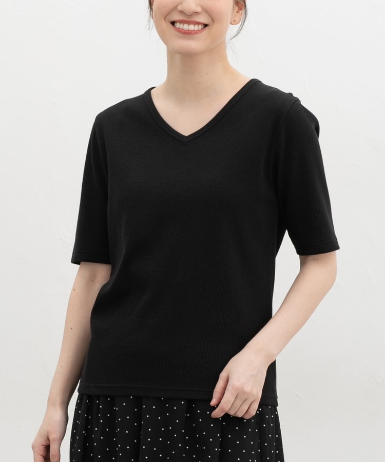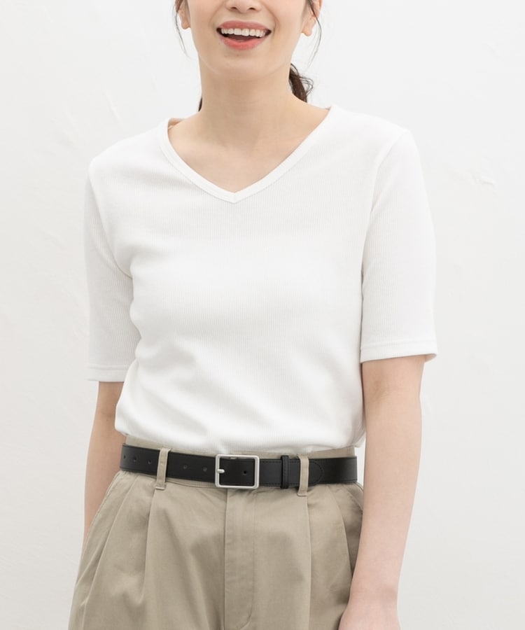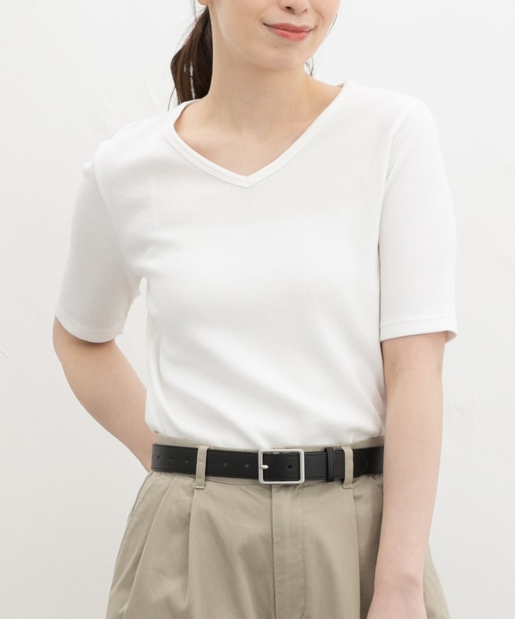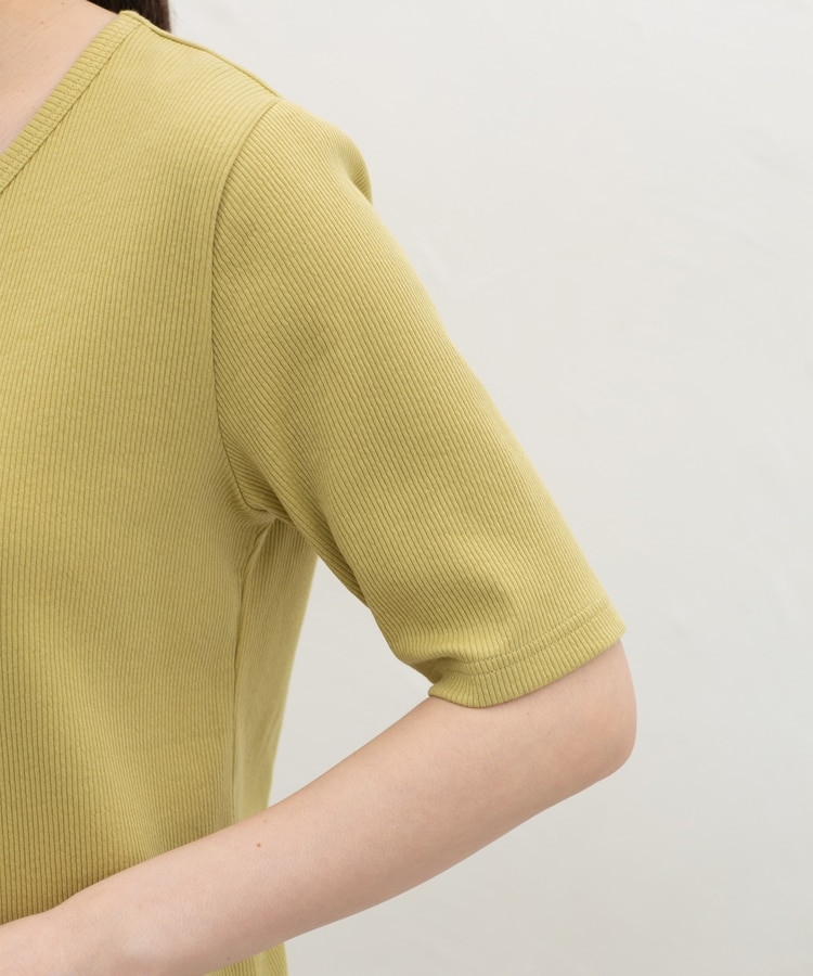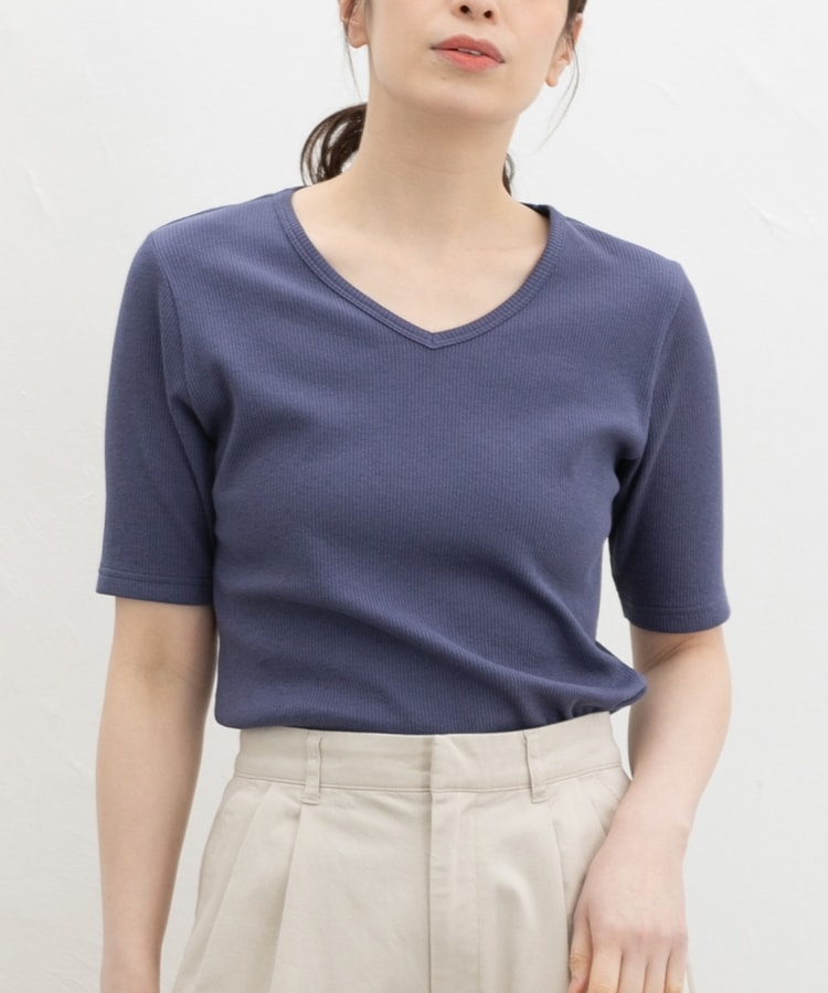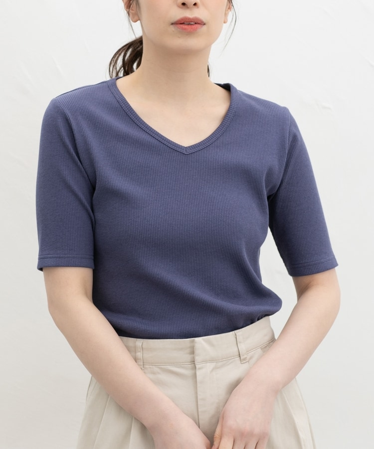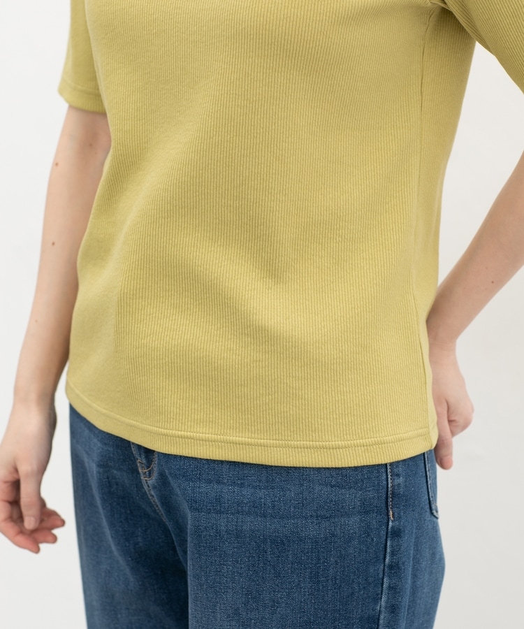 程よくハリがあり、さらりとした肌触りの綿混リブ素材。