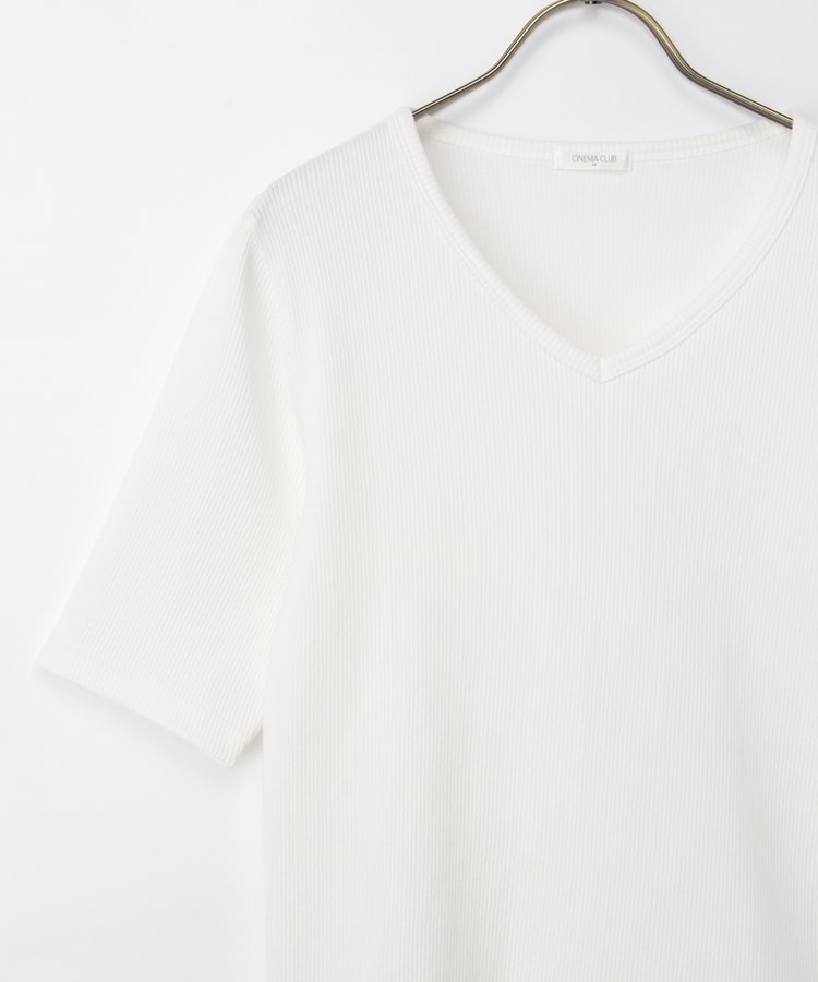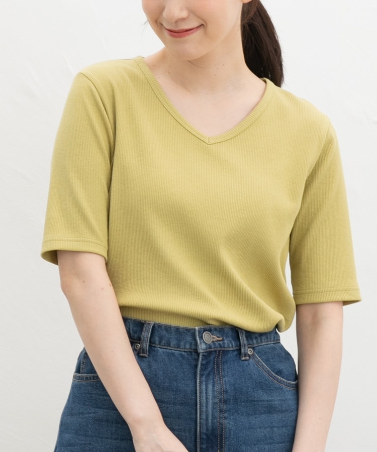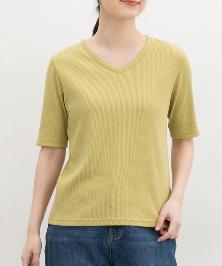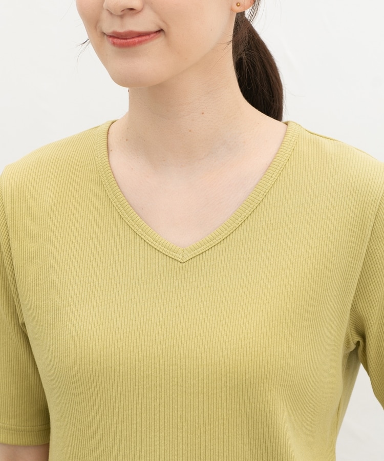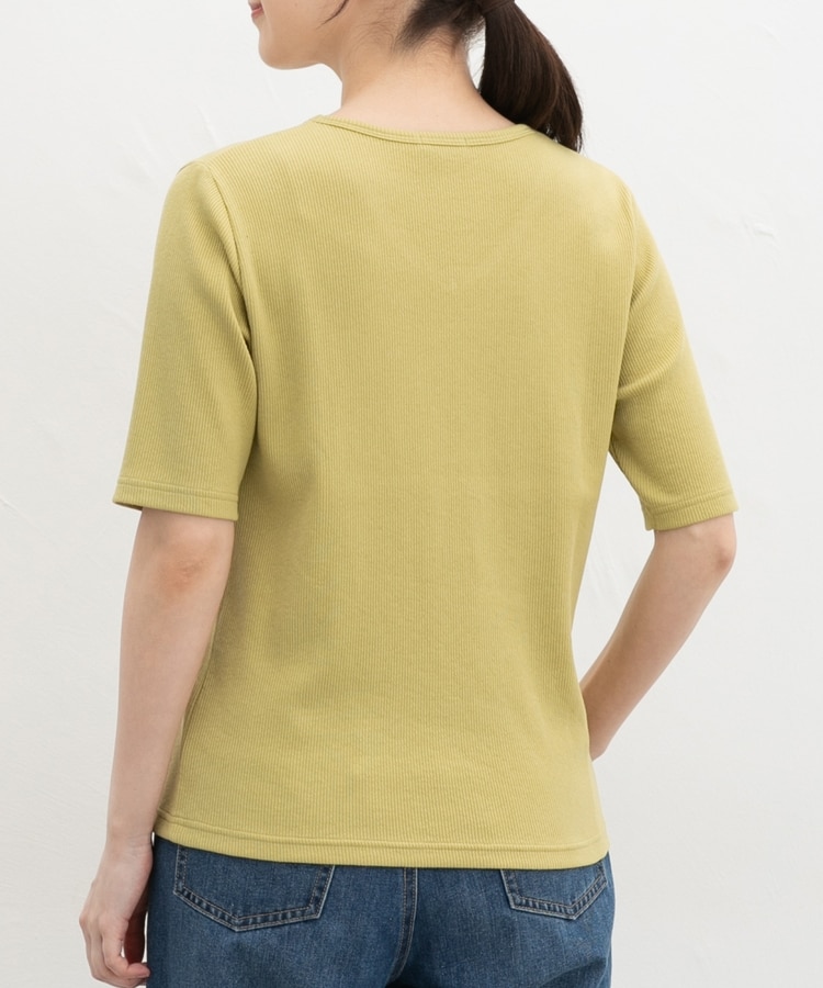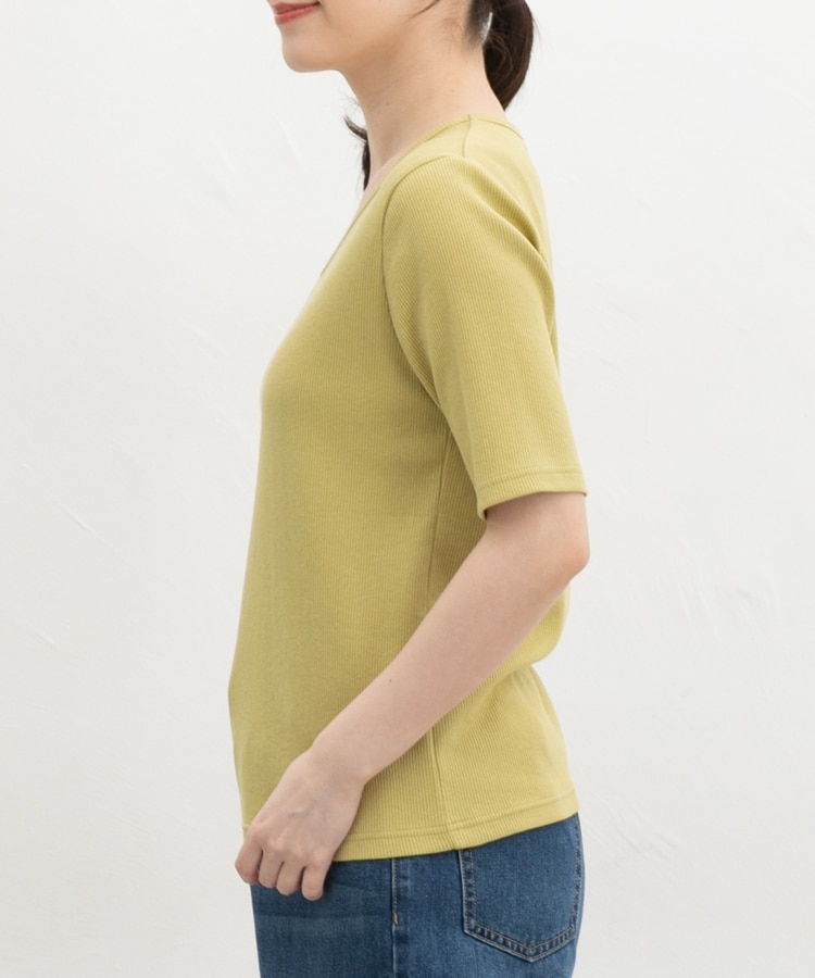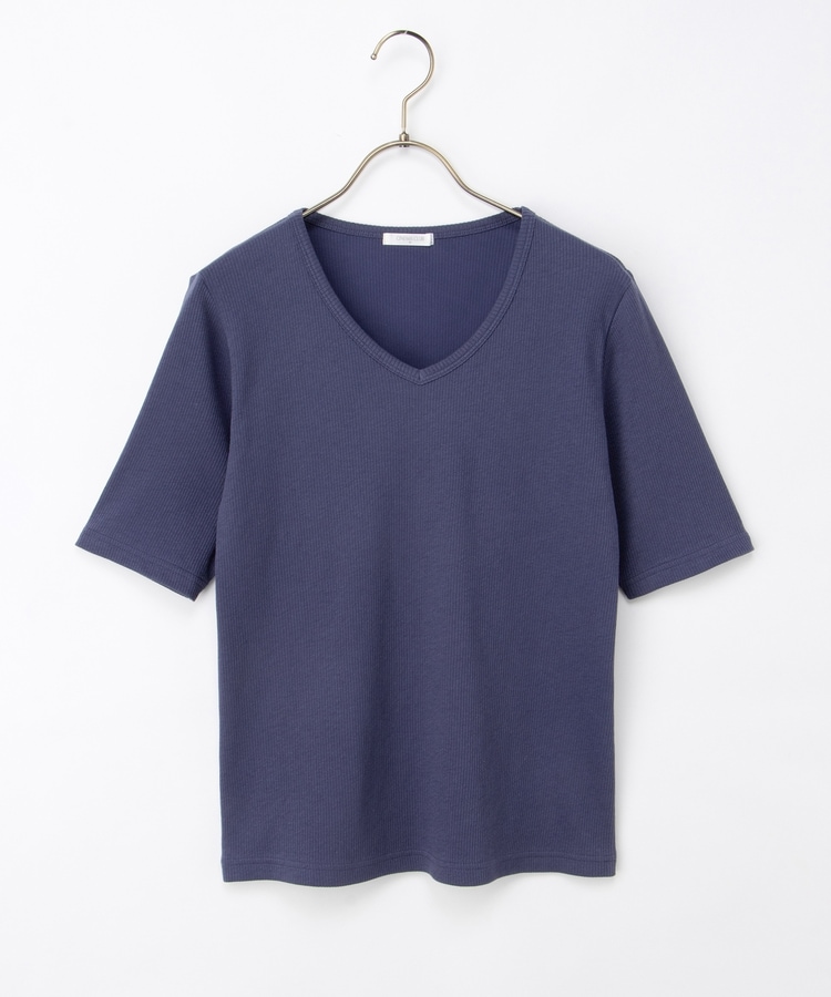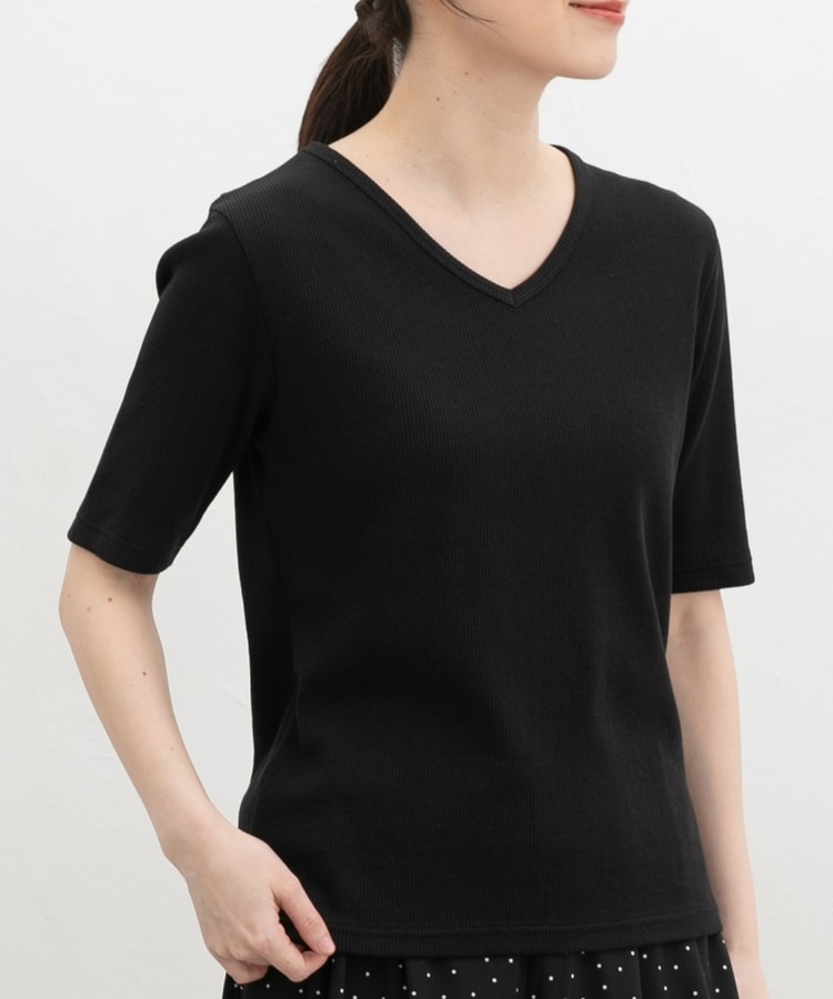 程よくハリがあり、さらりとした肌触りの綿混リブ素材。