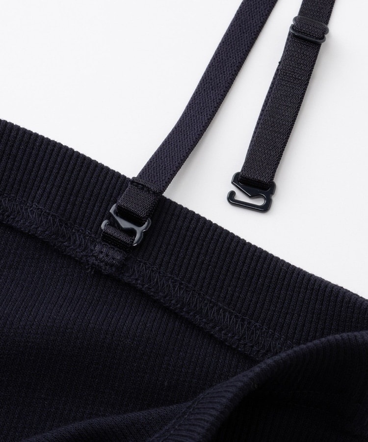 胸元と後ろ背のゴムでしっかり止まり、肩ひもを外しても安心。