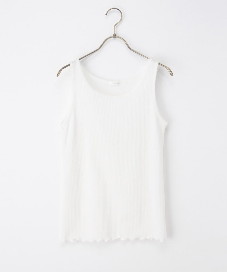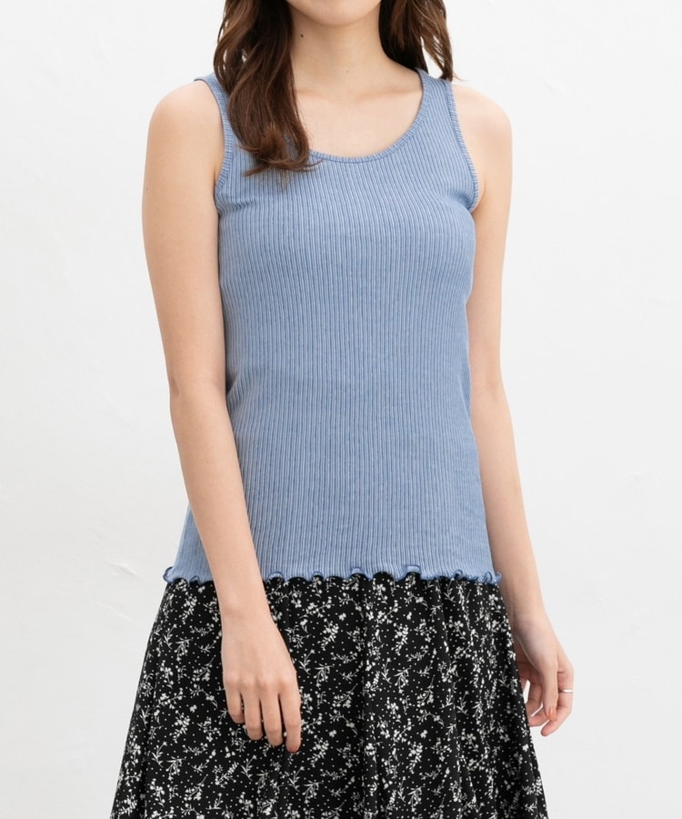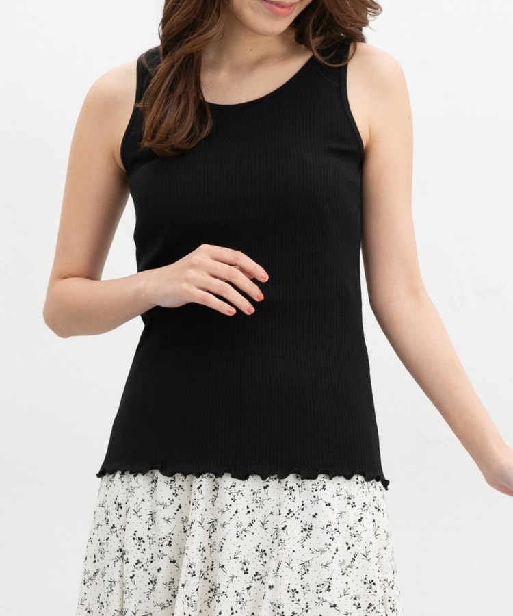 裾のさりげないメローフリルが大人可愛いデザイン。