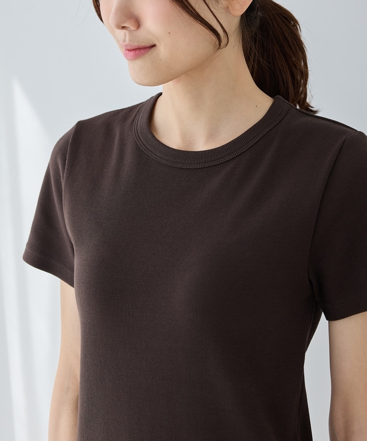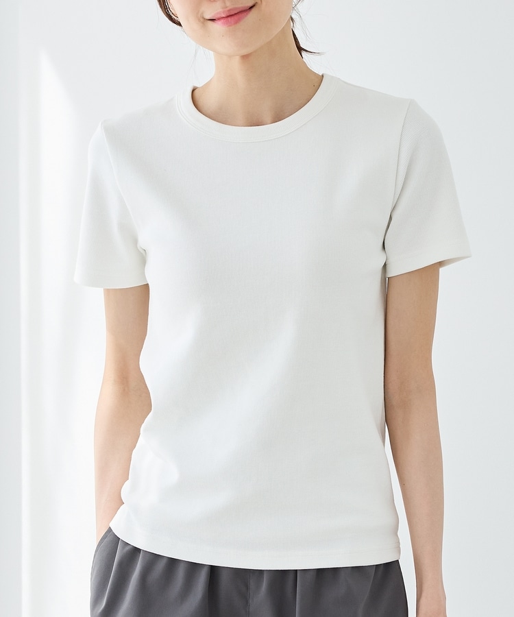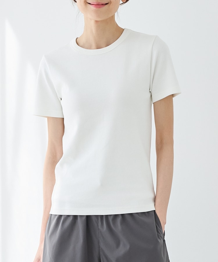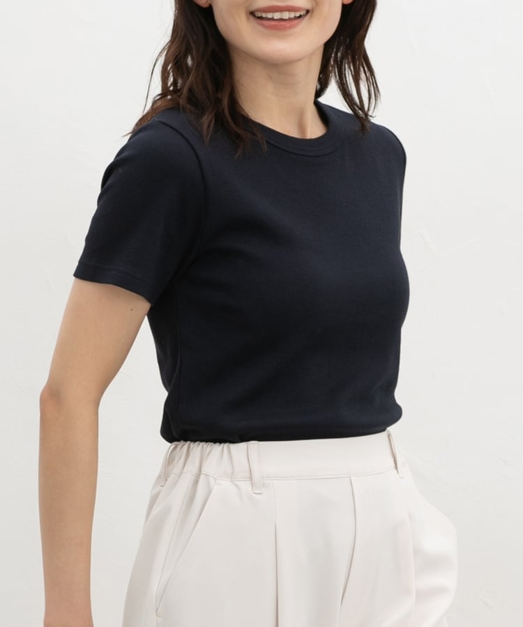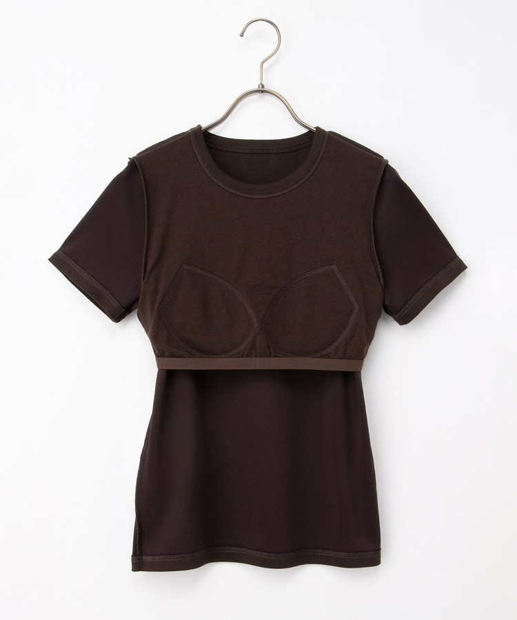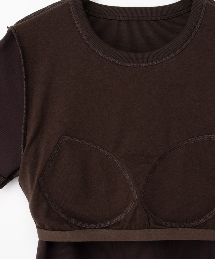 クッション性のあるソフトカップ付きのシンプルなクルーネックデザイン。