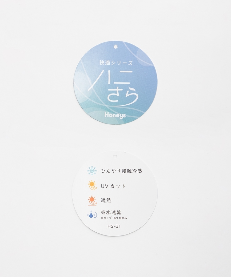 表地にはひんやり快適な『接触冷感』と、紫外線対策ができる『UVカット』、外からの熱を遮断する『遮熱』、カップと当て布には素早く汗を吸収して乾きやすい『吸水速乾』の機能が付いた『ハニさら・アクティブウェア』シリーズ。