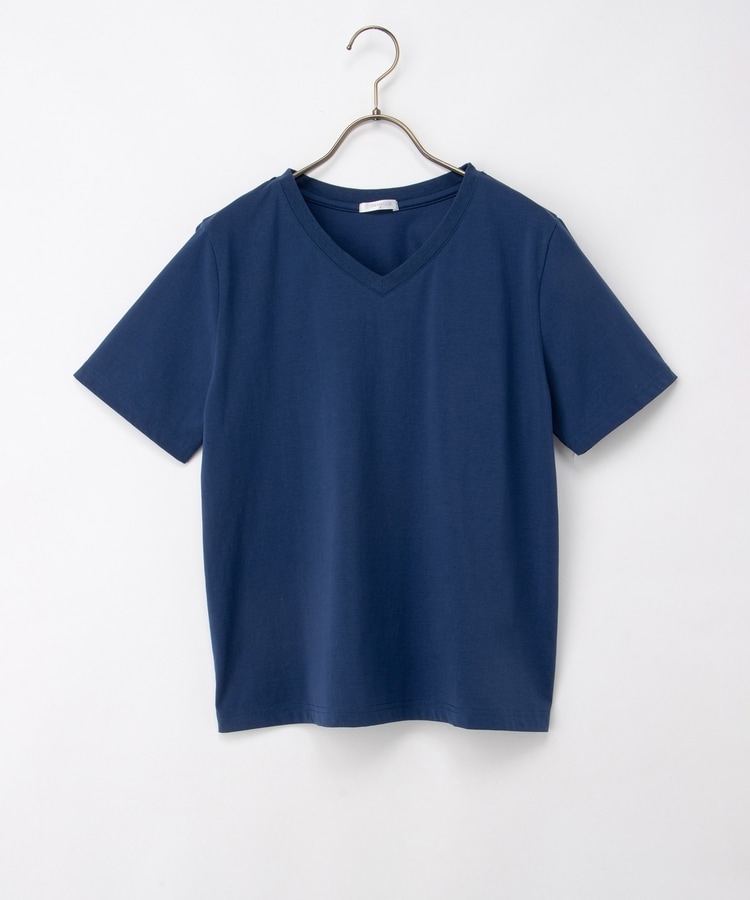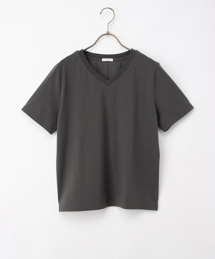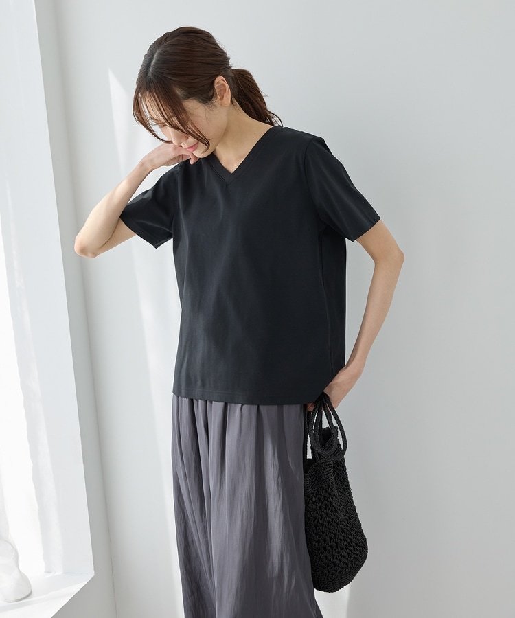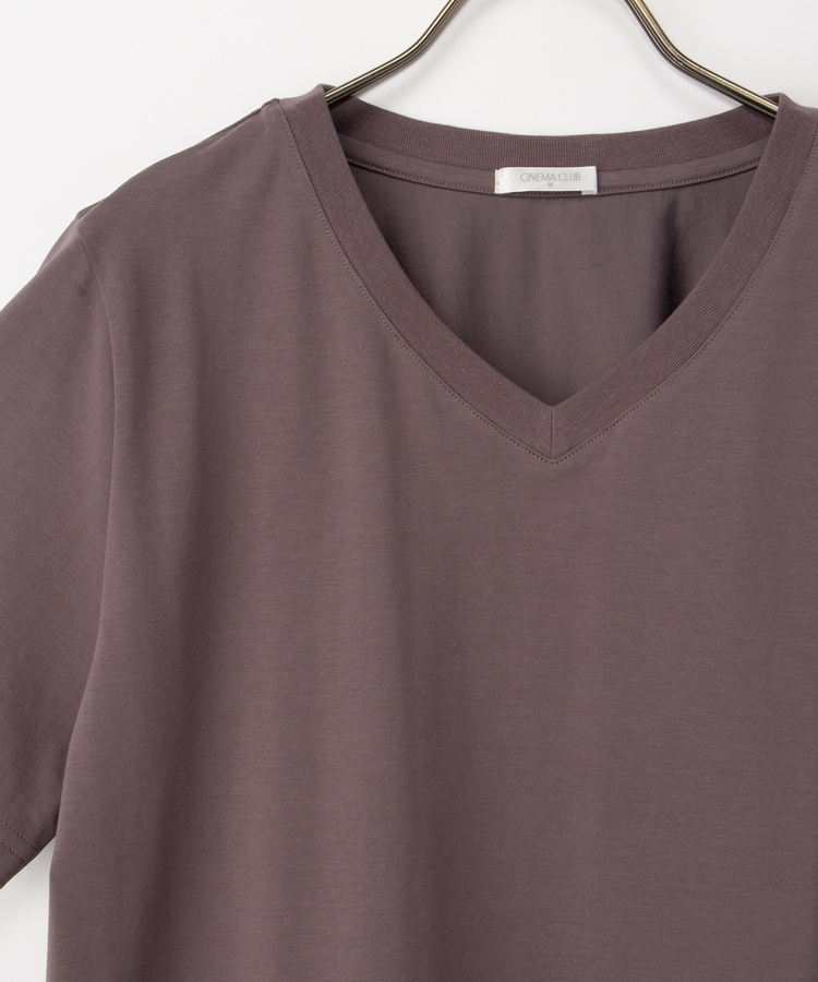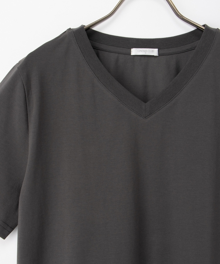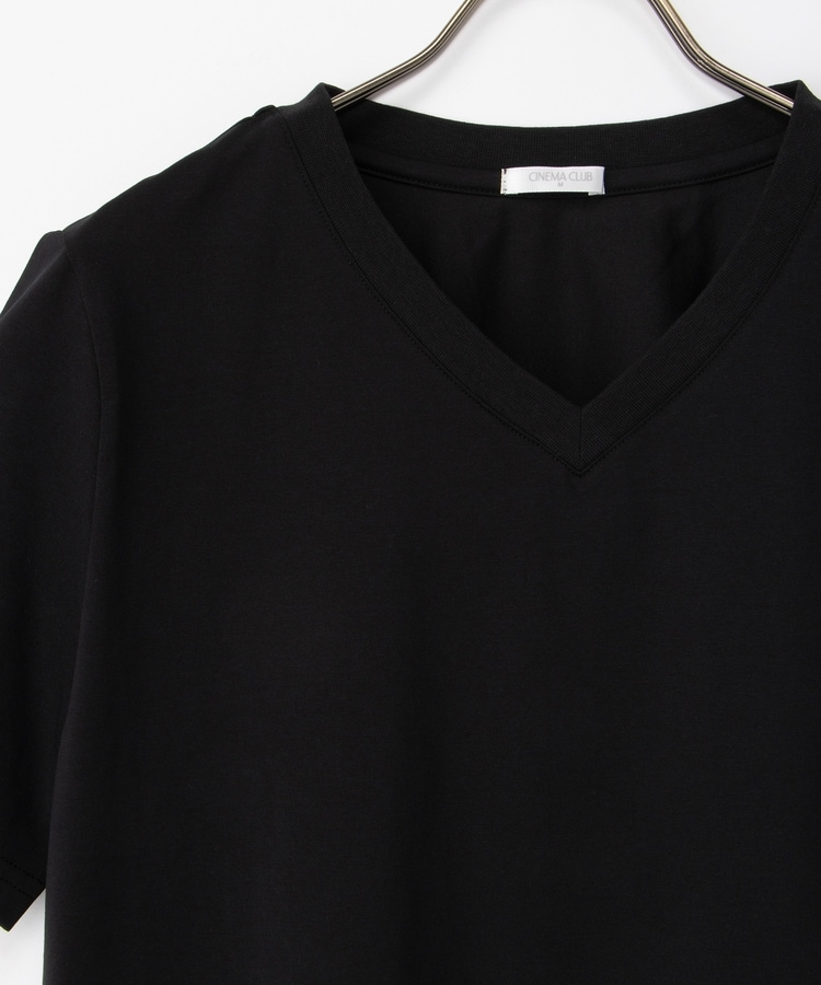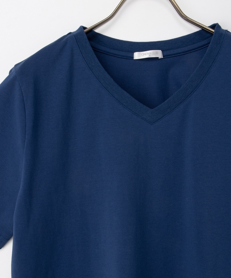 デコルテをすっきり見せるVネックのシンプルデザイン。