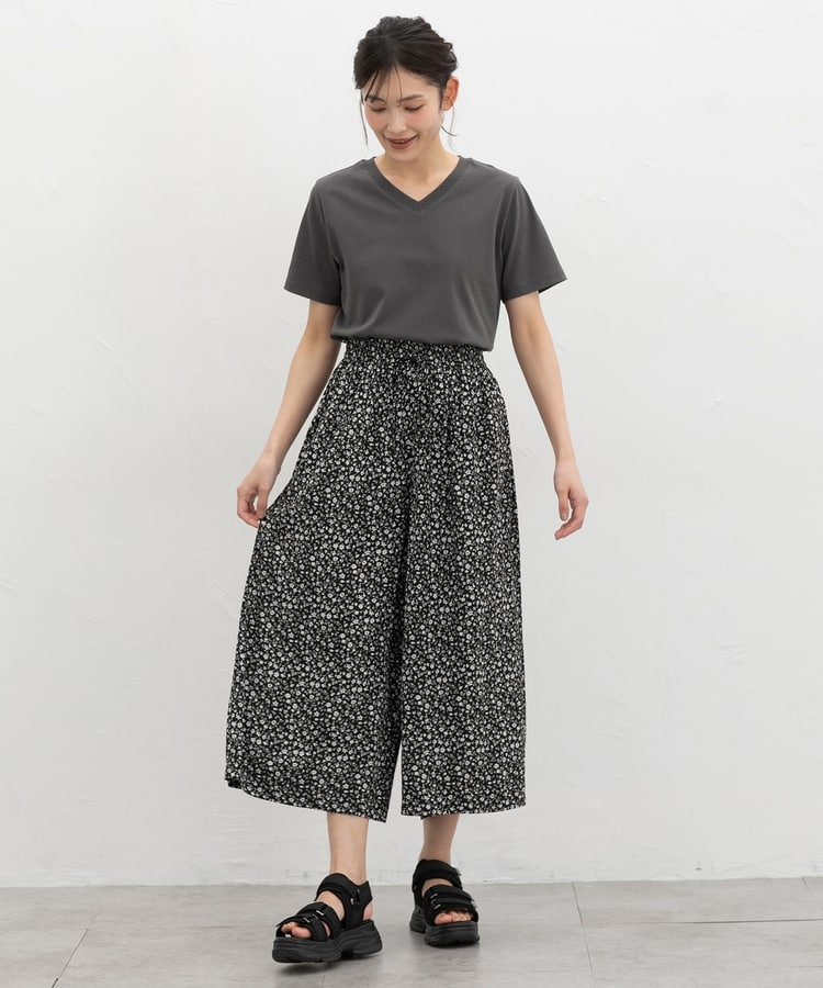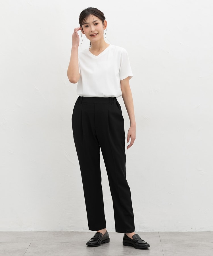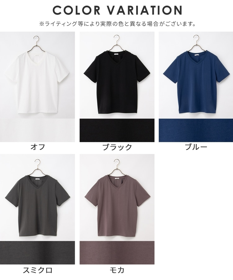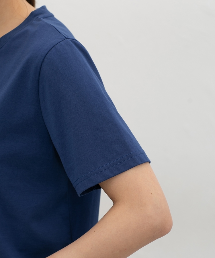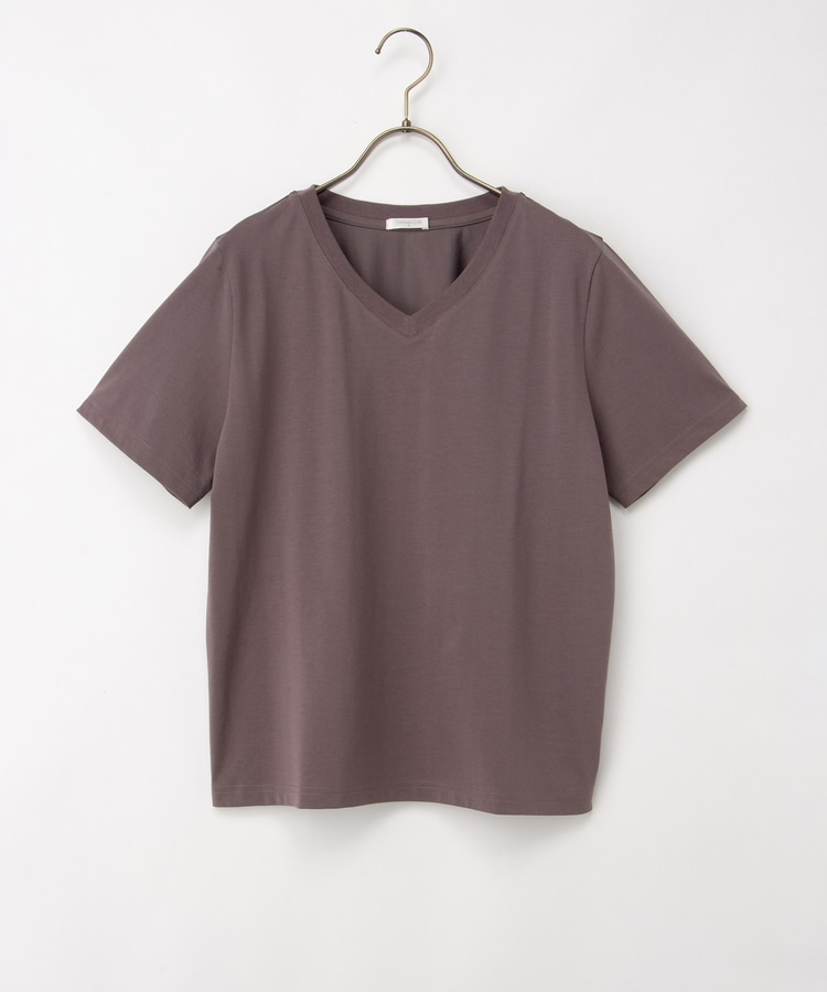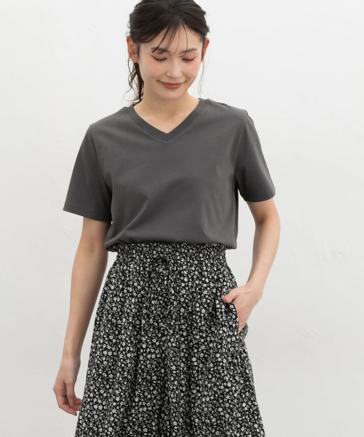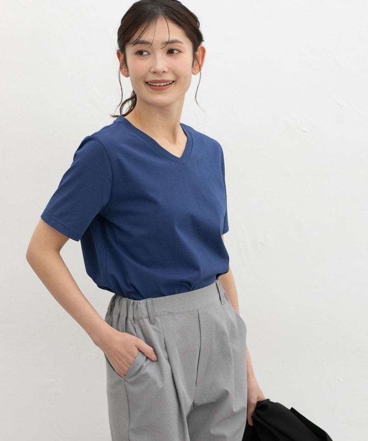 デコルテをすっきり見せるVネックのシンプルデザイン。