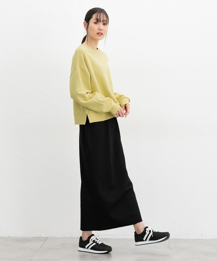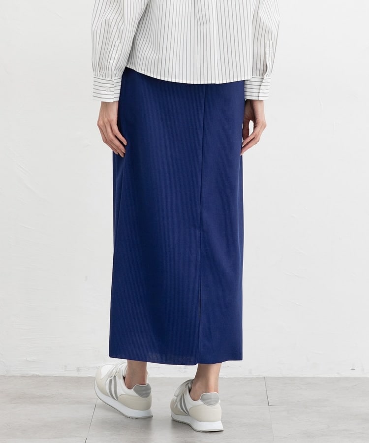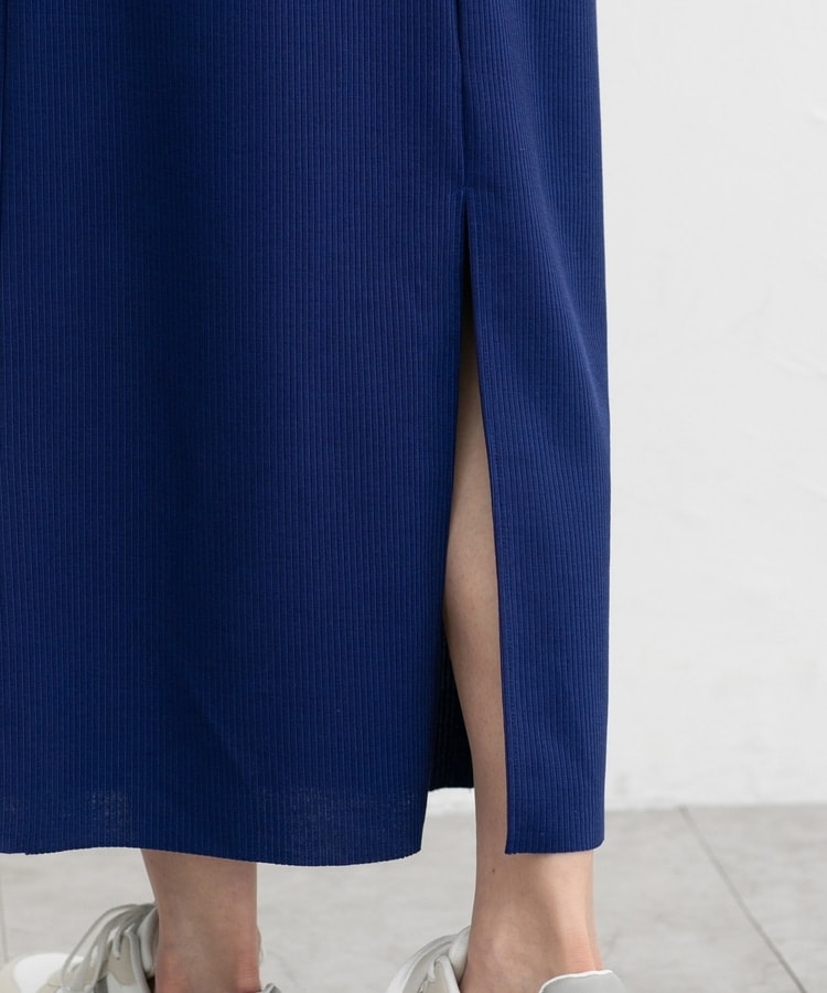 縦の編み目とすとんとしたIラインシルエットで脚長効果抜群のシンプルデザイン。