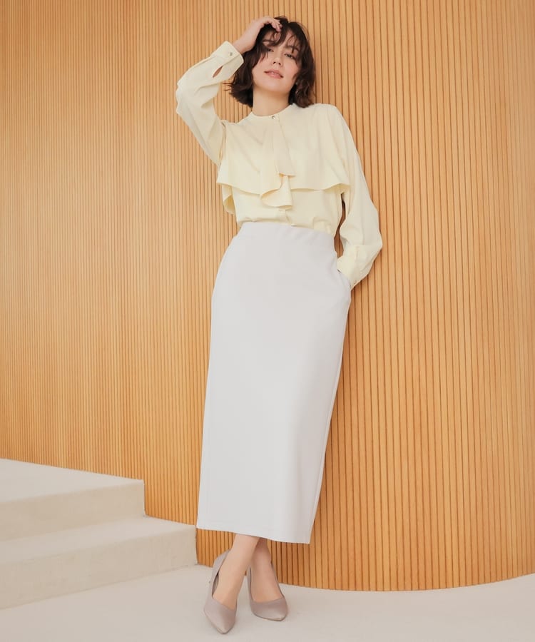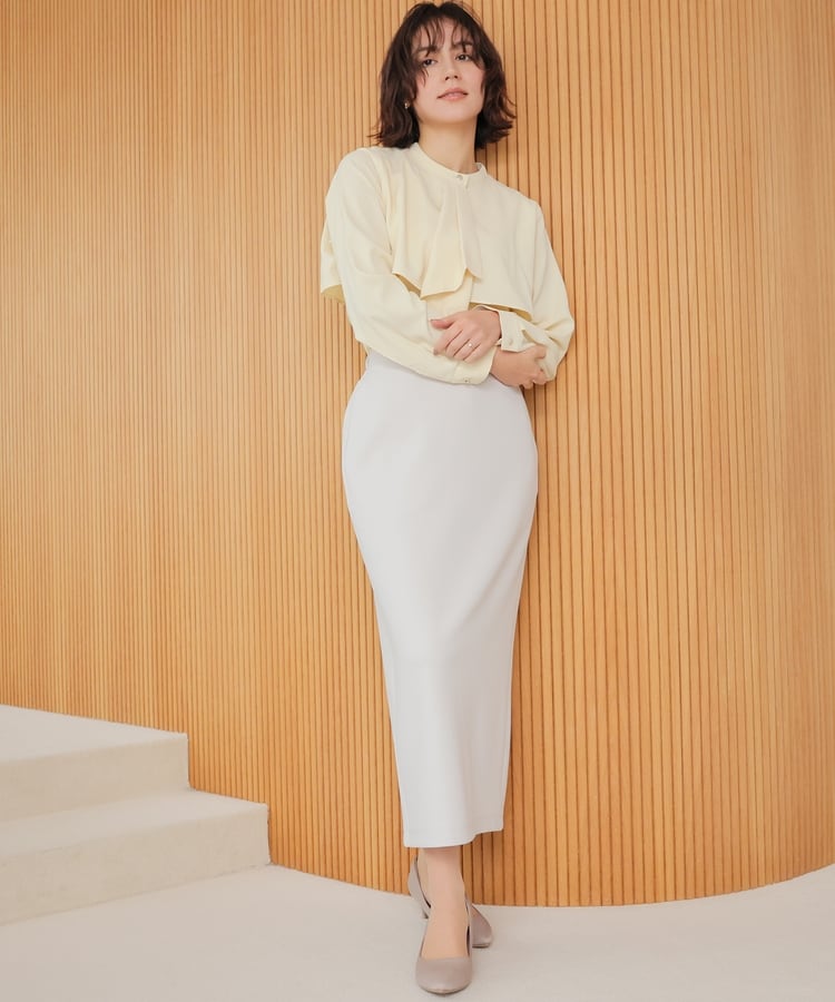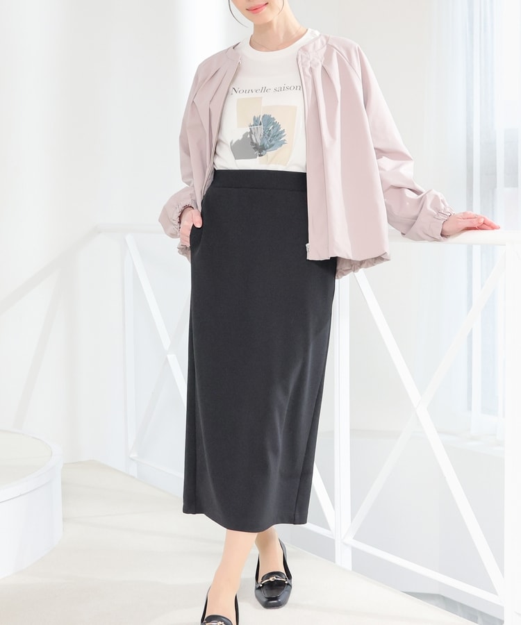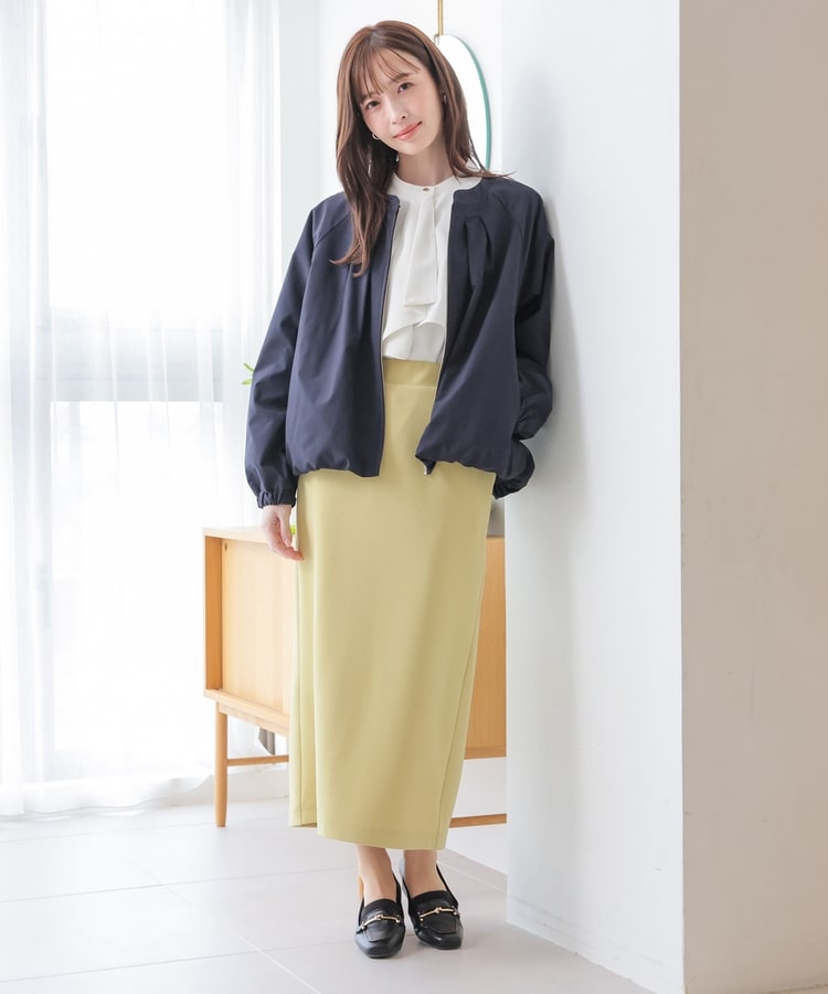 体のラインを拾いすぎず体型もカバーするIラインシルエット。
