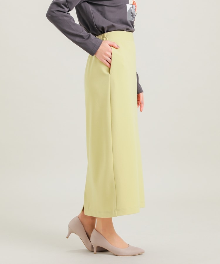 ウエスト総ゴムで楽々なはき心地ながら、フロントはすっきり見えも叶える隠しゴム仕様。