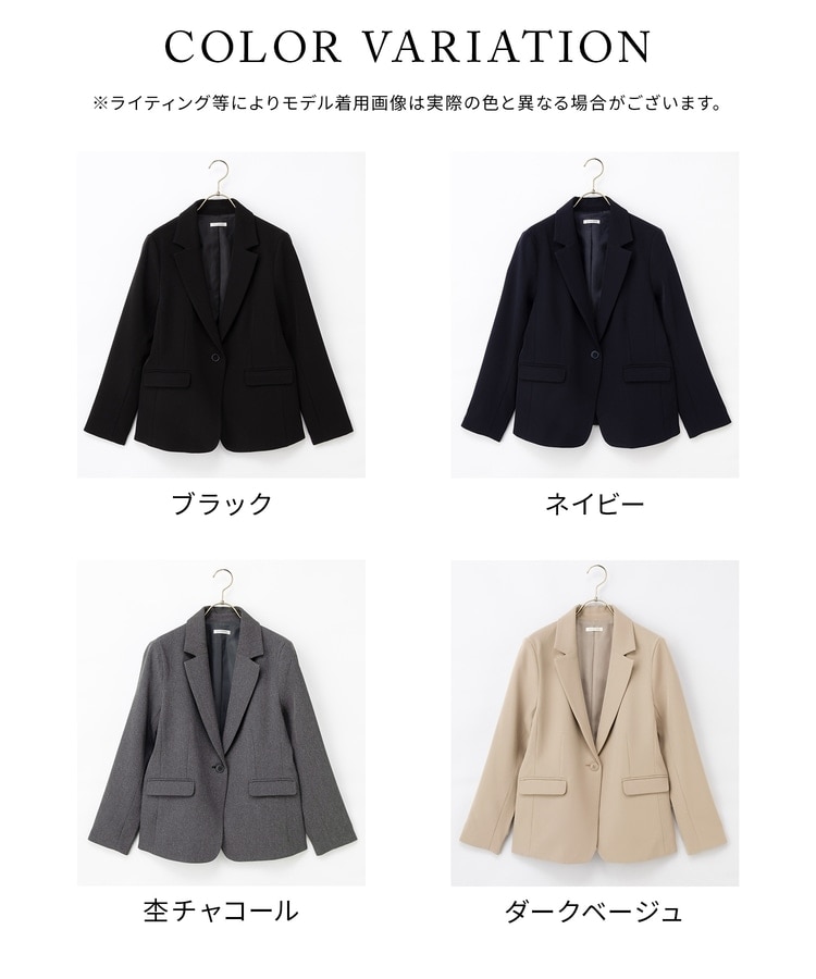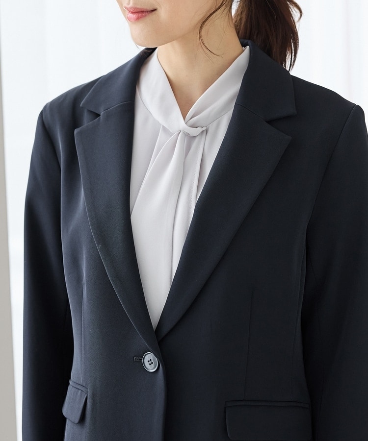 ベーシックなテーラードカラーの1つボタンタイプ。
