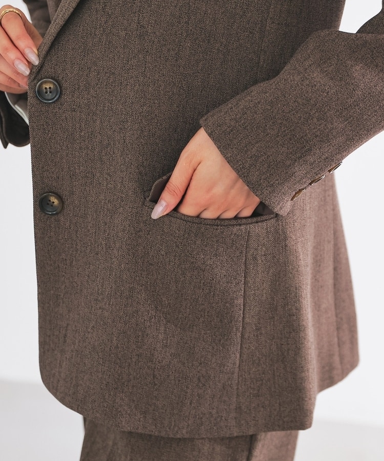 ベーシックなテーラードカラーの2つボタンタイプ。