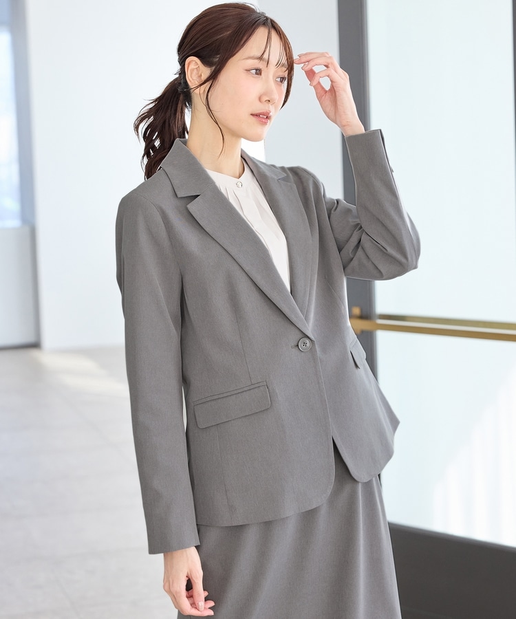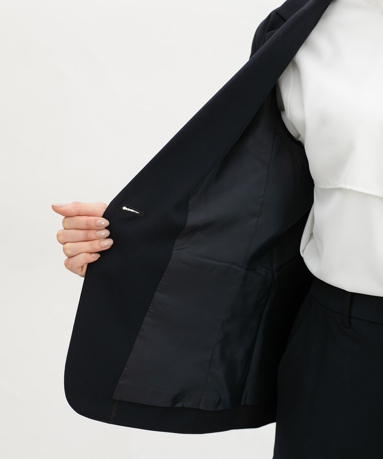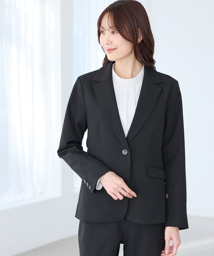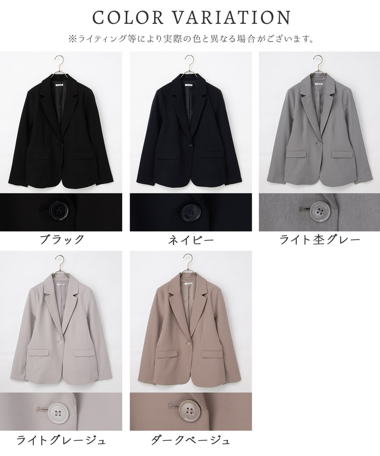 ベーシックなテーラードカラーの1つボタンタイプ。