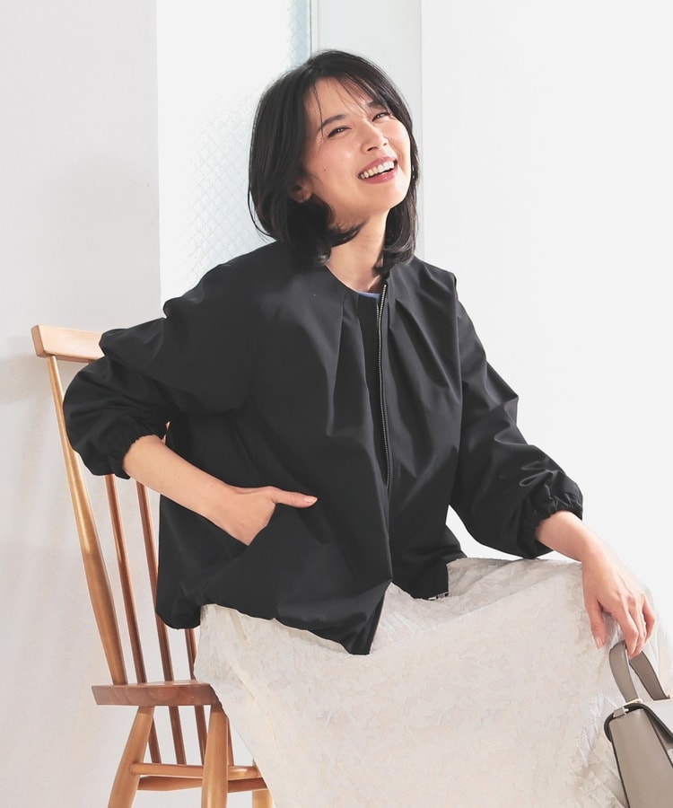カジュアルなアイテムながら、丸みのあるシルエットでフェミニンな印象に。