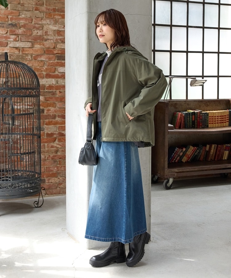 裾にはストッパー付きのゴム入りで、シルエットチェンジ可能。