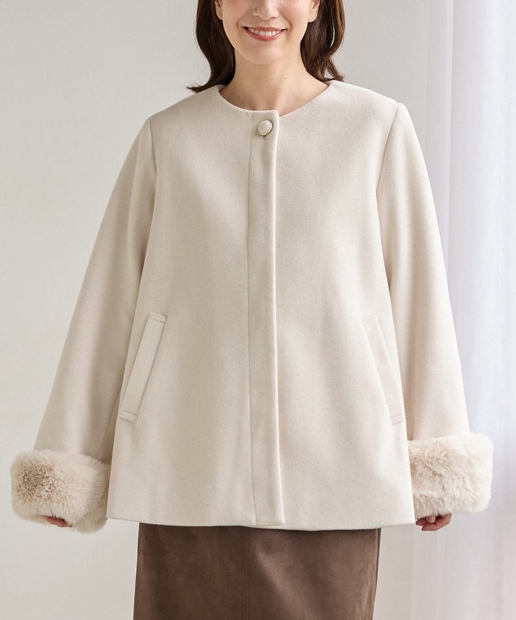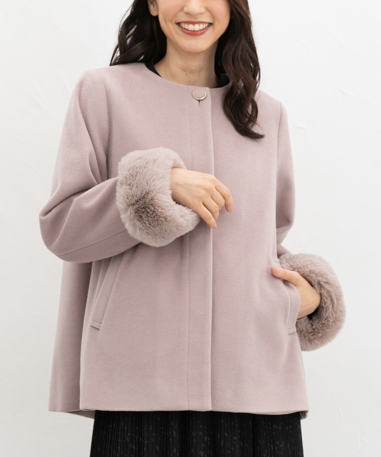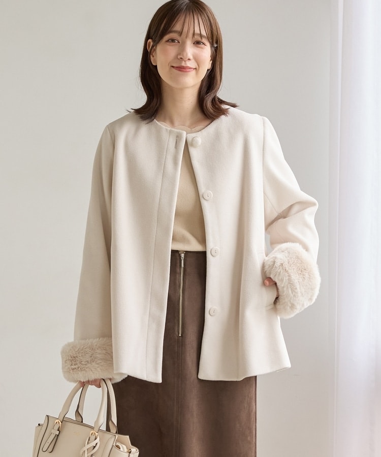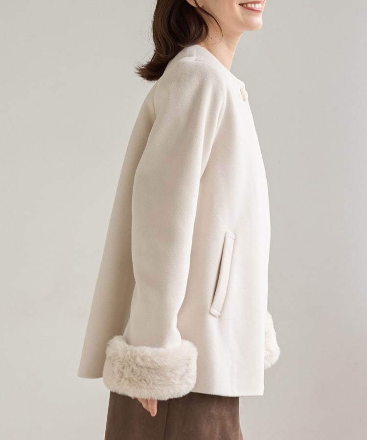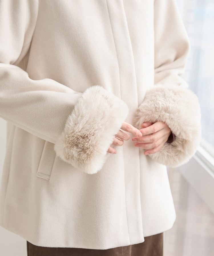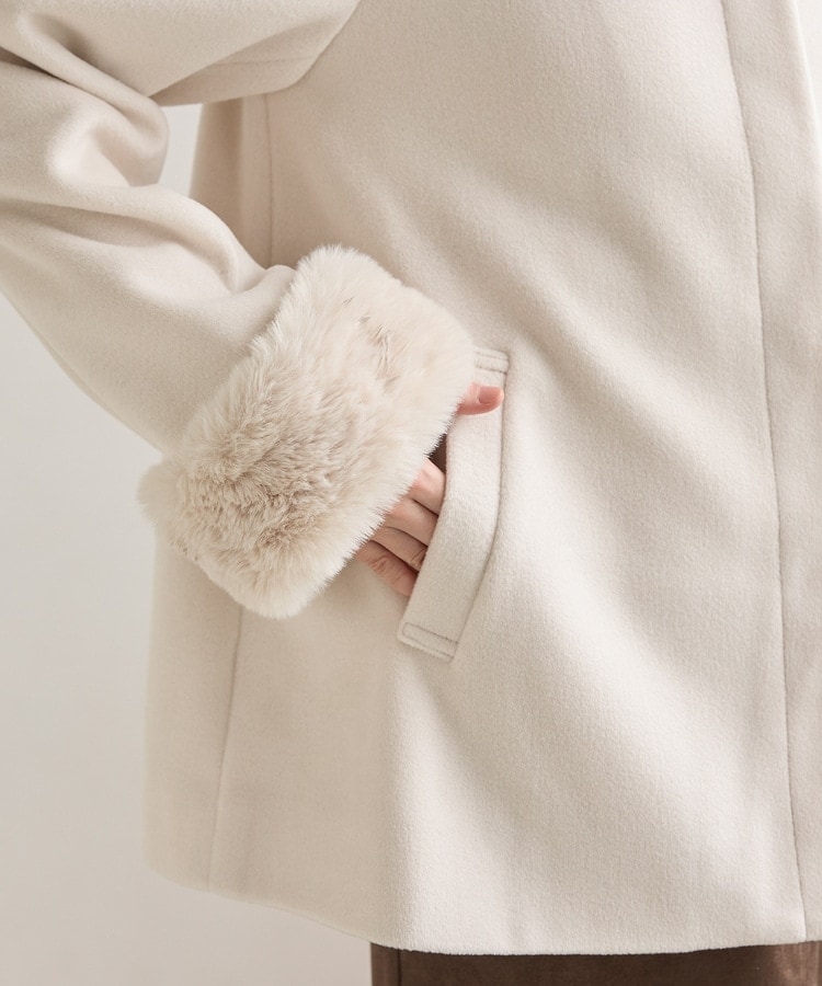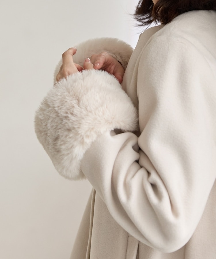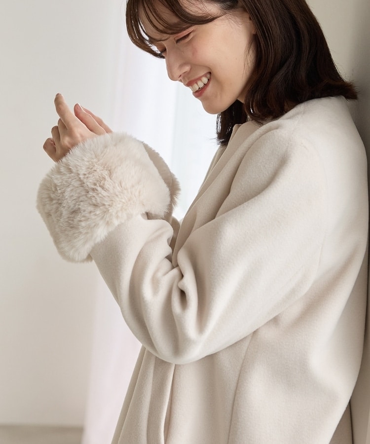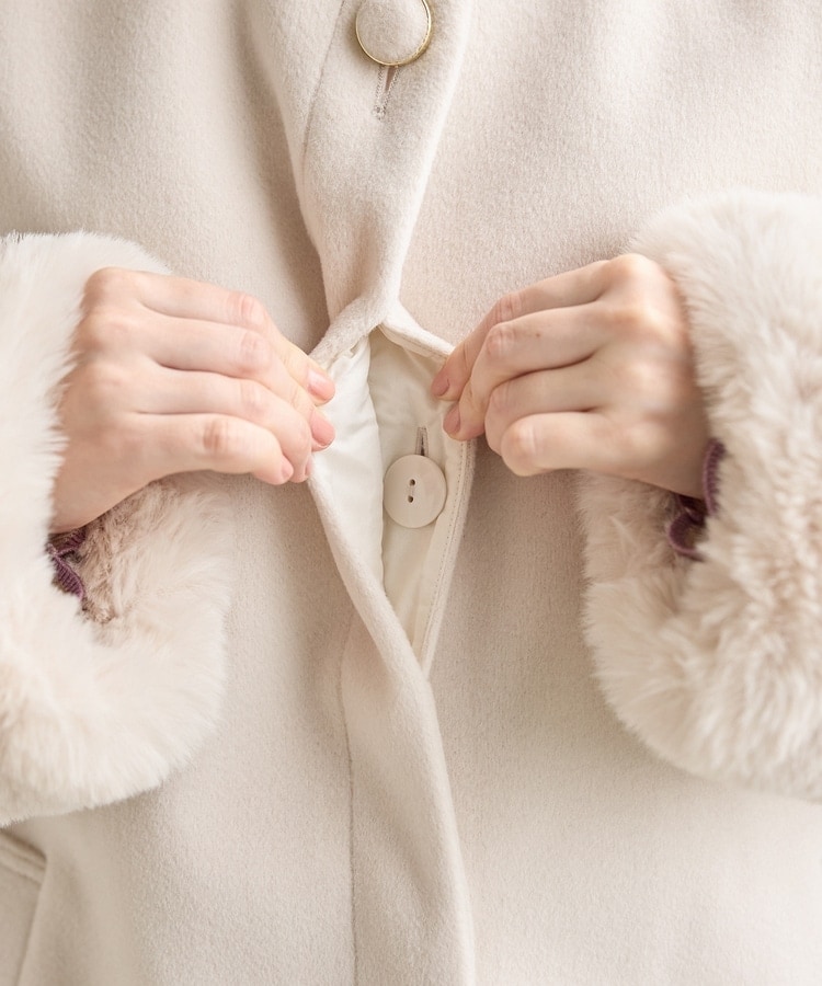 袖口のフェイクファーはコーデや気分に合わせて取り外し可能な2way仕様。