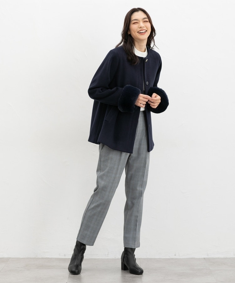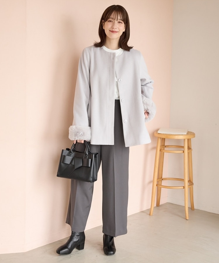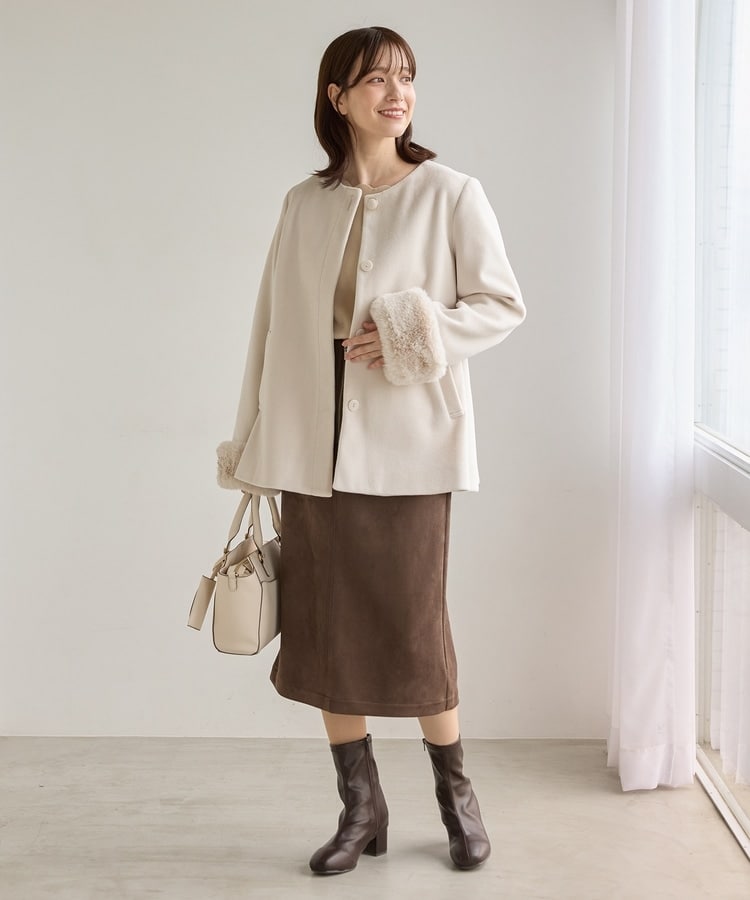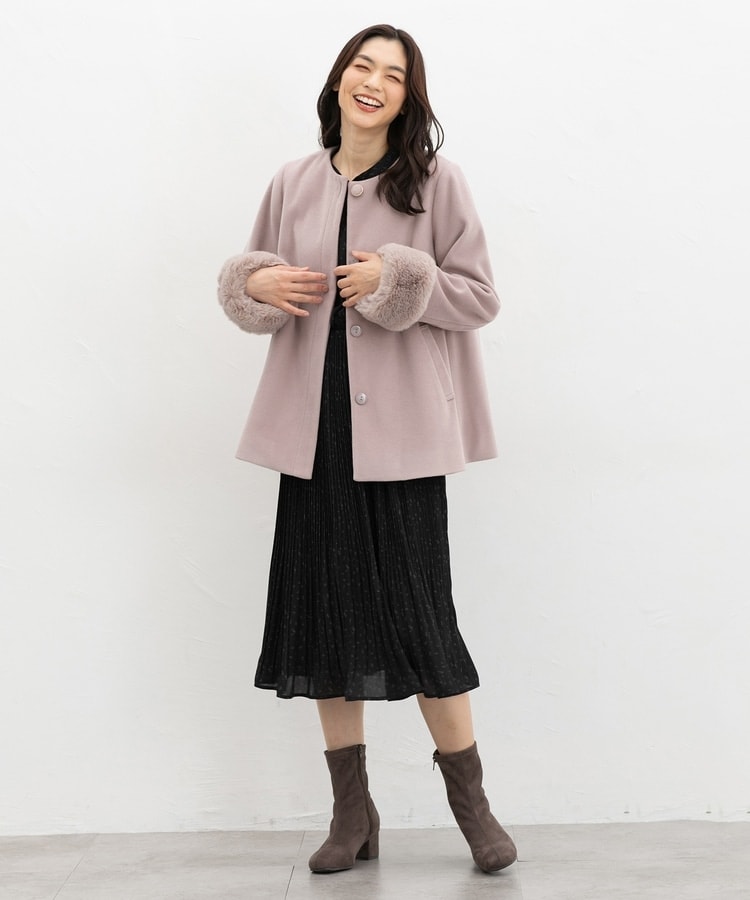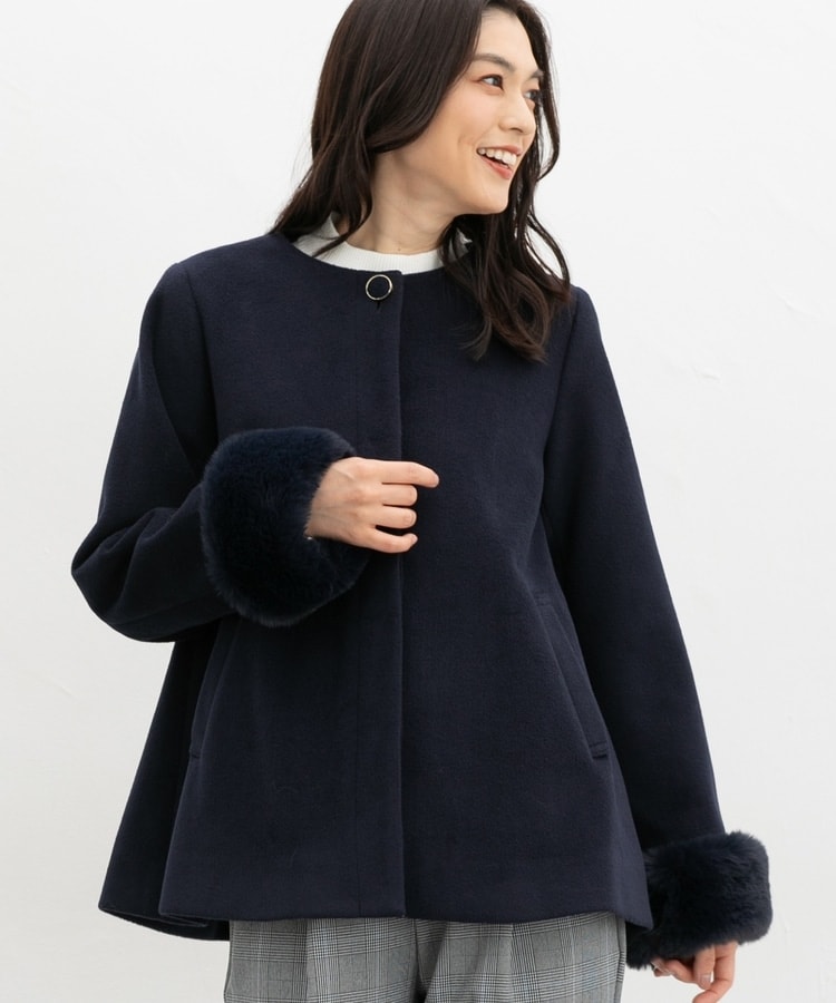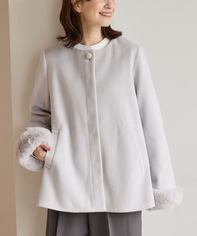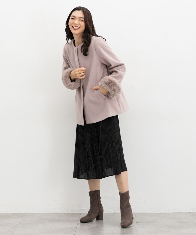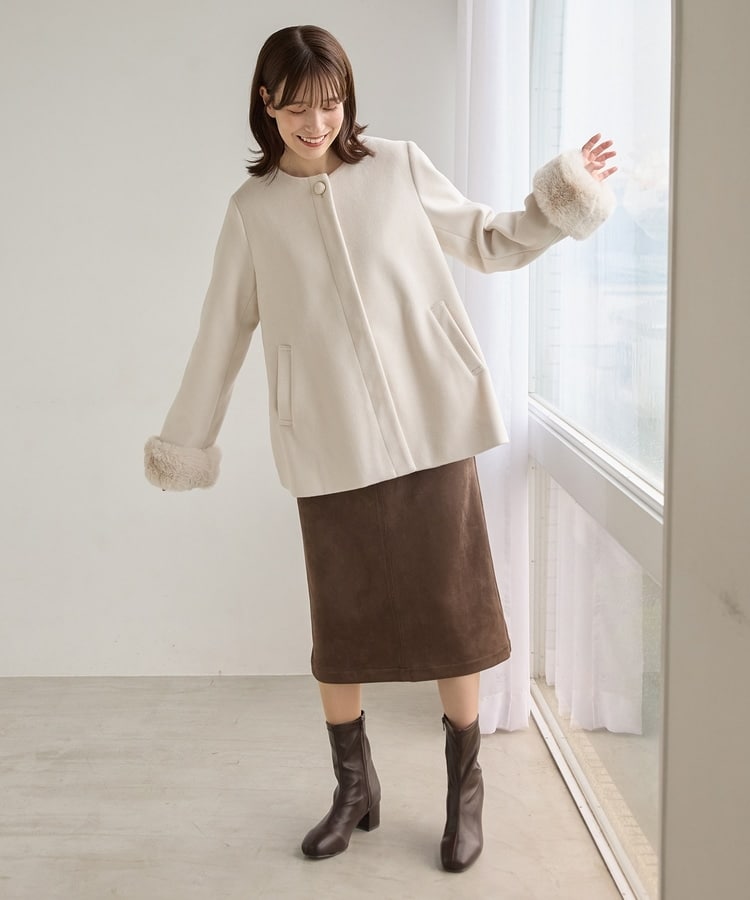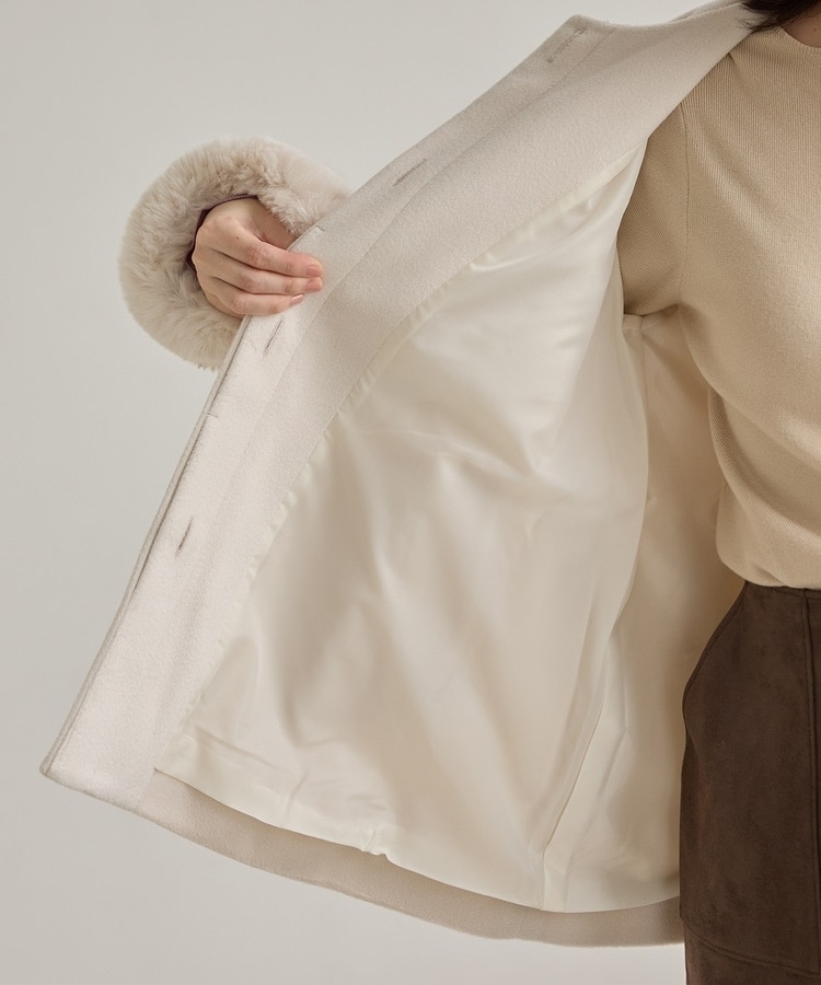 袖口のフェイクファーはコーデや気分に合わせて取り外し可能な2way仕様。