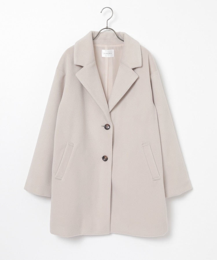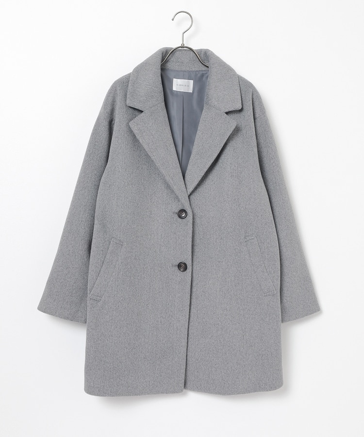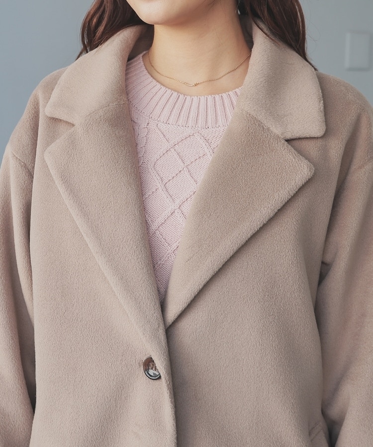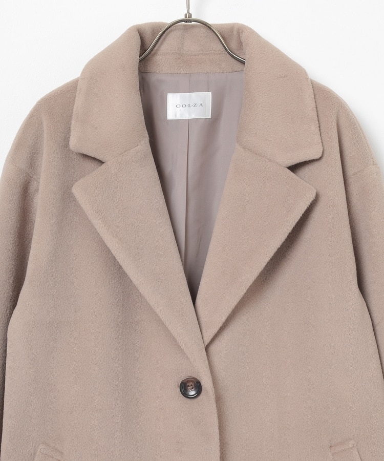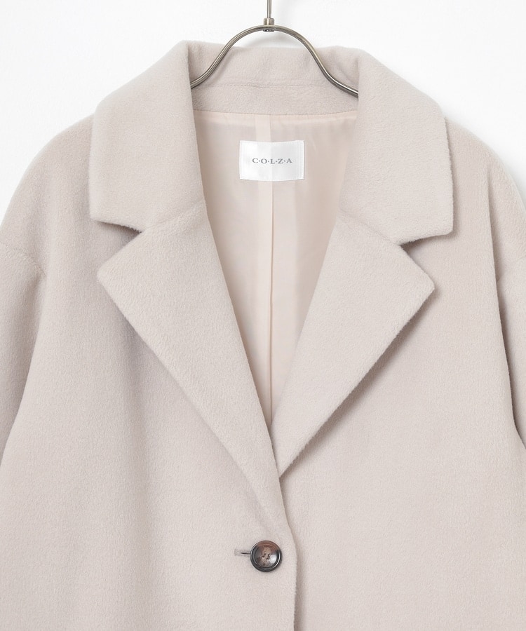 すっきりと開いたテーラードカラーにシングルボタンのベーシックなデザイン。
