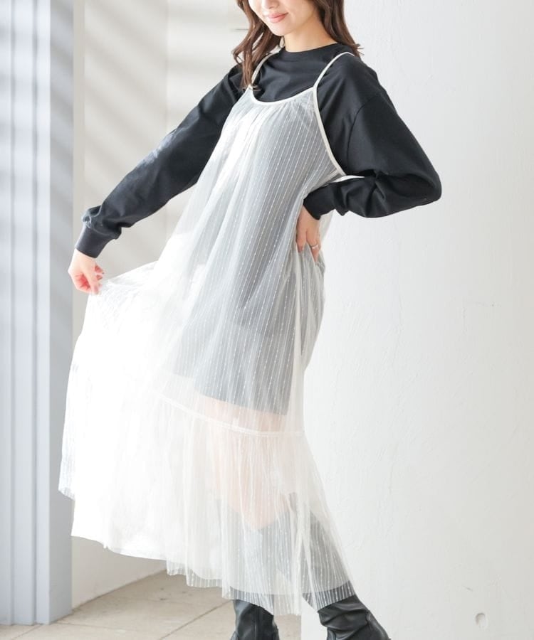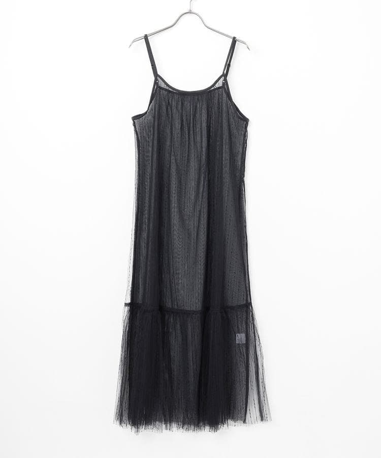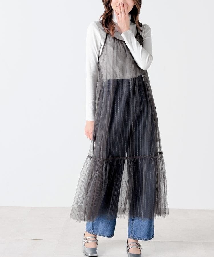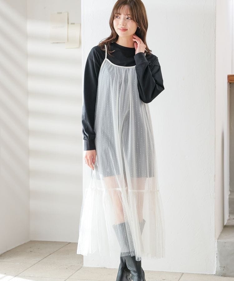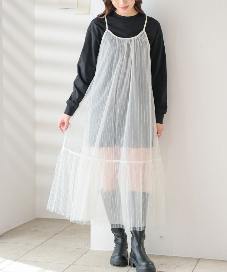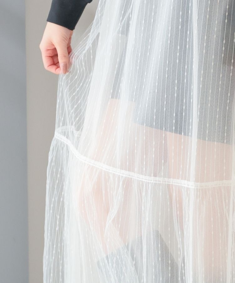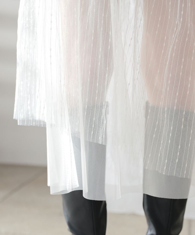 表面感のあるドットチュールと無地チュールの二枚仕立て。