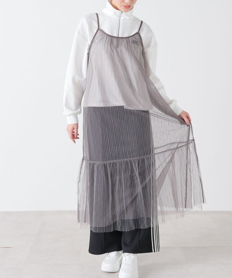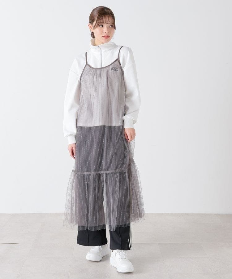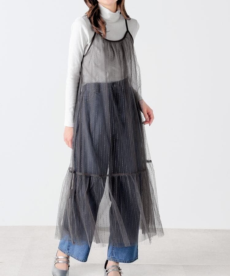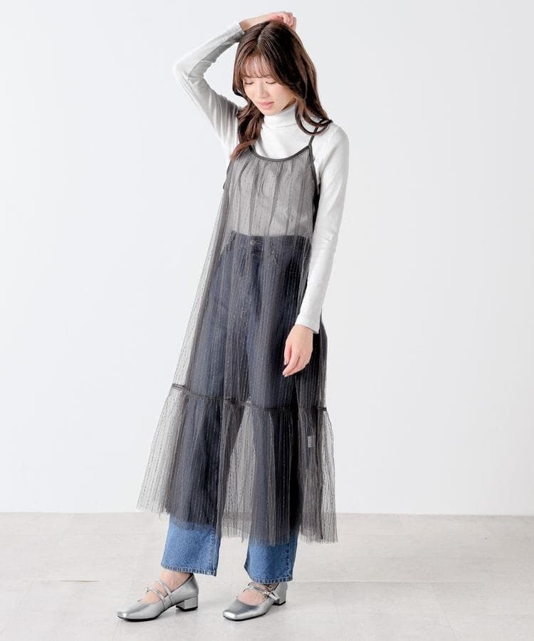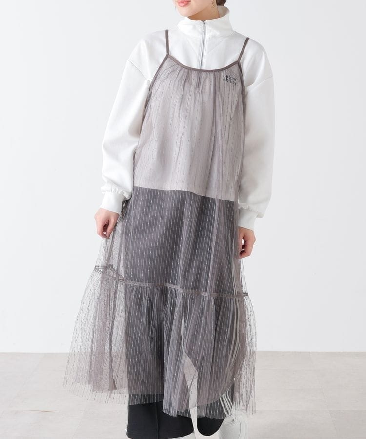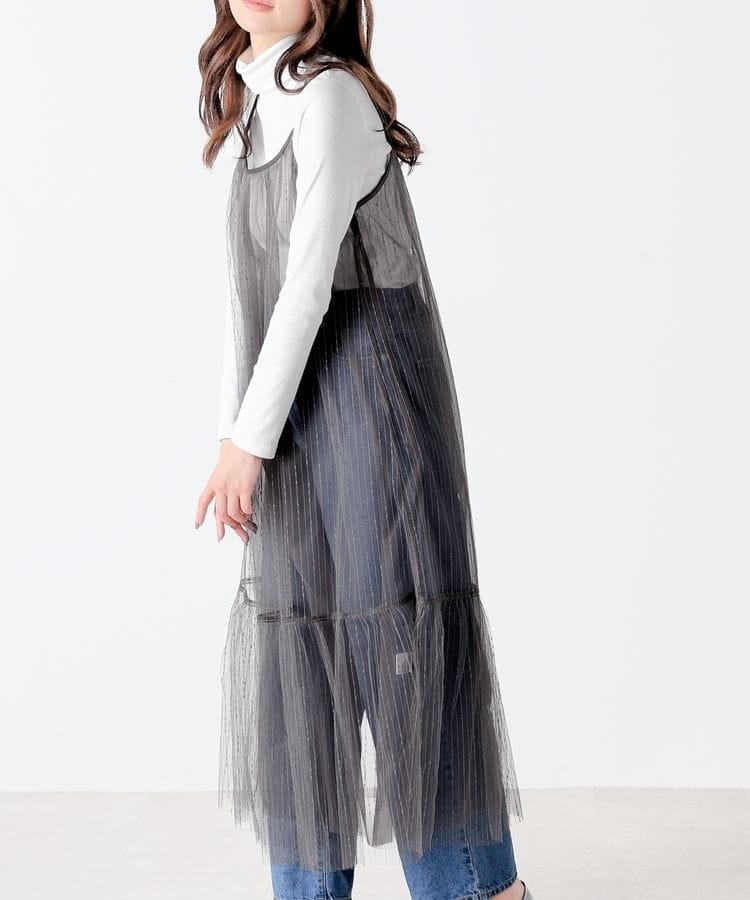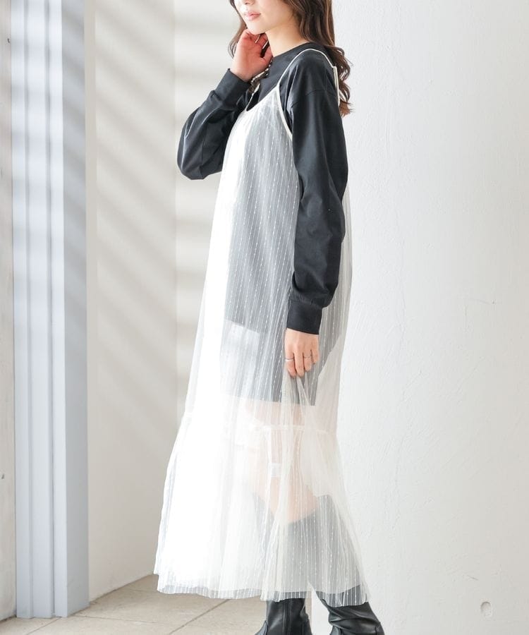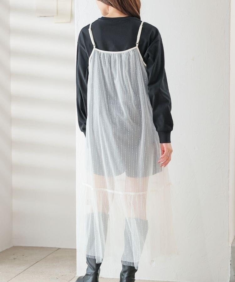 表面感のあるドットチュールと無地チュールの二枚仕立て。