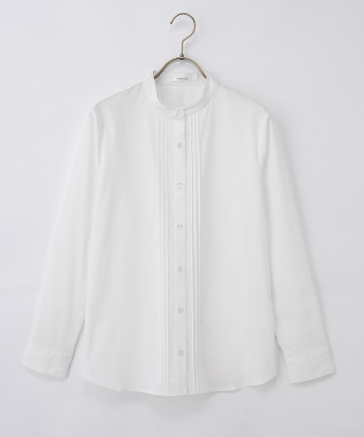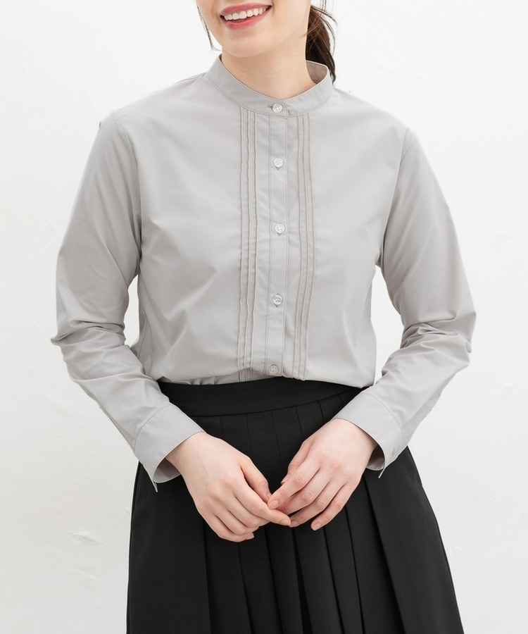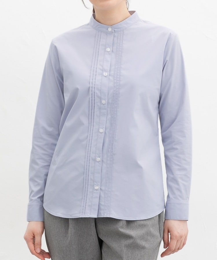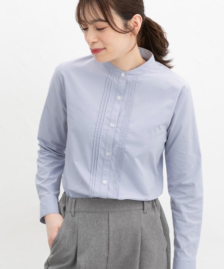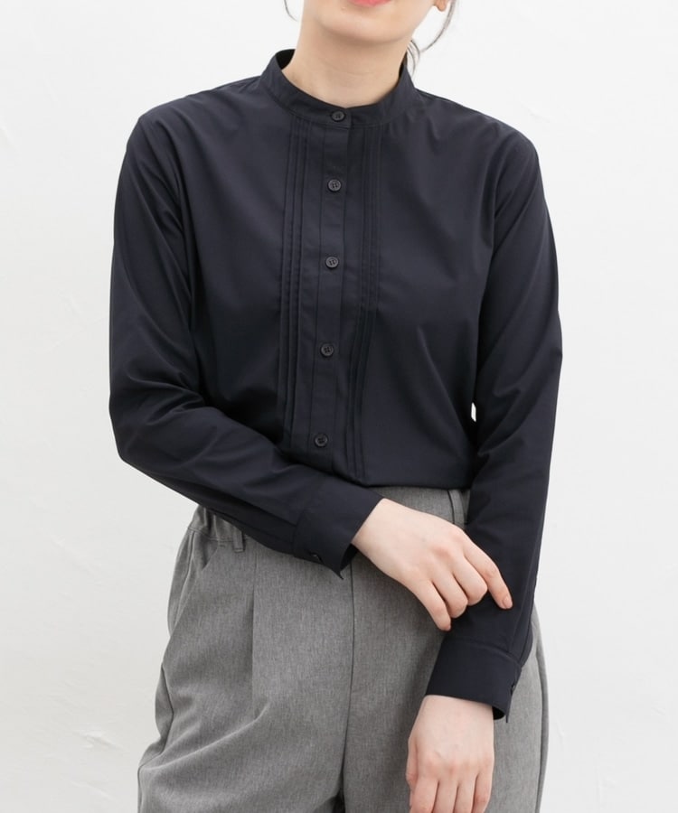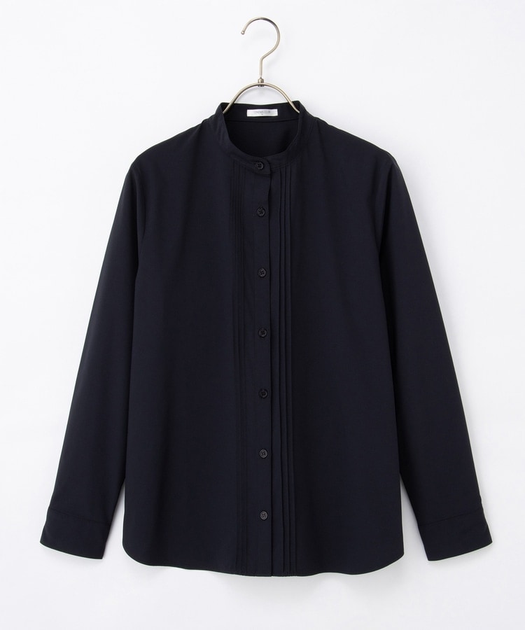 程よい抜け感のスタンドカラーと、フロントのピンタックが上品なデザイン。