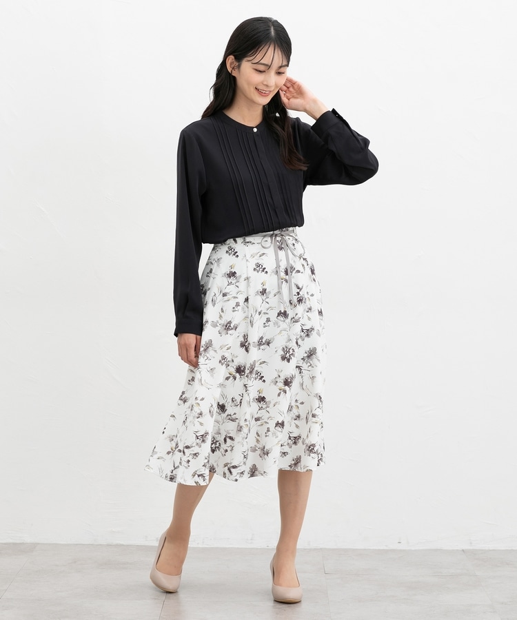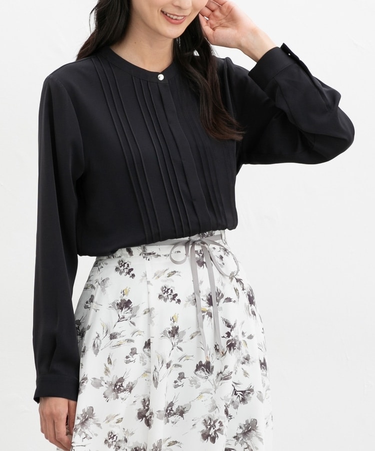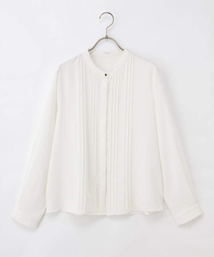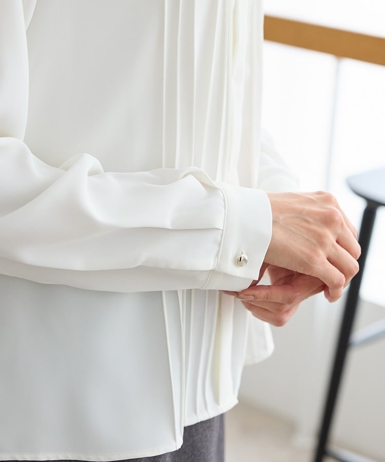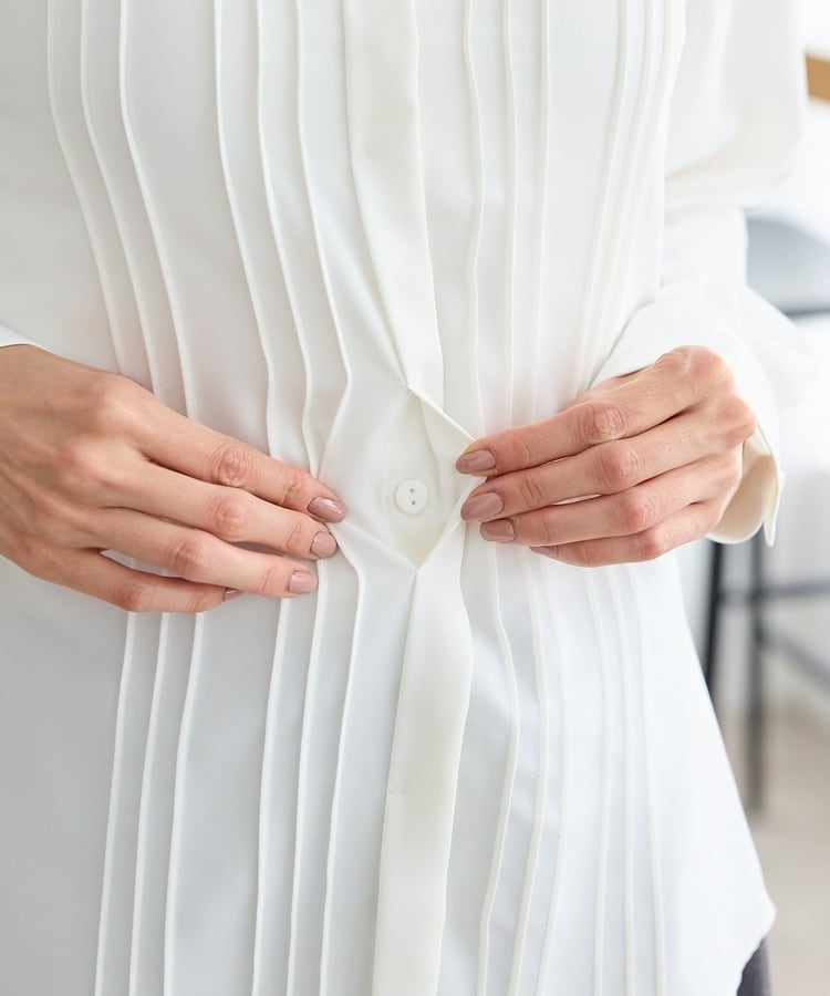フロントのピンタックがフェミニンで華やかなデザイン。