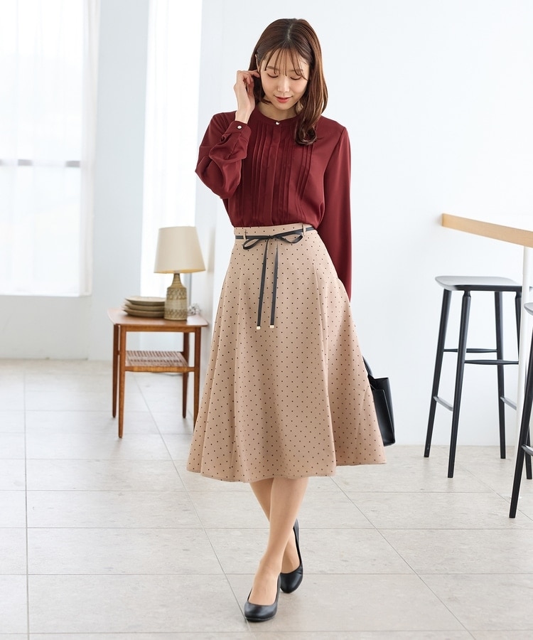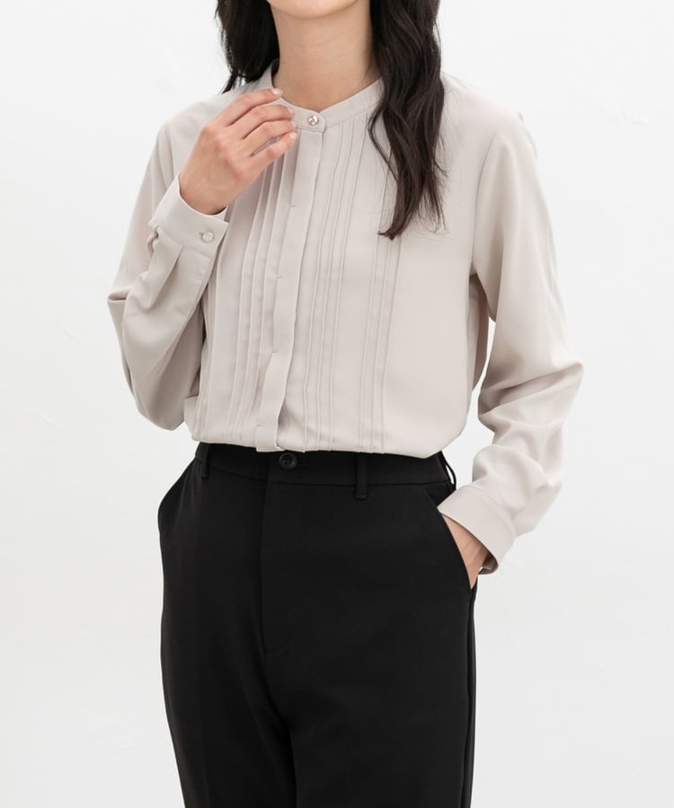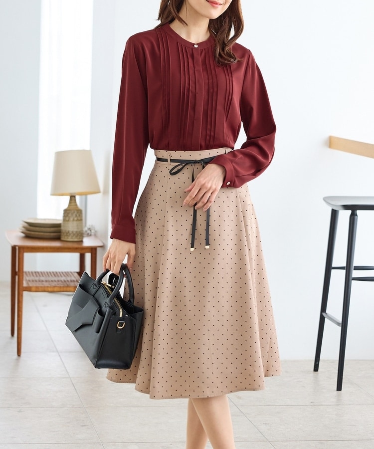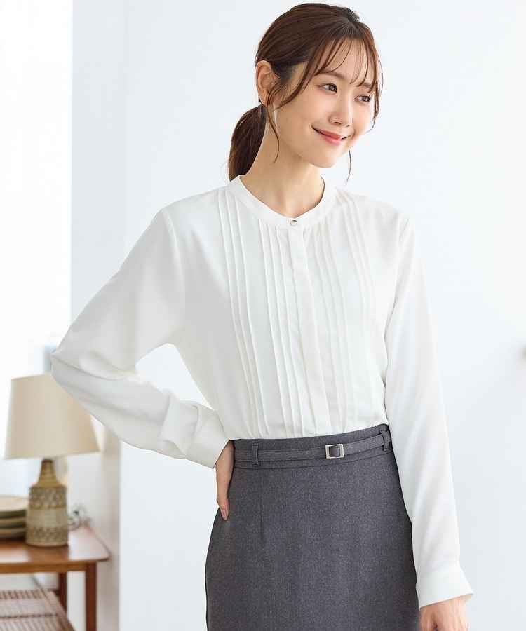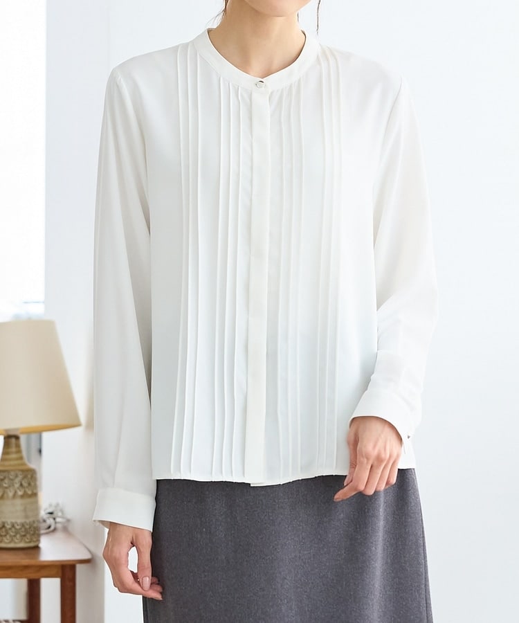 フロントのピンタックがフェミニンで華やかなデザイン。
