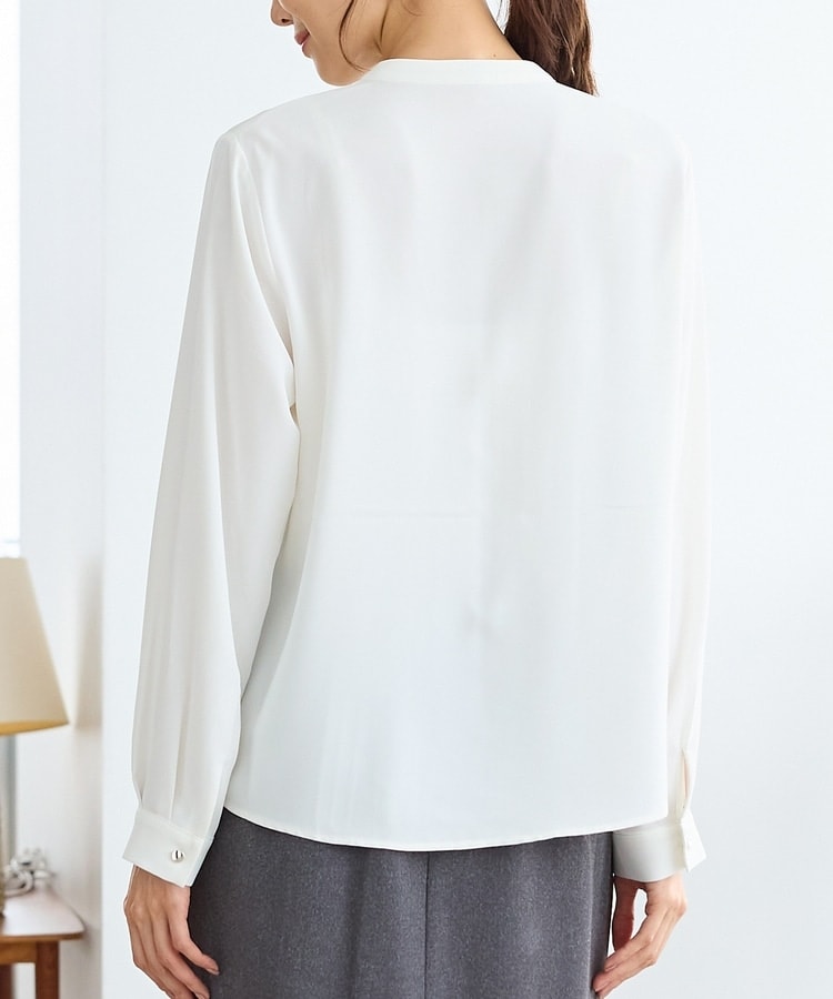 ボタンを隠した比翼仕立てで大人な上品さをプラス。