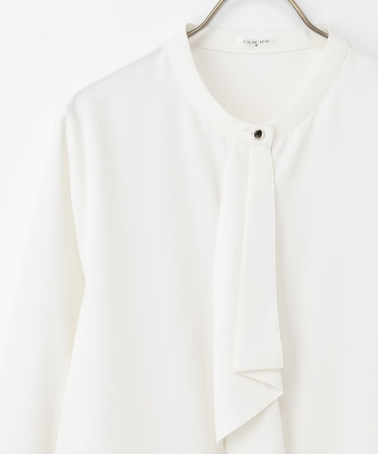 結び直しの必要がない、流れるようなドレープが上品なボウタイデザイン。