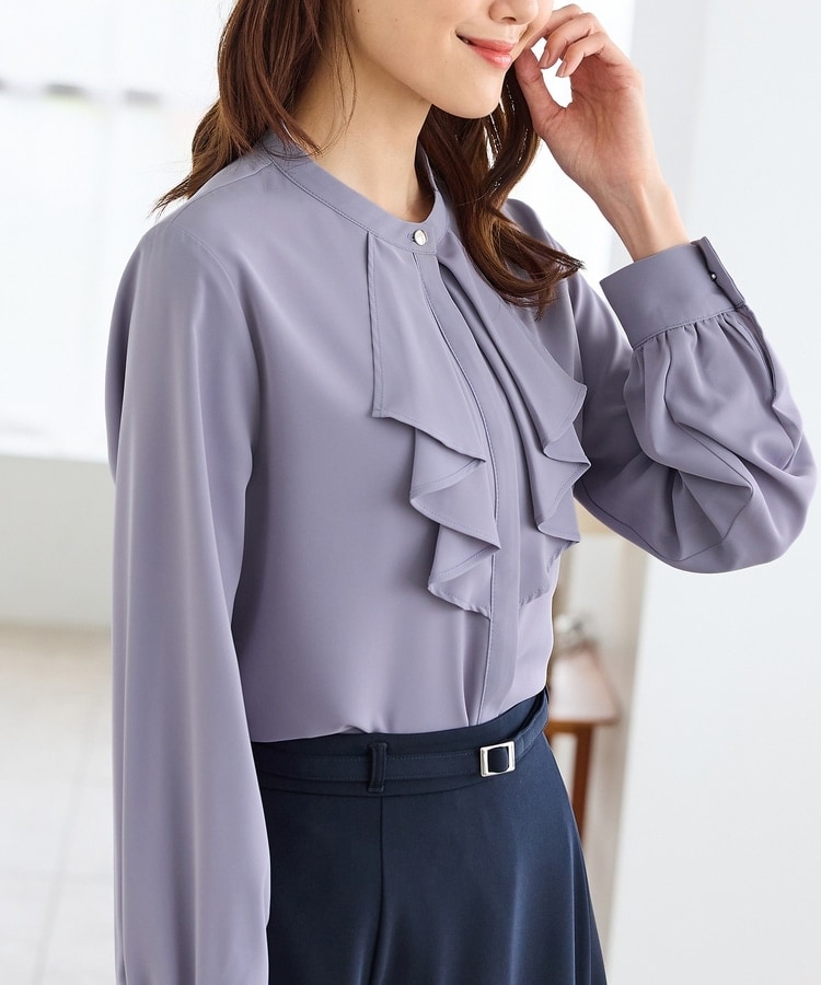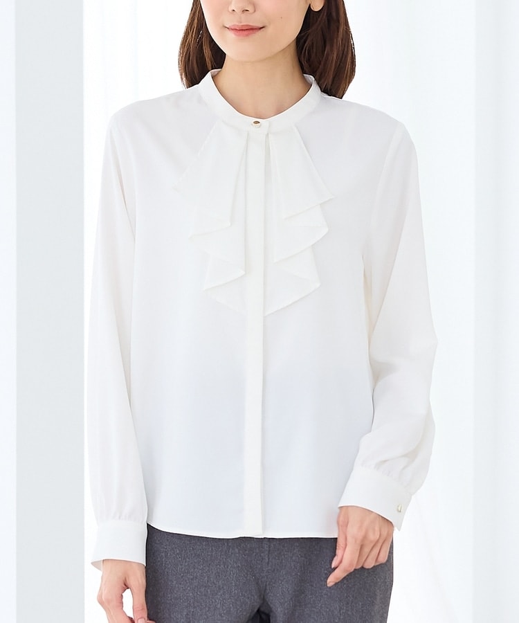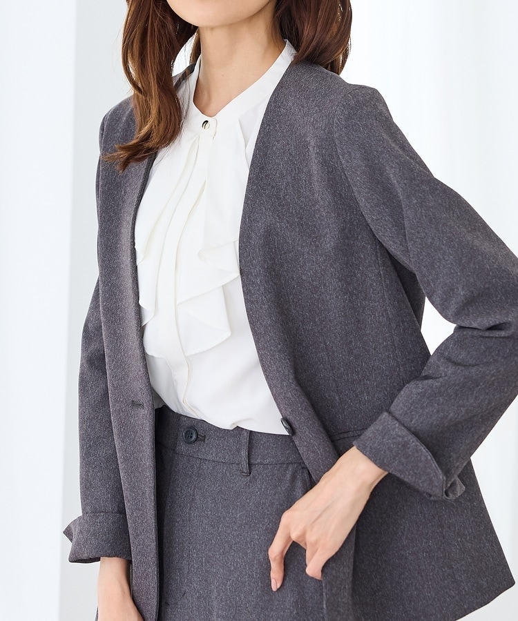 ボタンを隠した比翼仕立てで大人な上品さをプラス。