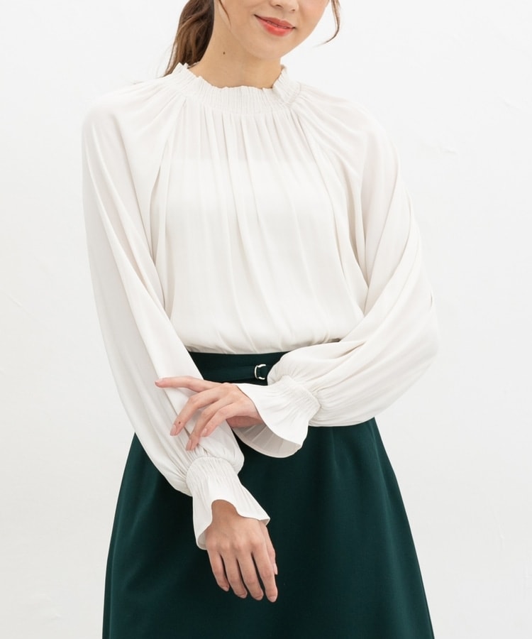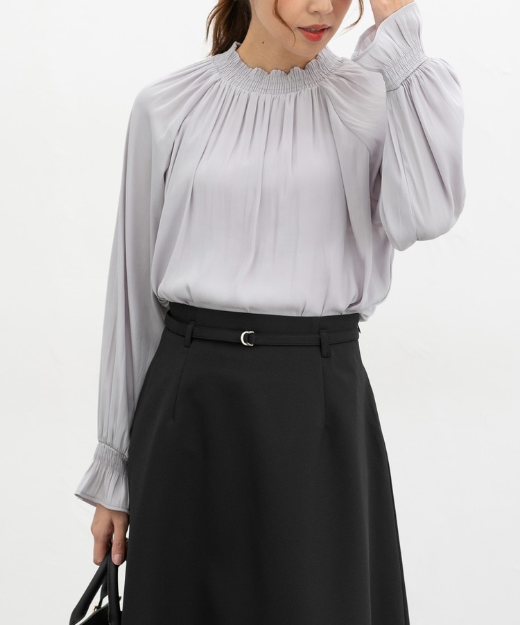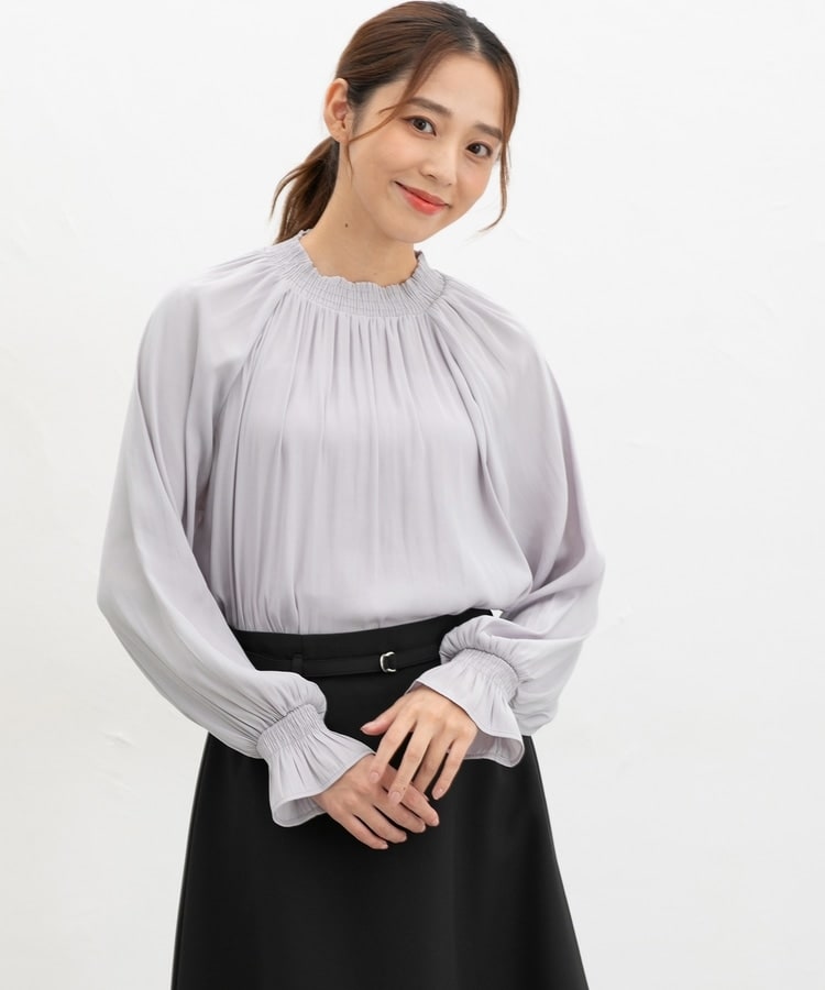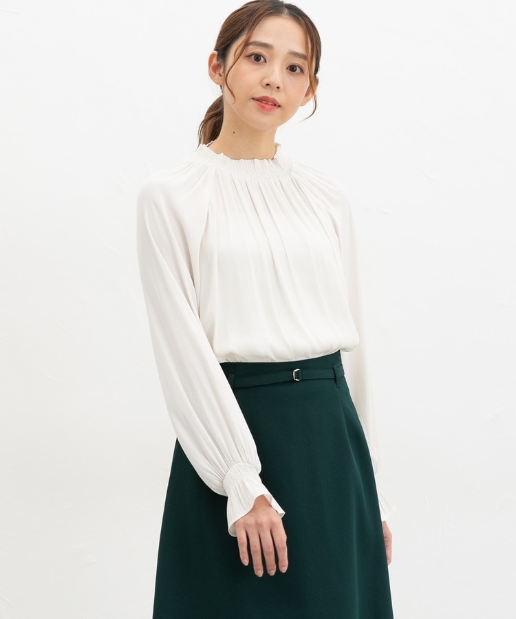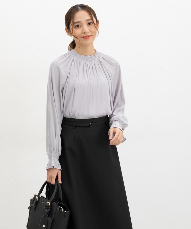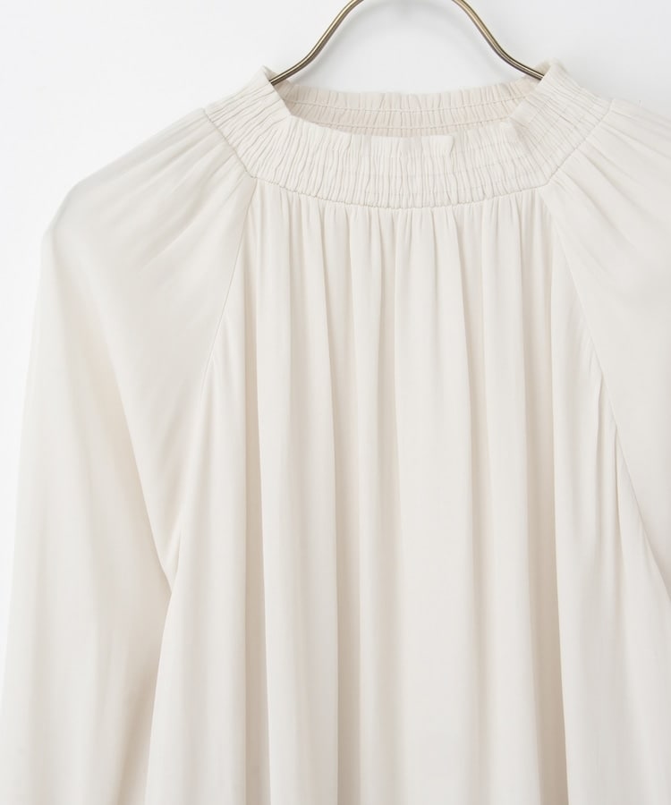 とろみ素材の細かなギャザーが、柔らかなドレープと美しいシルエットを演出。