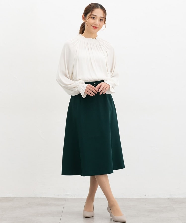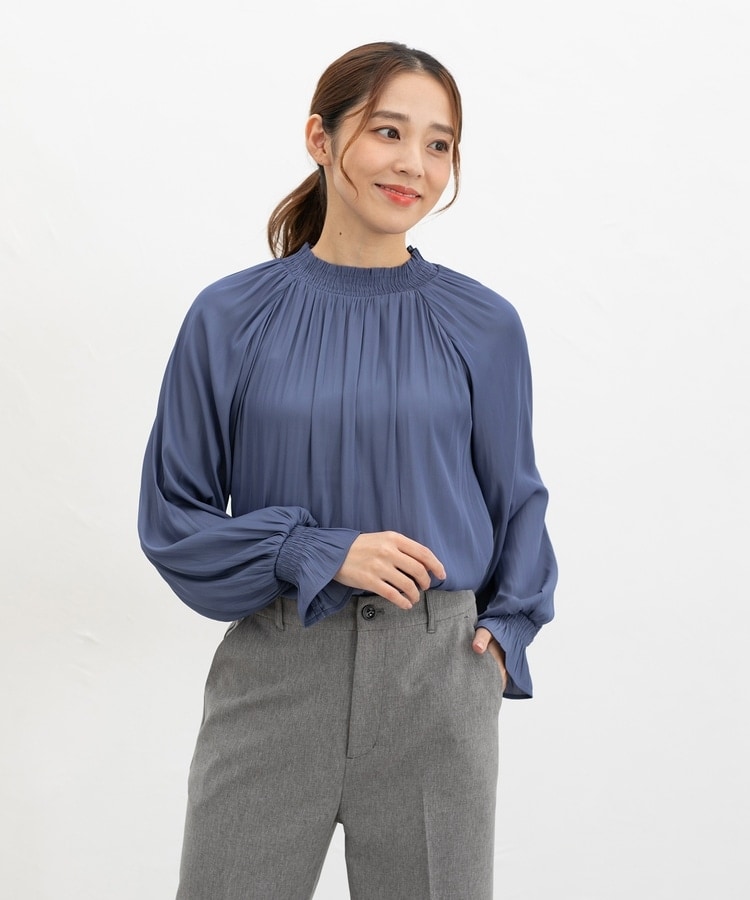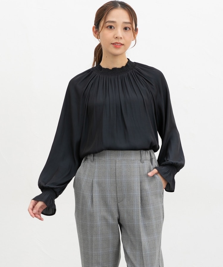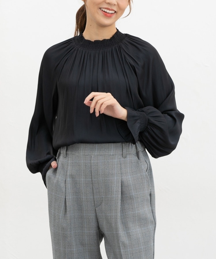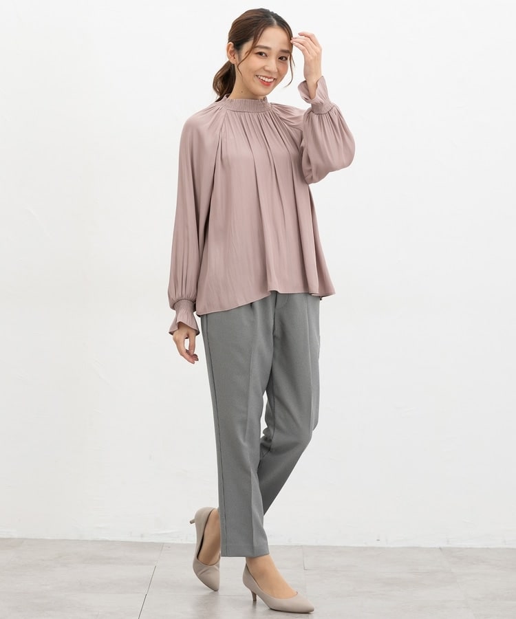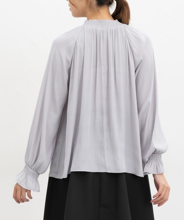 とろみ素材の細かなギャザーが、柔らかなドレープと美しいシルエットを演出。