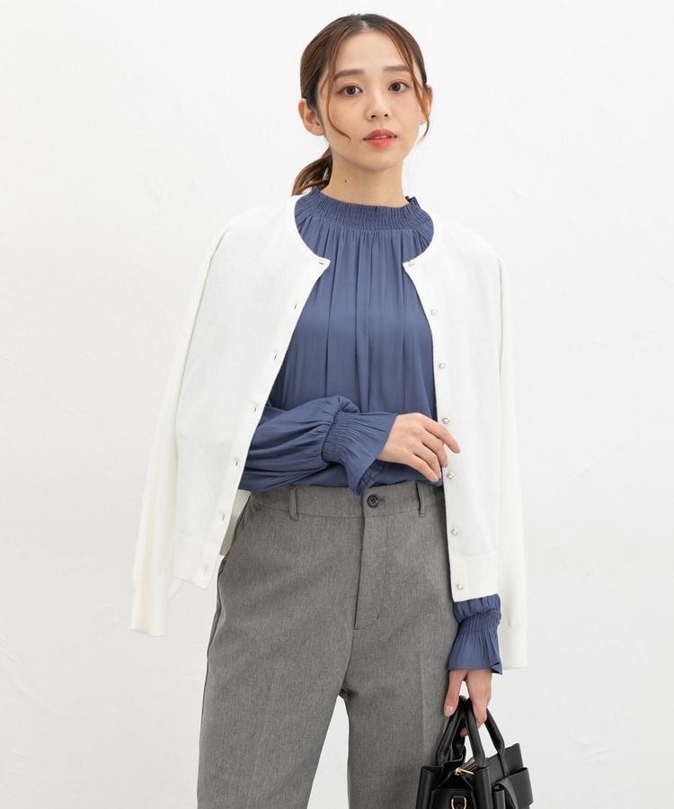 テーパードパンツやフレアスカートと合わせたきれいめスタイルに大活躍。