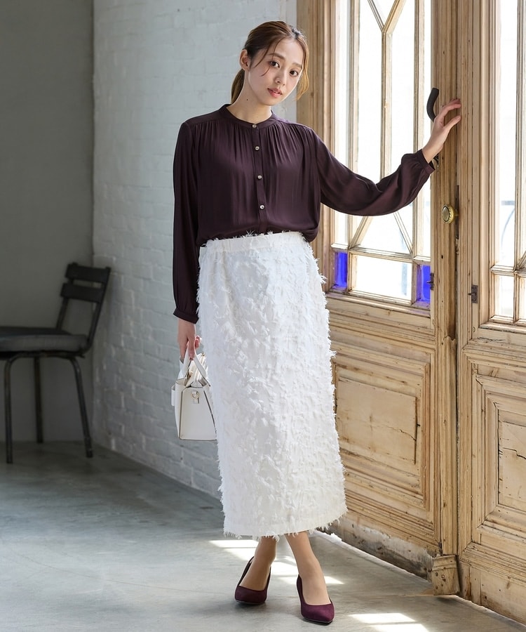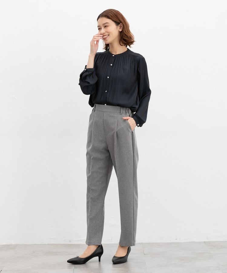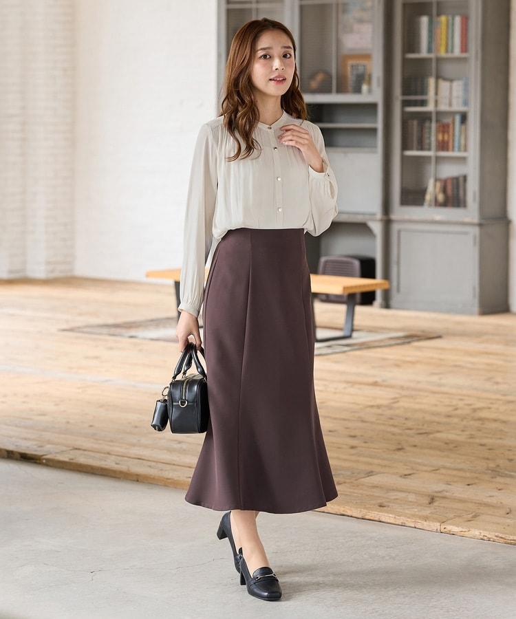ジャケットにも合うサイズ感で、テーパードパンツやフレアスカートと合わせたきれいめお仕事スタイルに大活躍。