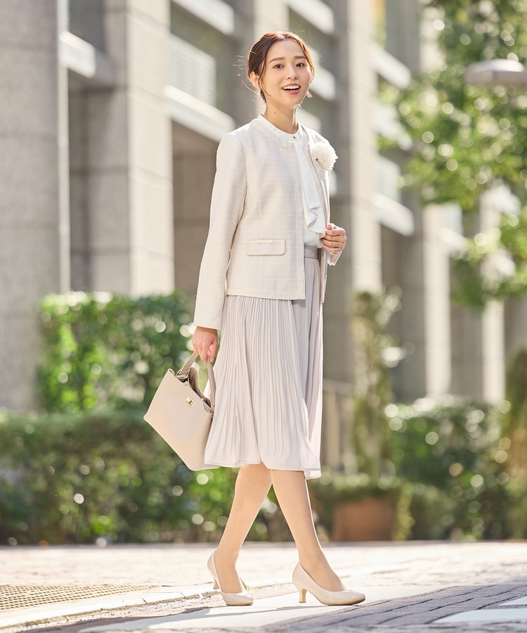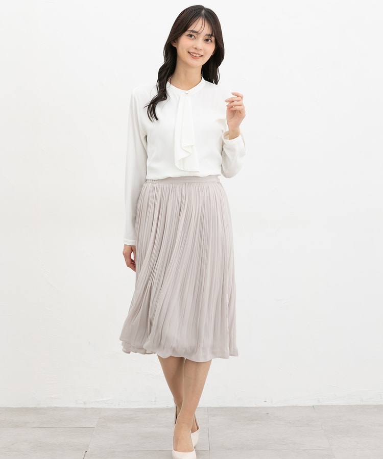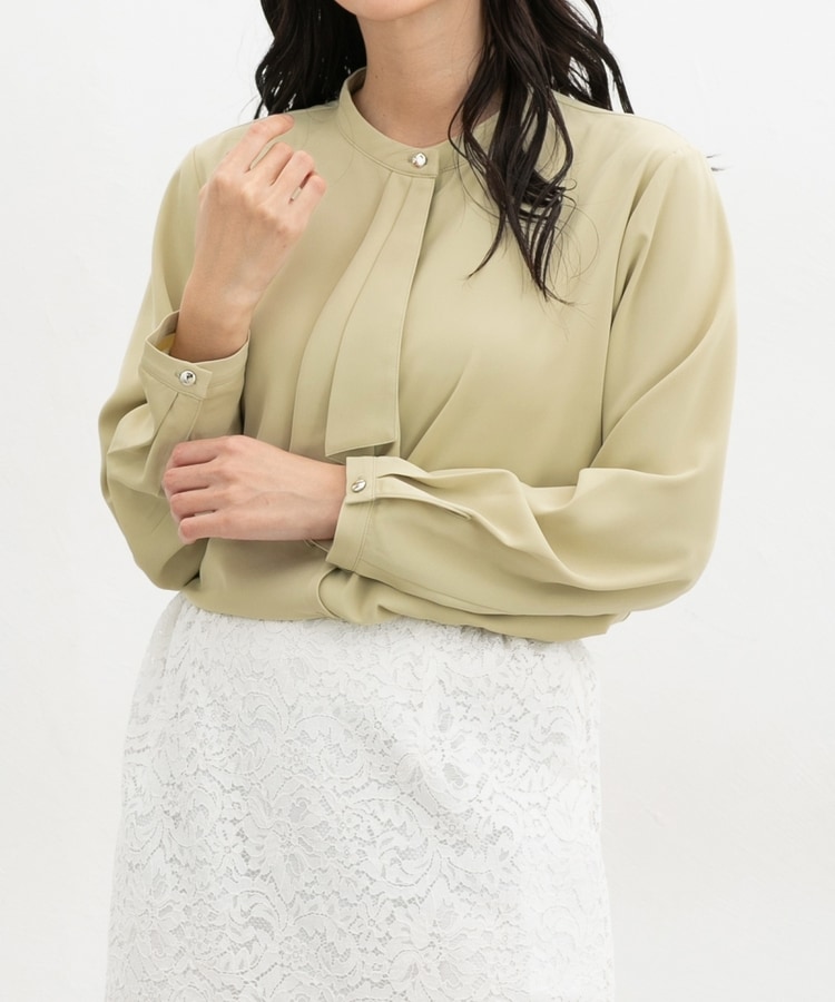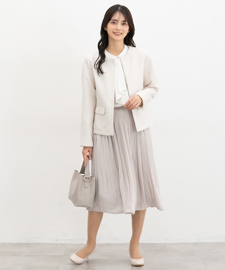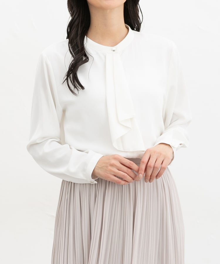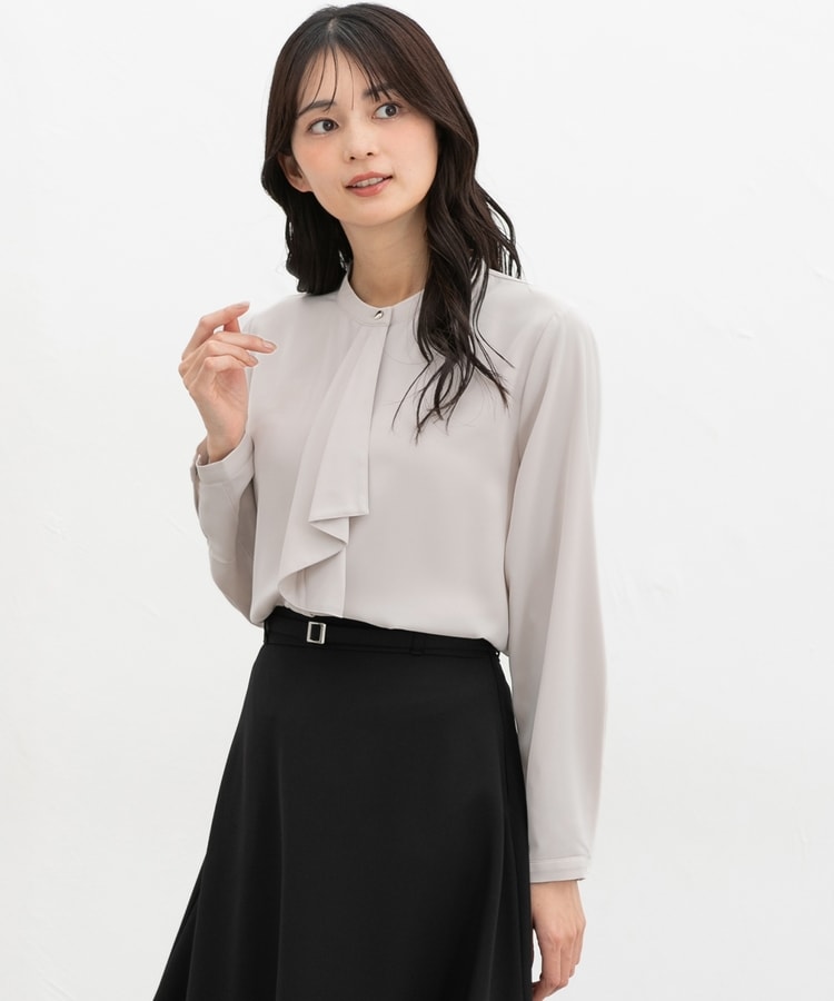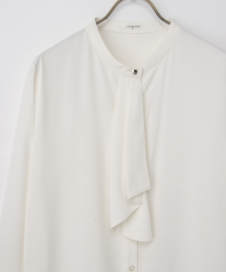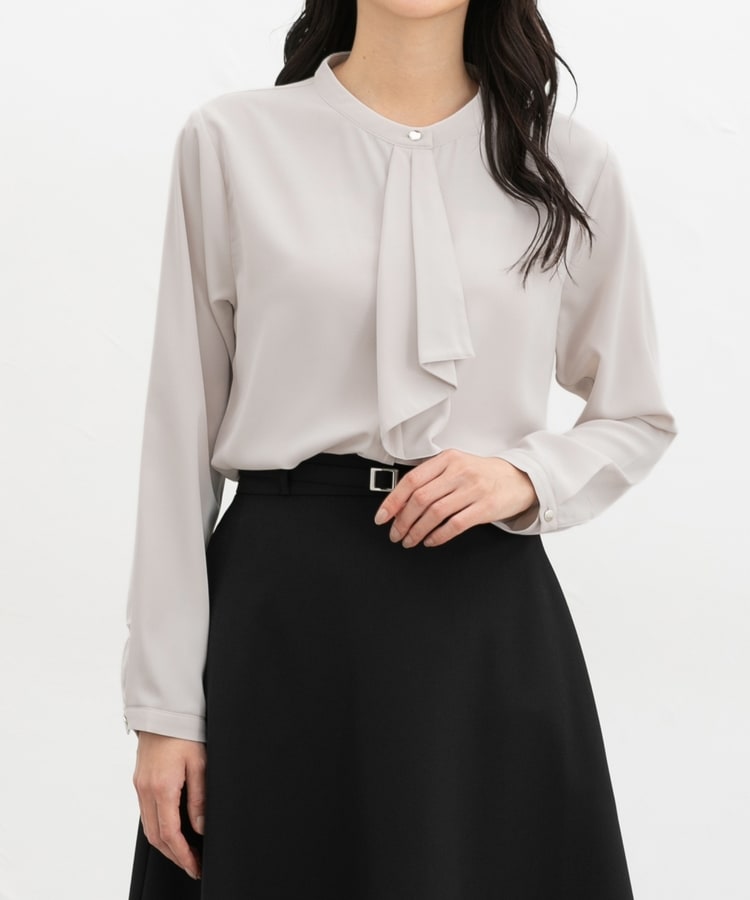 ジャケットにも合うサイズ感で通勤や入学式・卒業式などのセレモニーシーンにも使え、テーパードパンツやフレアスカートと合わせたきれいめスタイルに大活躍。