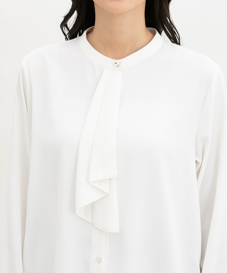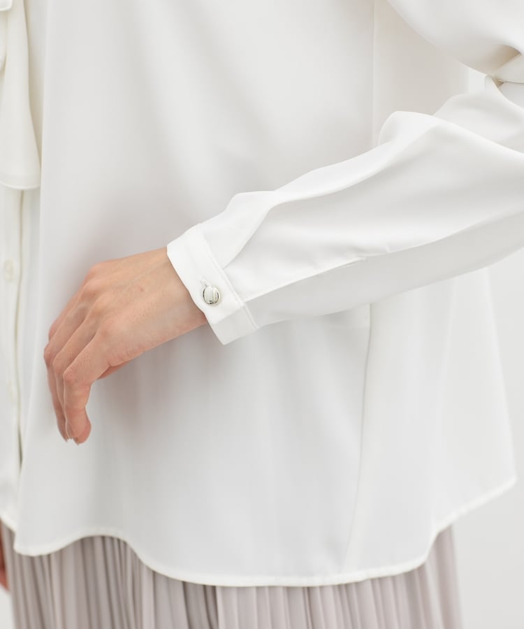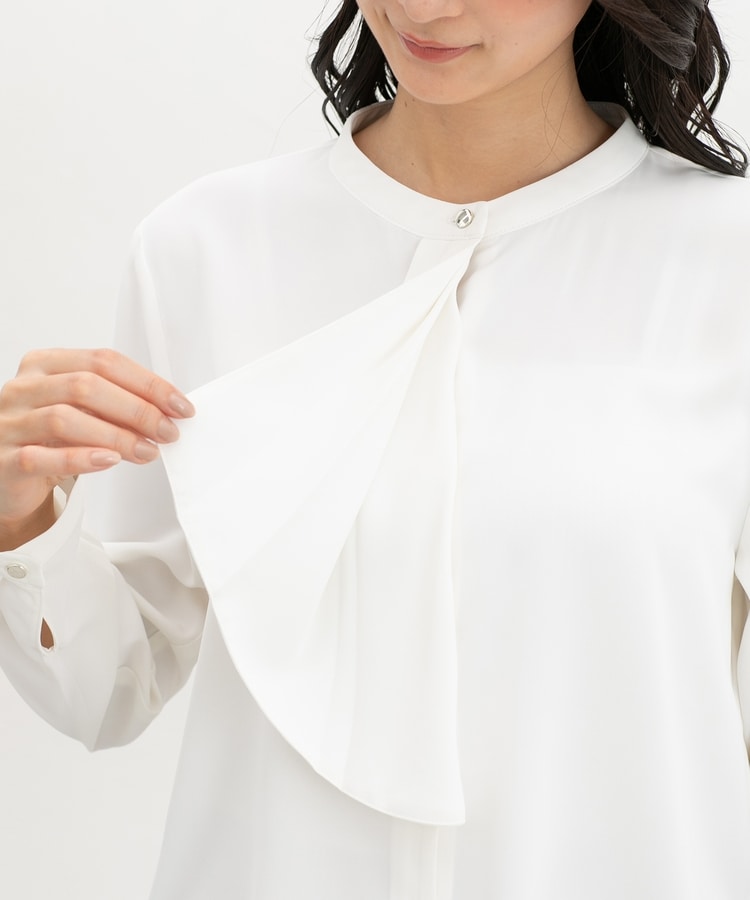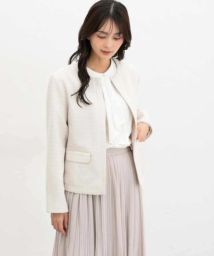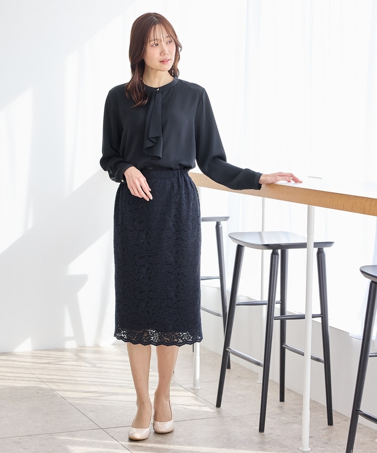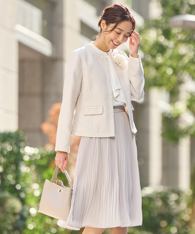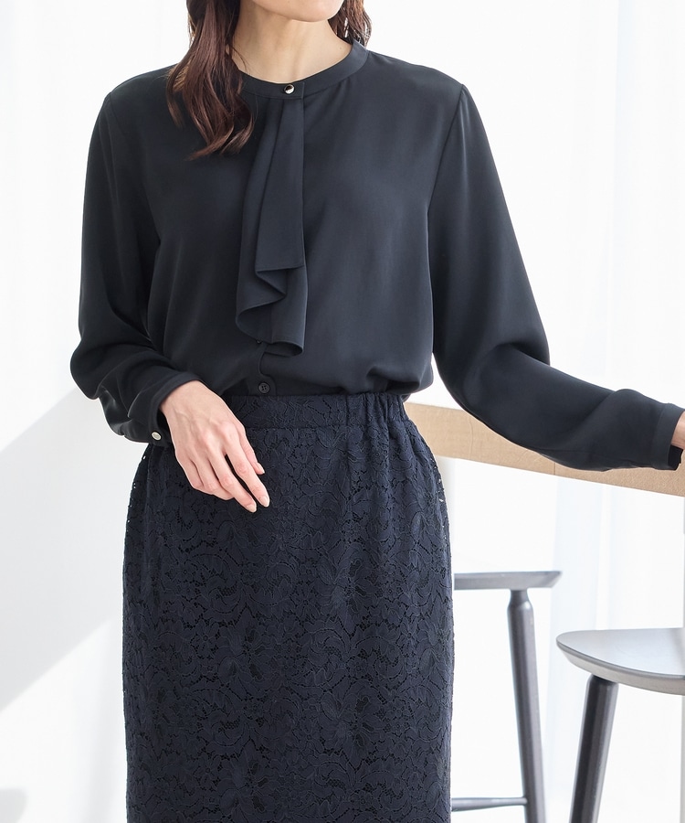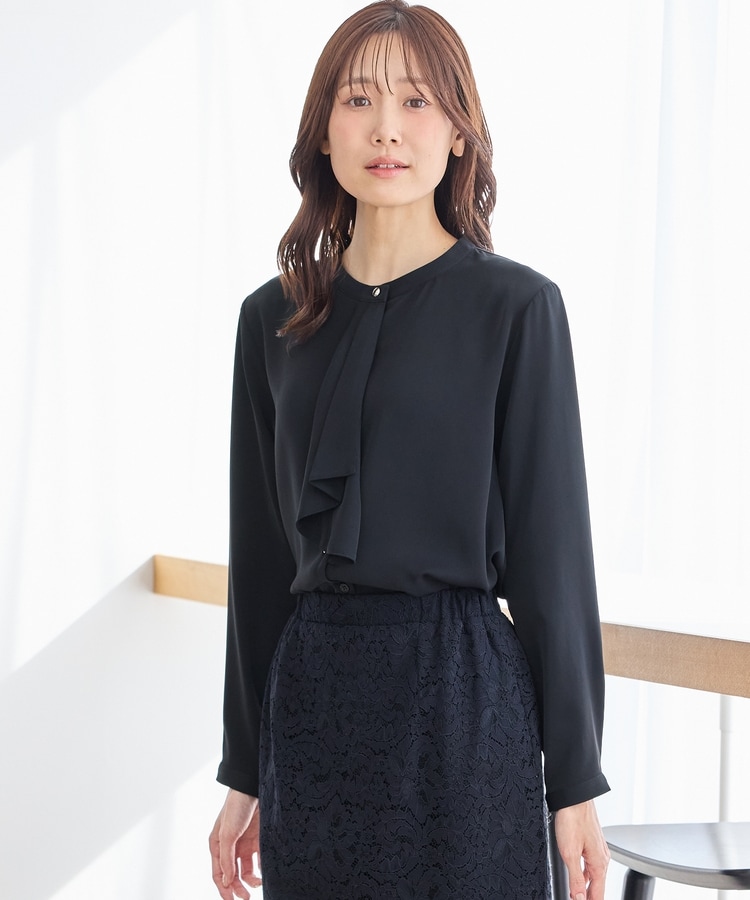 ジャケットにも合うサイズ感で通勤や入学式・卒業式などのセレモニーシーンにも使え、テーパードパンツやフレアスカートと合わせたきれいめスタイルに大活躍。