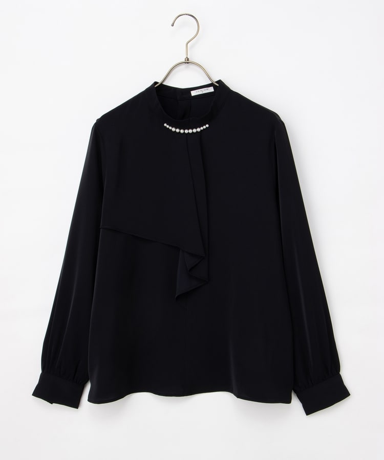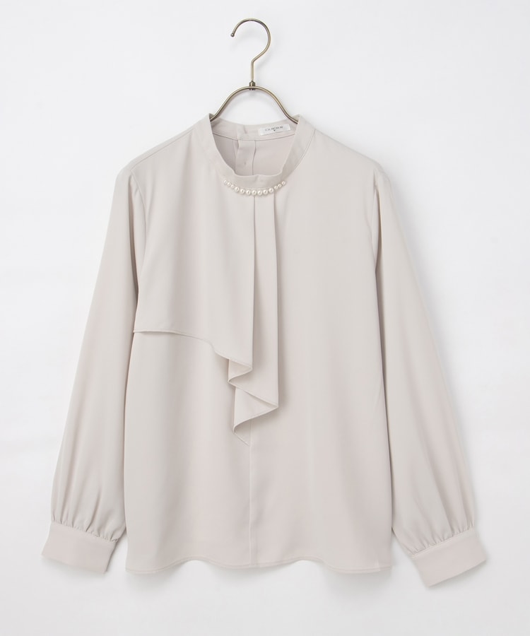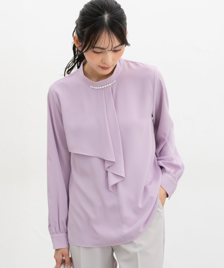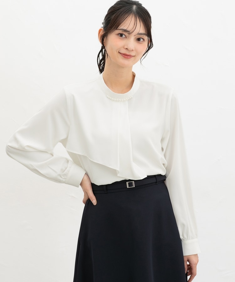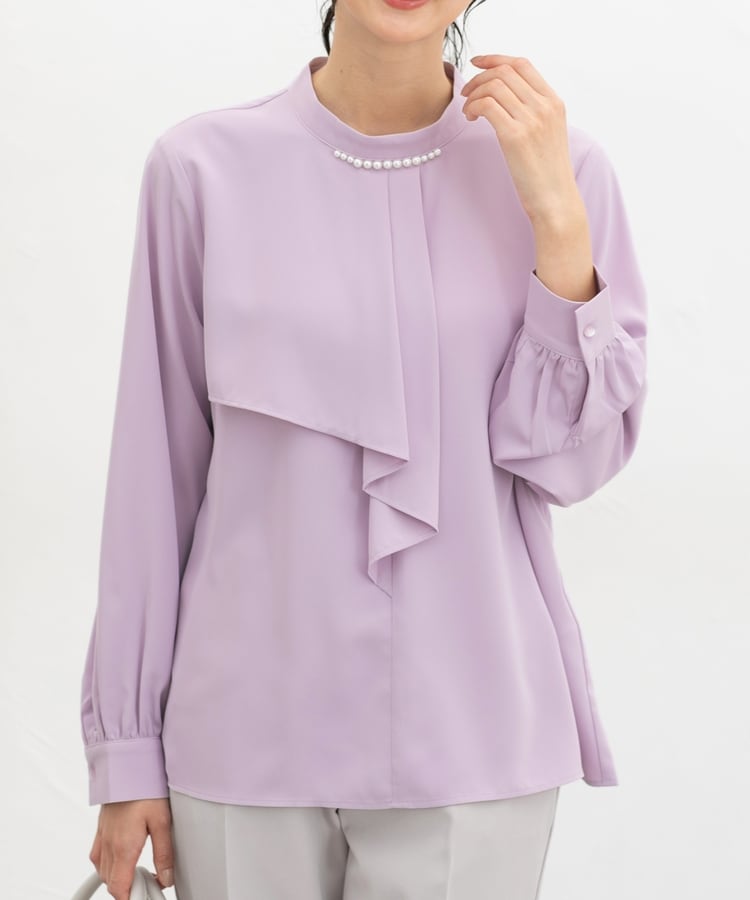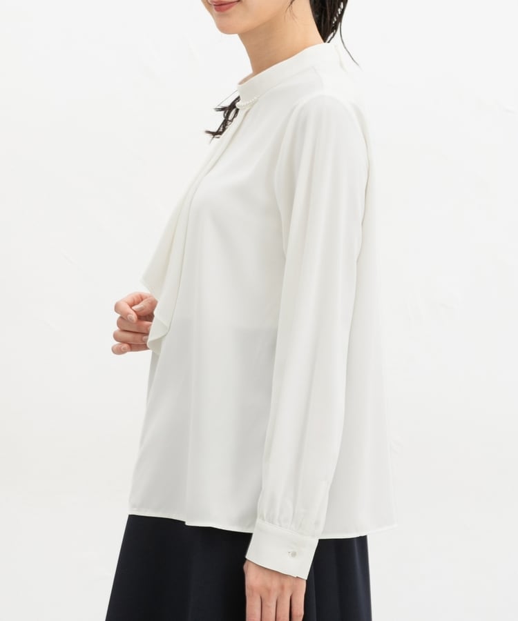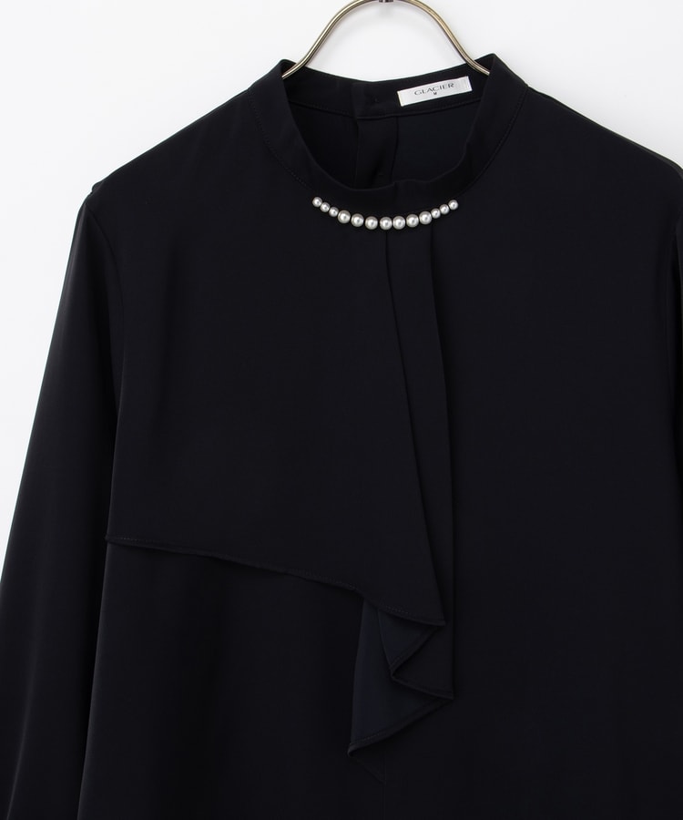 衿元のパール風ビーズがさりげなく華やかで上品な印象をプラス。