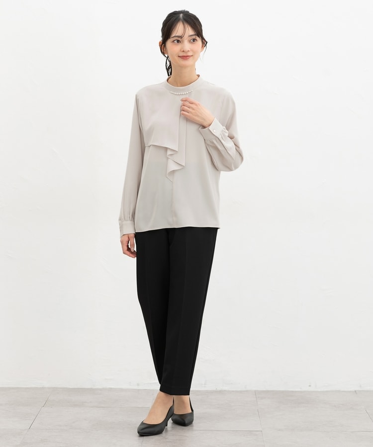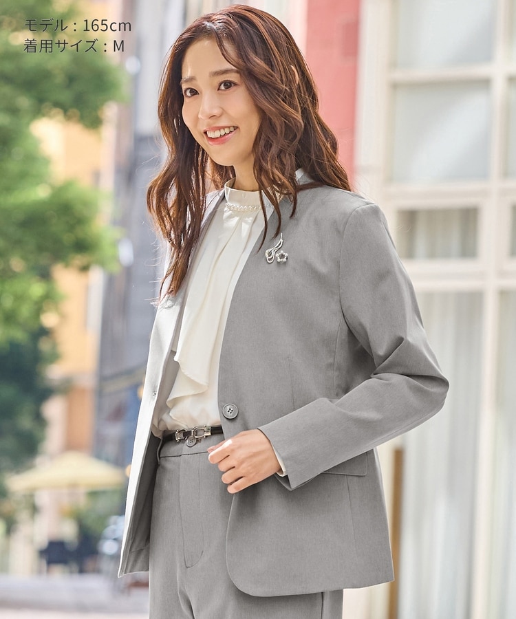 ジャケットにも合うサイズ感で通勤や入学式・卒業式などのセレモニーシーンにも使え、テーパードパンツやフレアスカートと合わせたきれいめスタイルに大活躍。