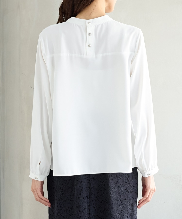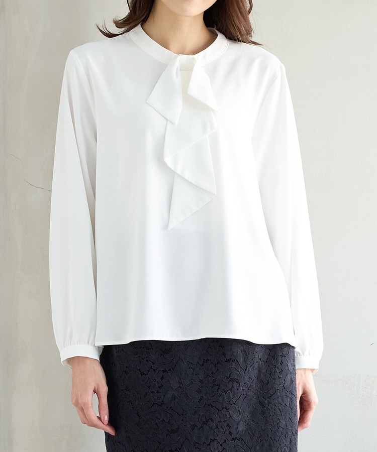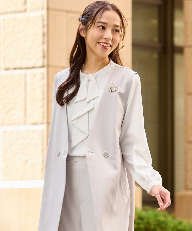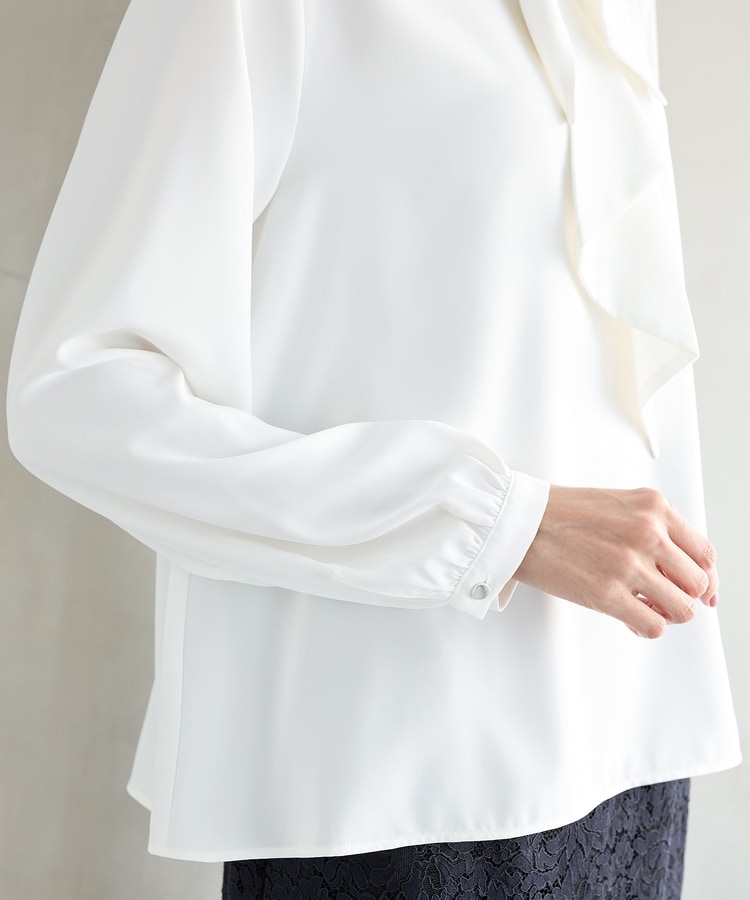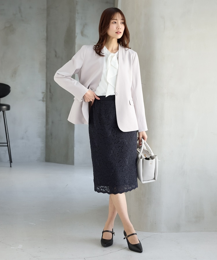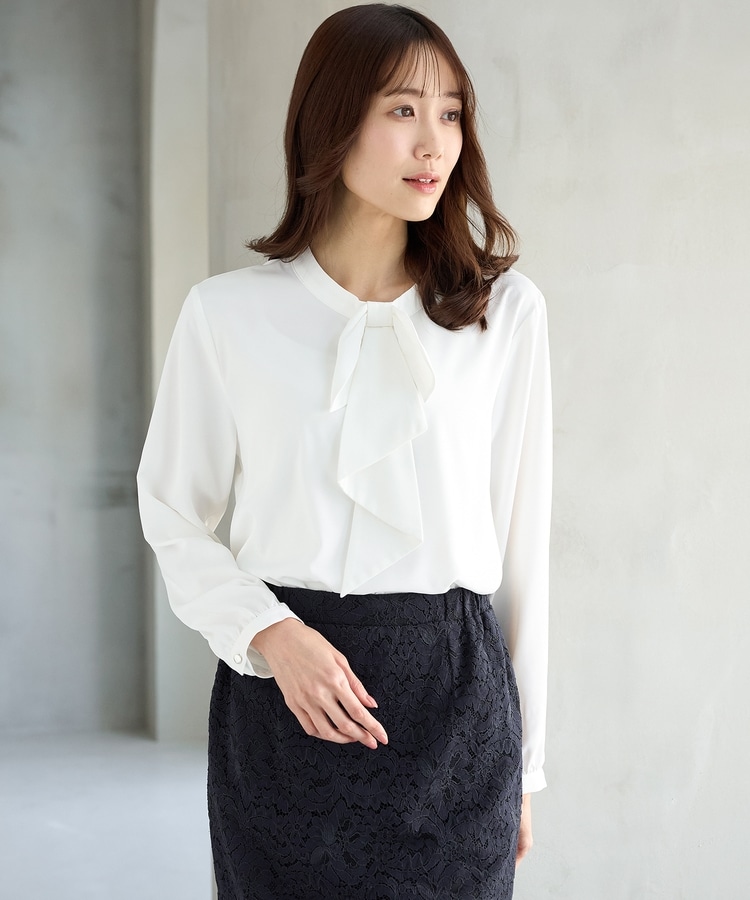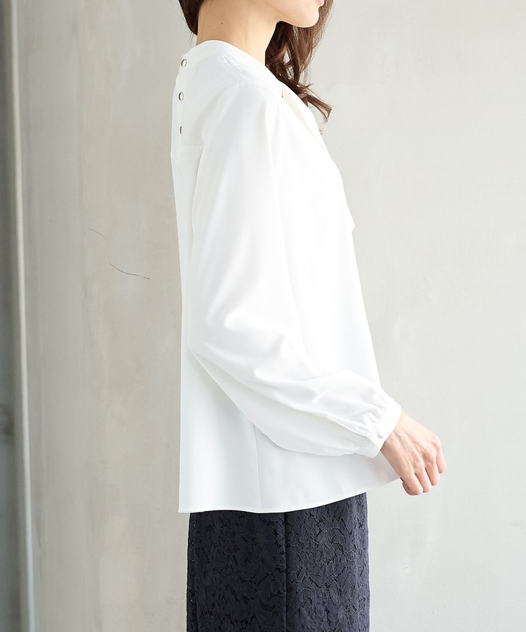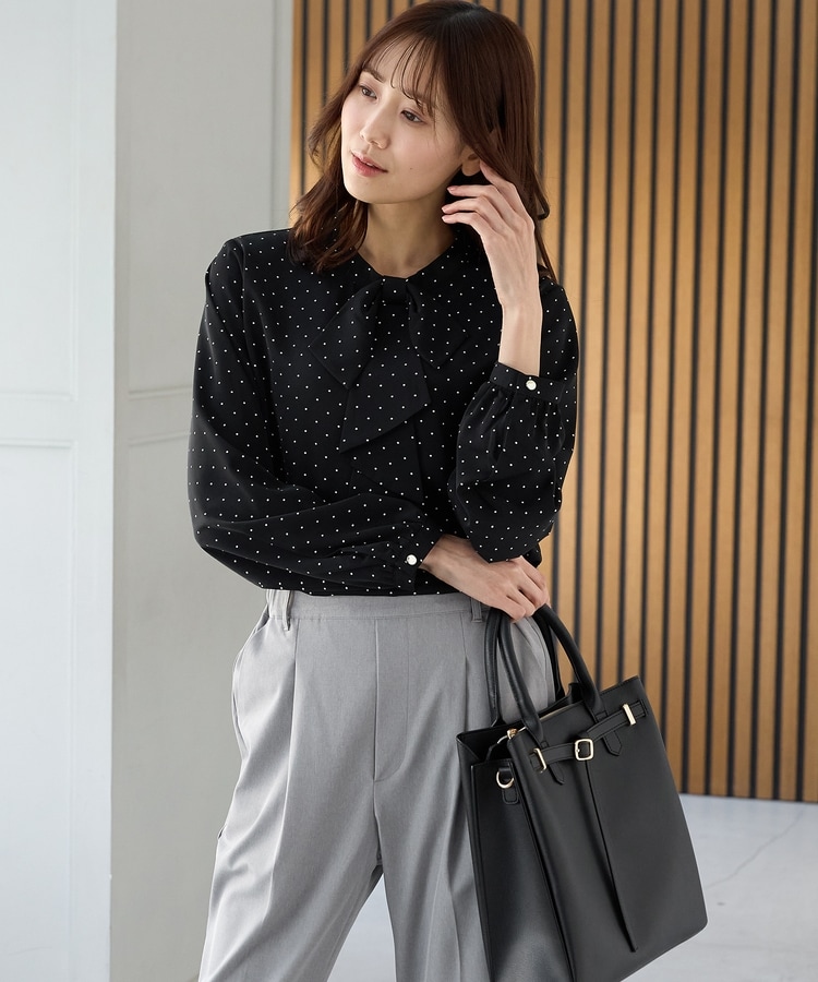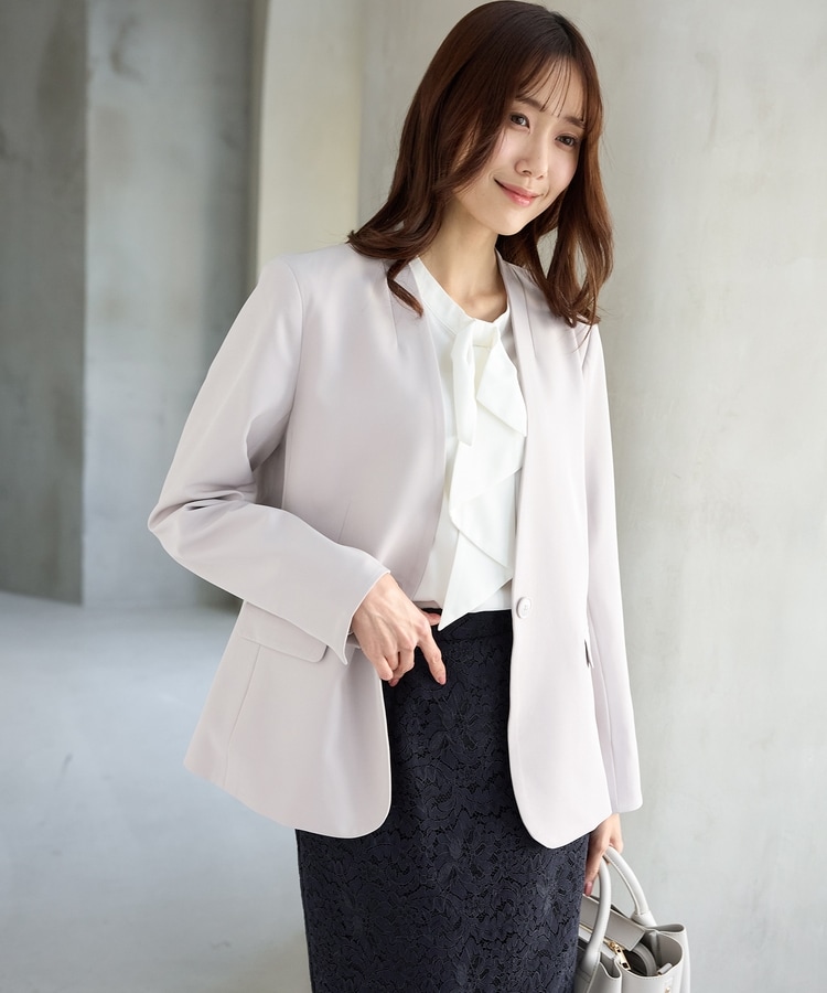 ジャケットにも合うサイズ感で、フレアスカートやテーパードパンツと合わせたきれいめお仕事スタイルに大活躍。