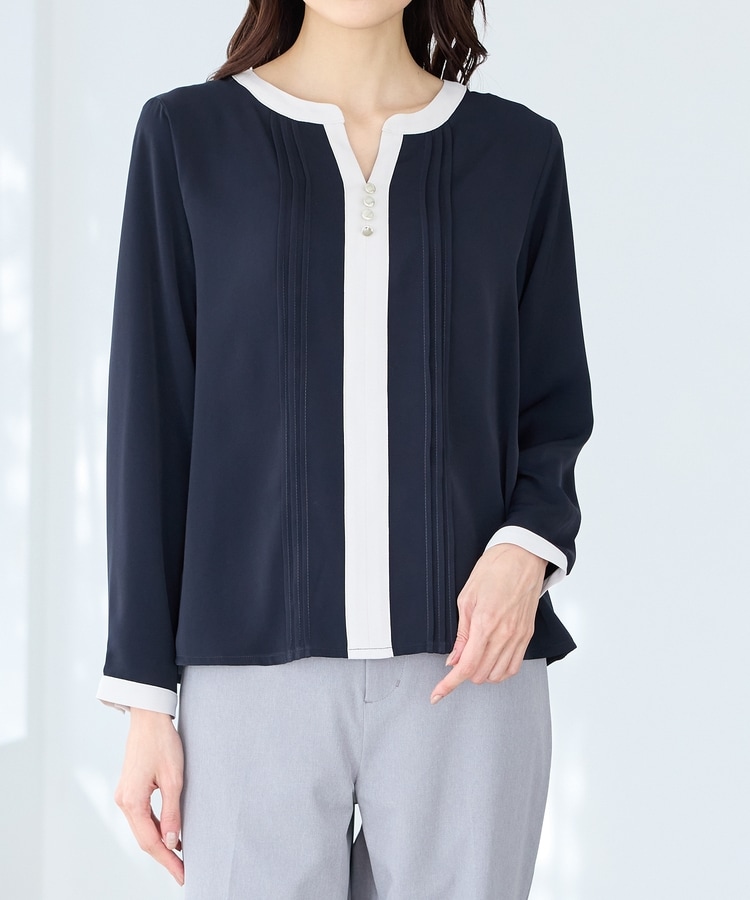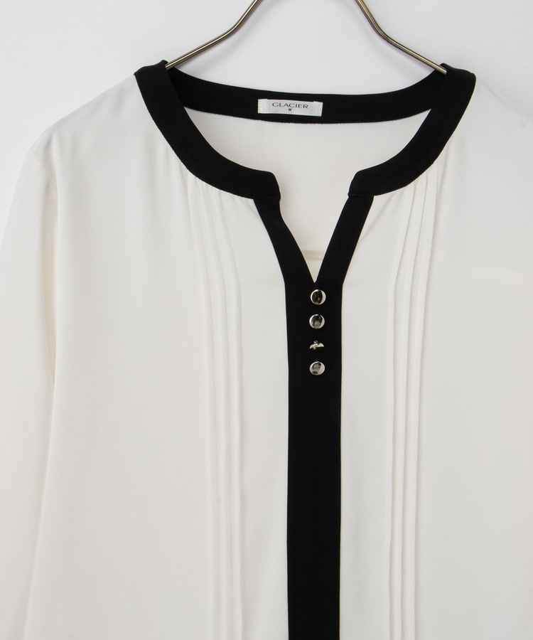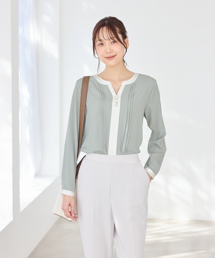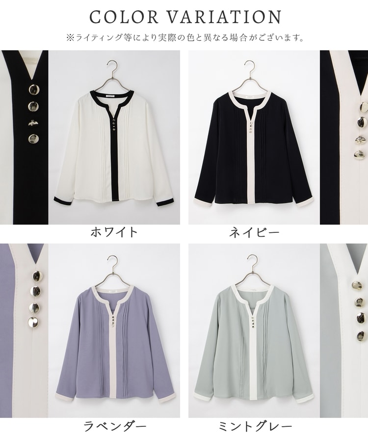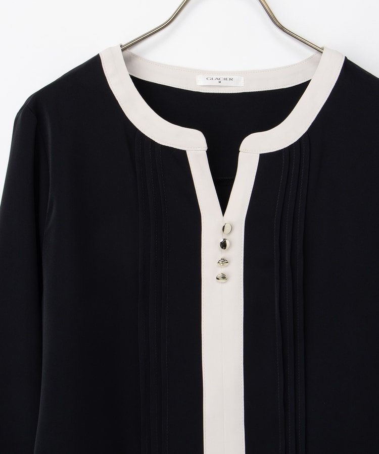大人気のピンタックに配色使いをプラスした、上品で華やかなデザイン。