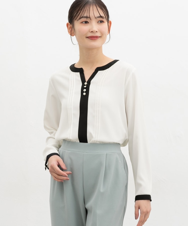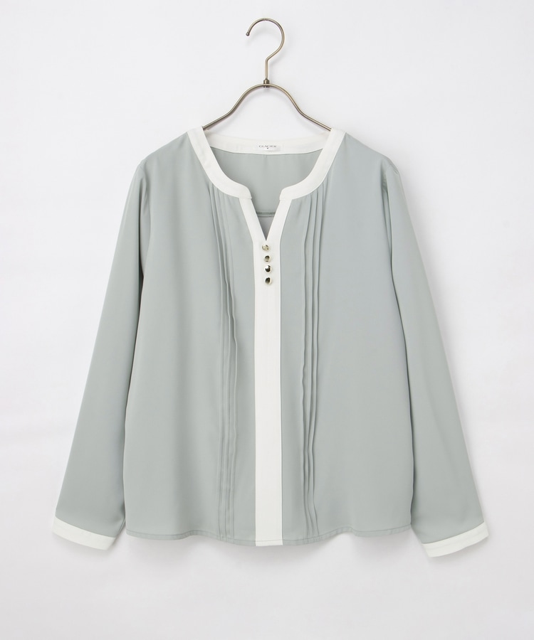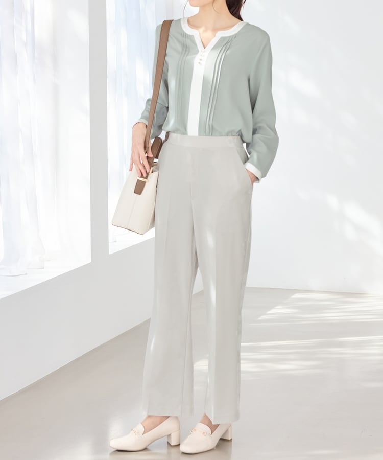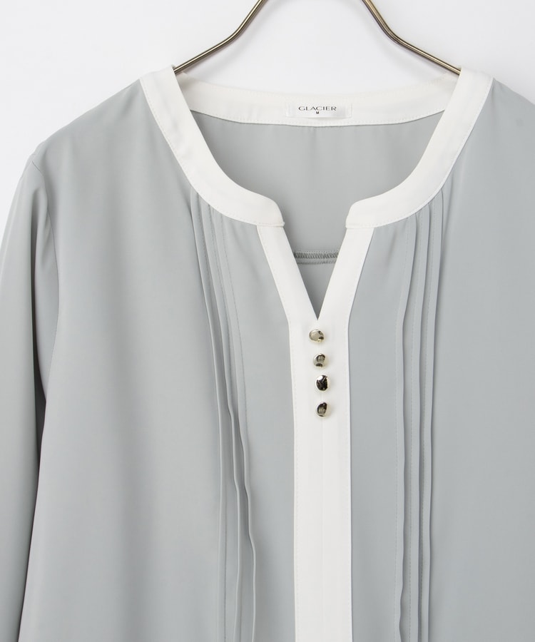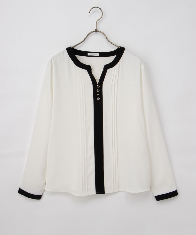 大人気のピンタックに配色使いをプラスした、上品で華やかなデザイン。
